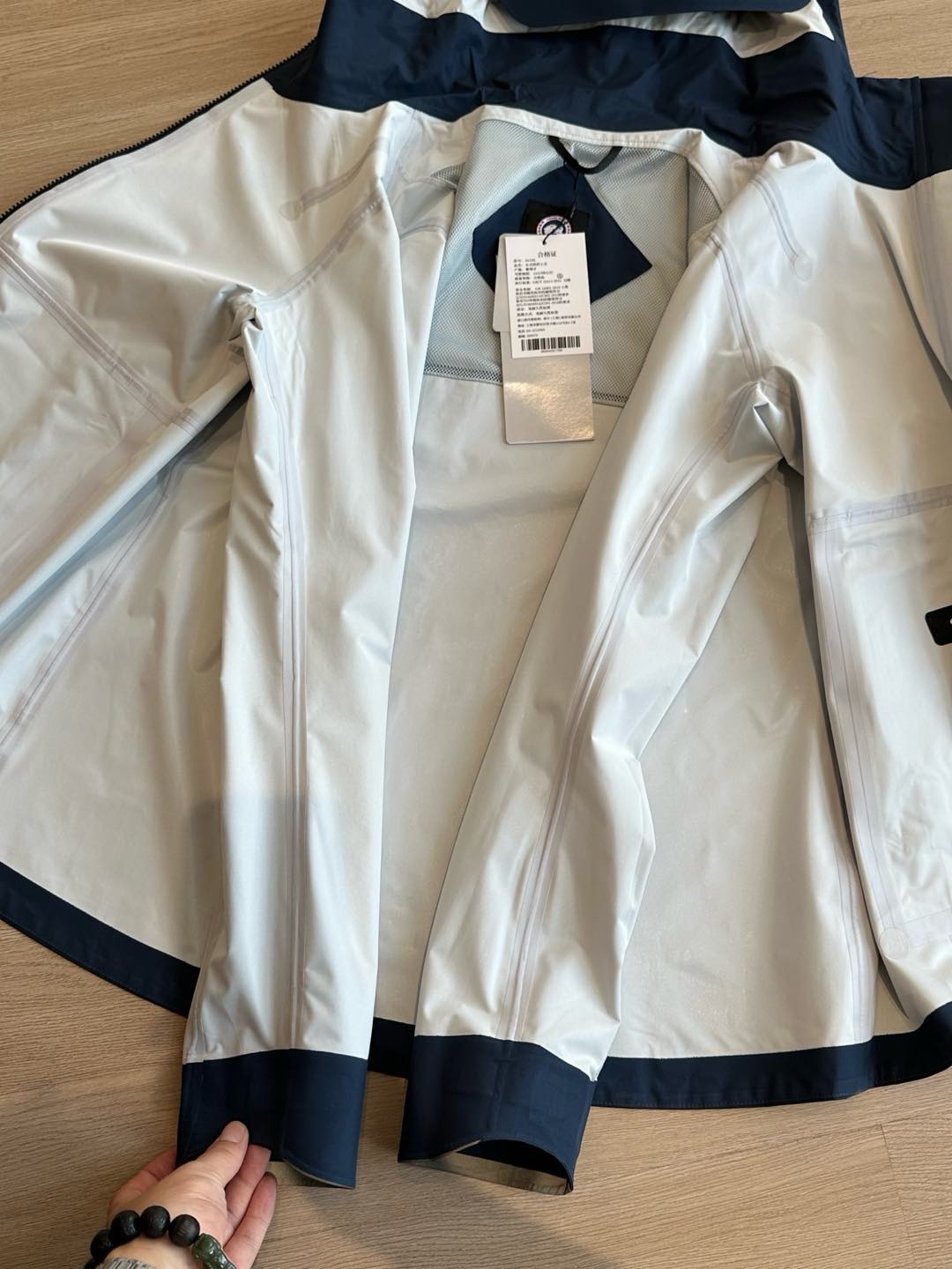 背部也是反光条设计‼️镶片,拼接网布,通风,促使空气流动,增强了透气和通风性能,户外出行快速吸汗透气,时刻保持清爽体感。内里压胶工艺,不是普通的热熔胶,而且需要特殊的压条,冷热反复压胶才行,防水又透气!