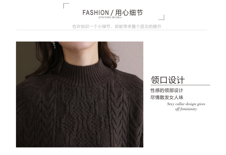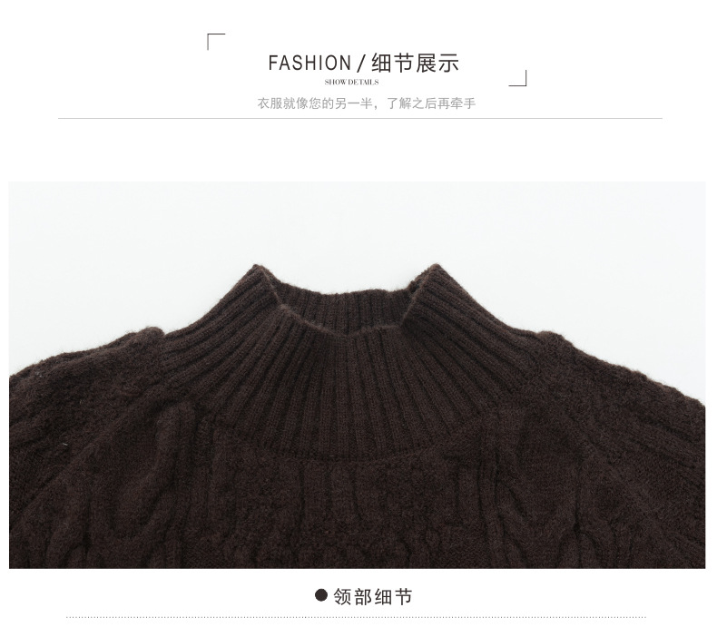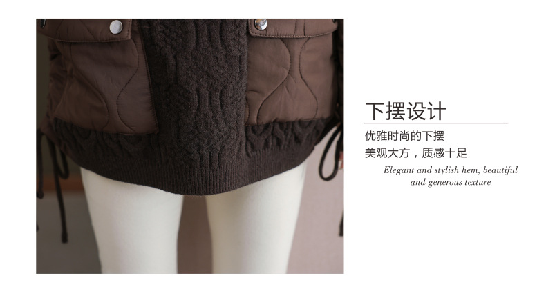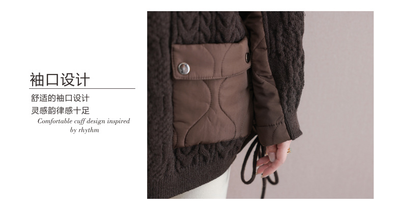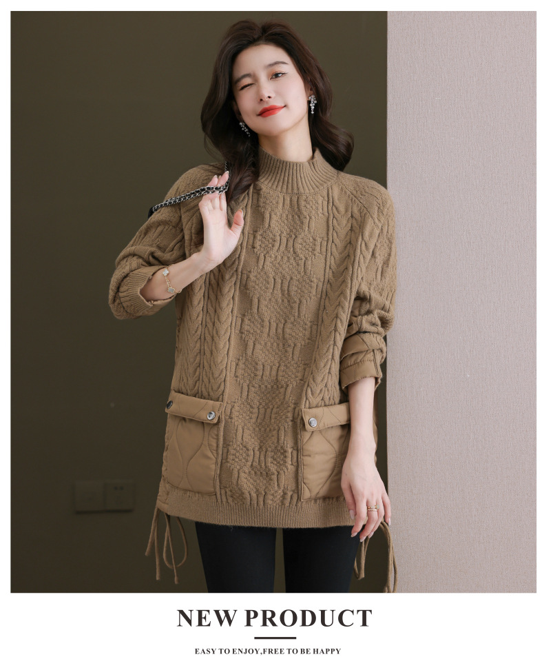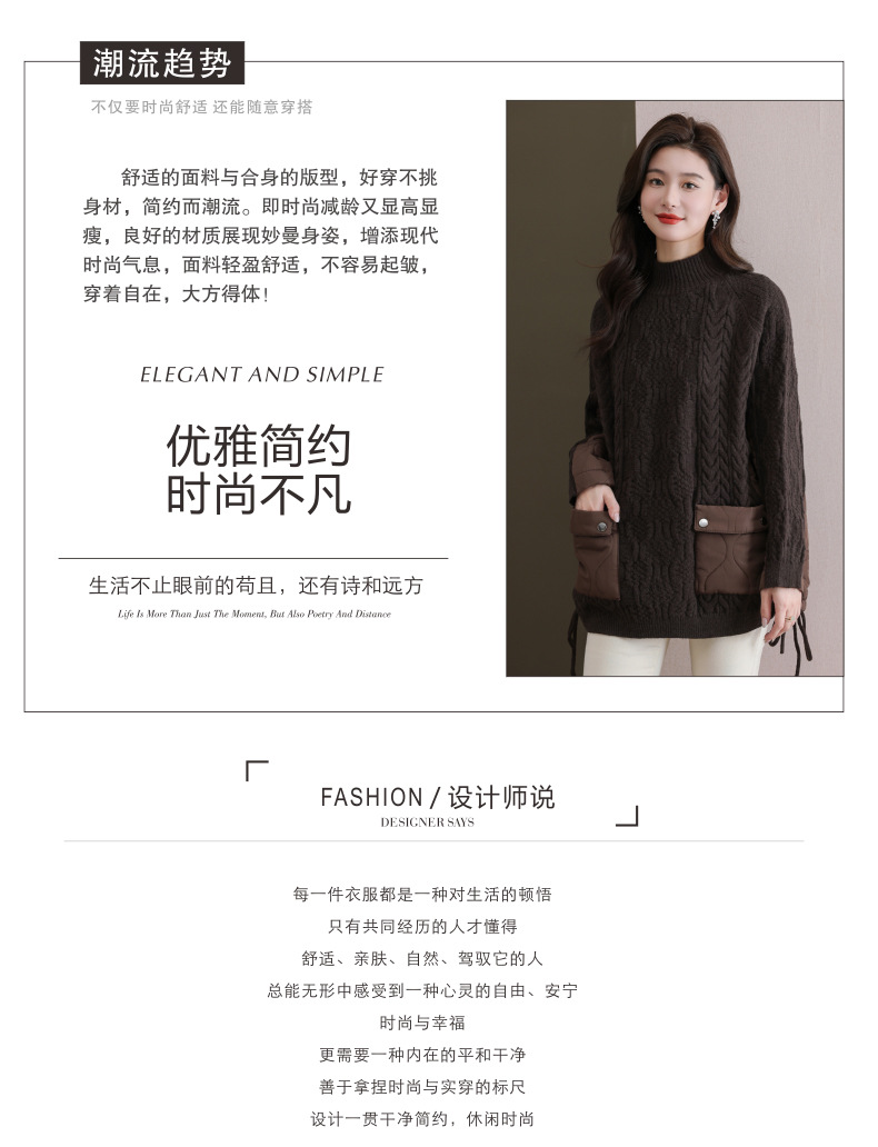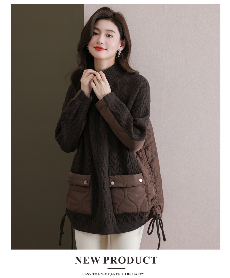 宽松外穿中长款毛衣拼接棉服,女秋冬新款冬季加厚半高领打底衫CC-11-68123