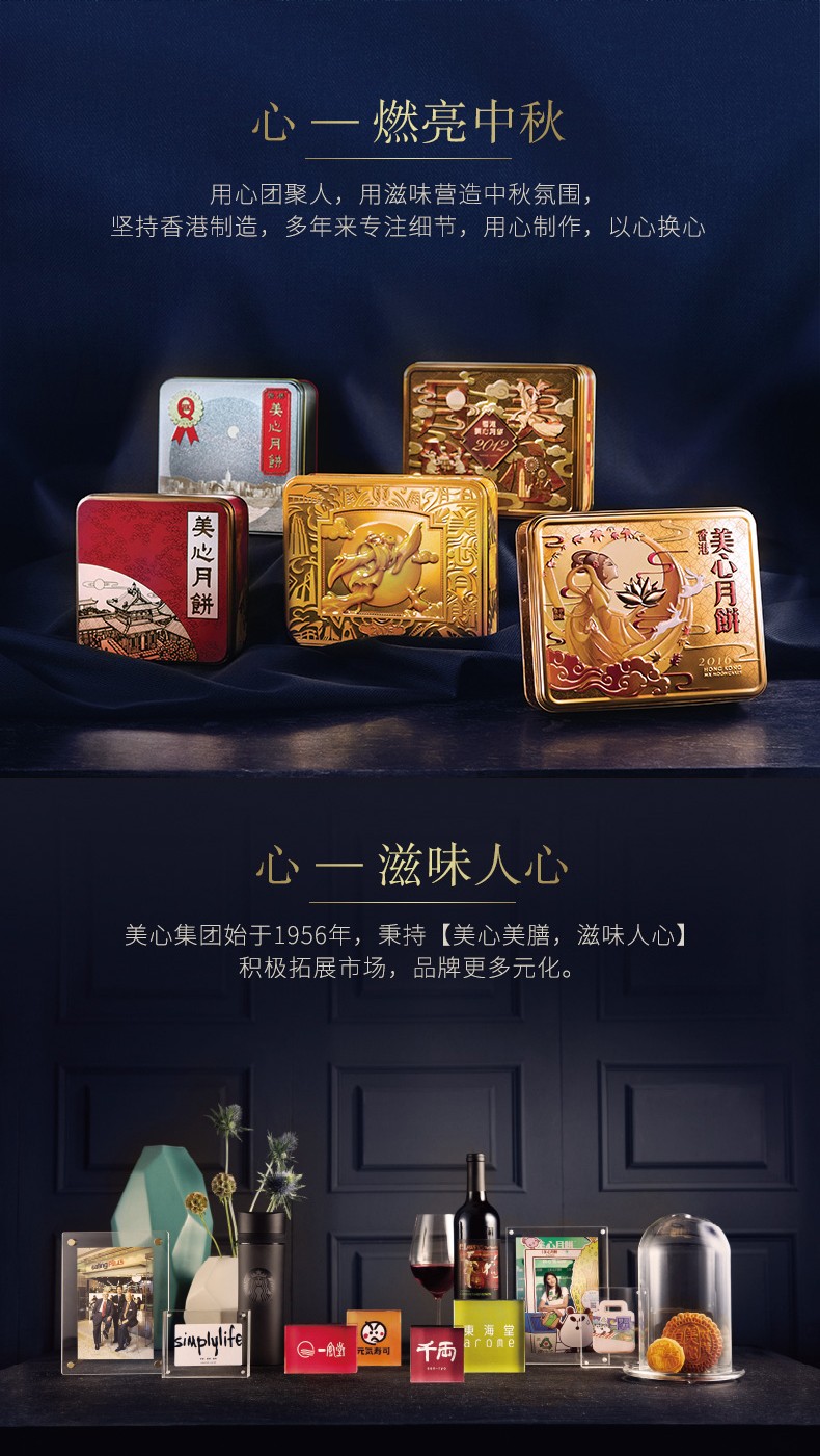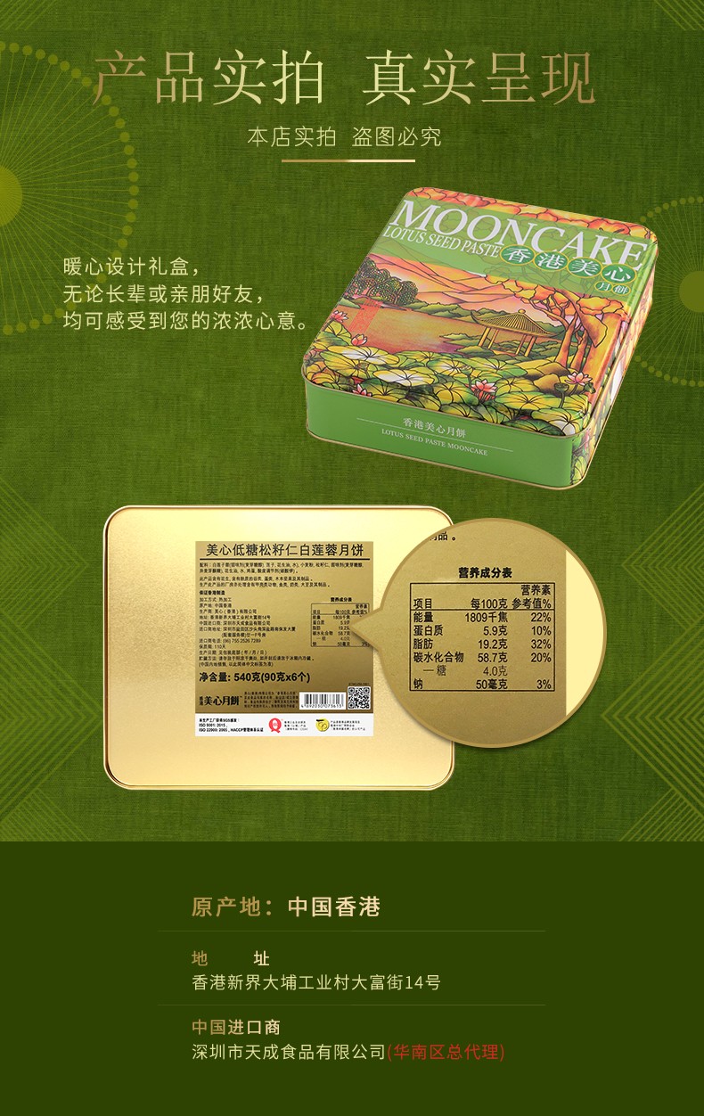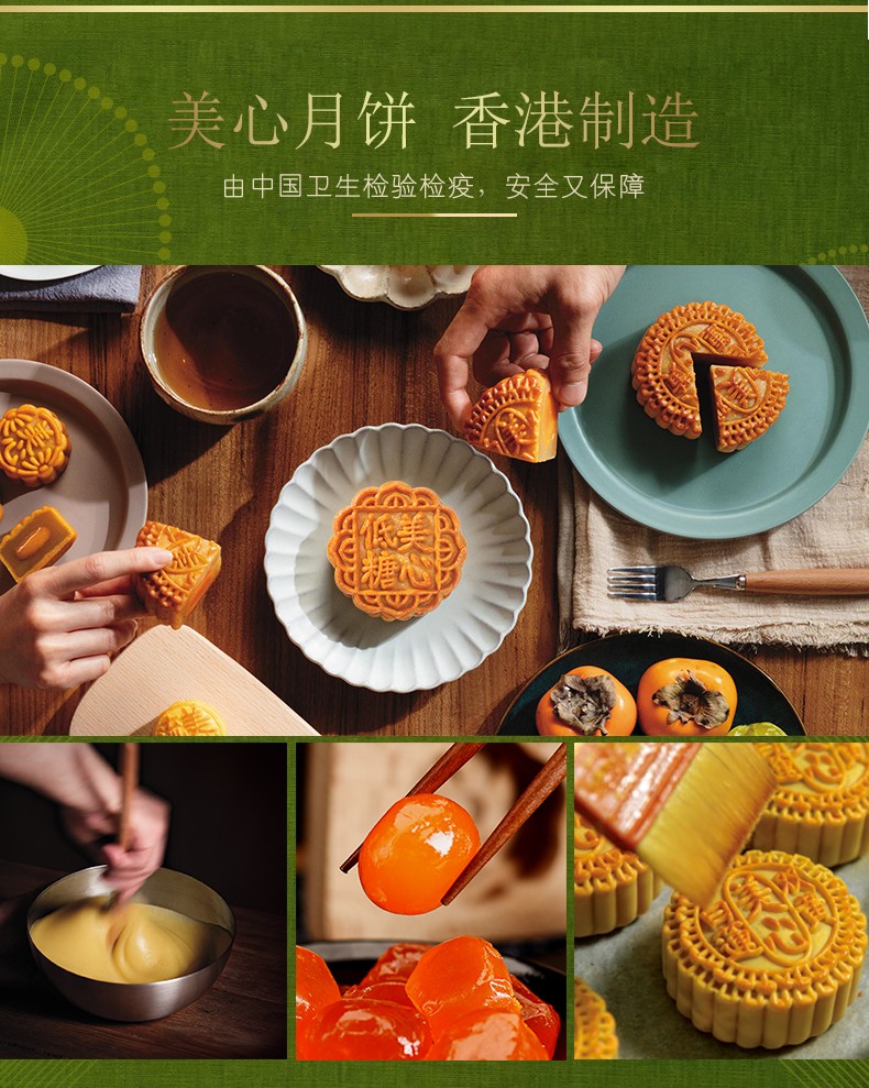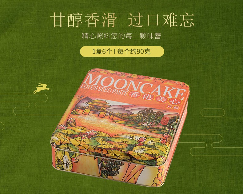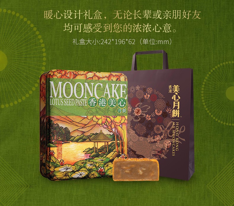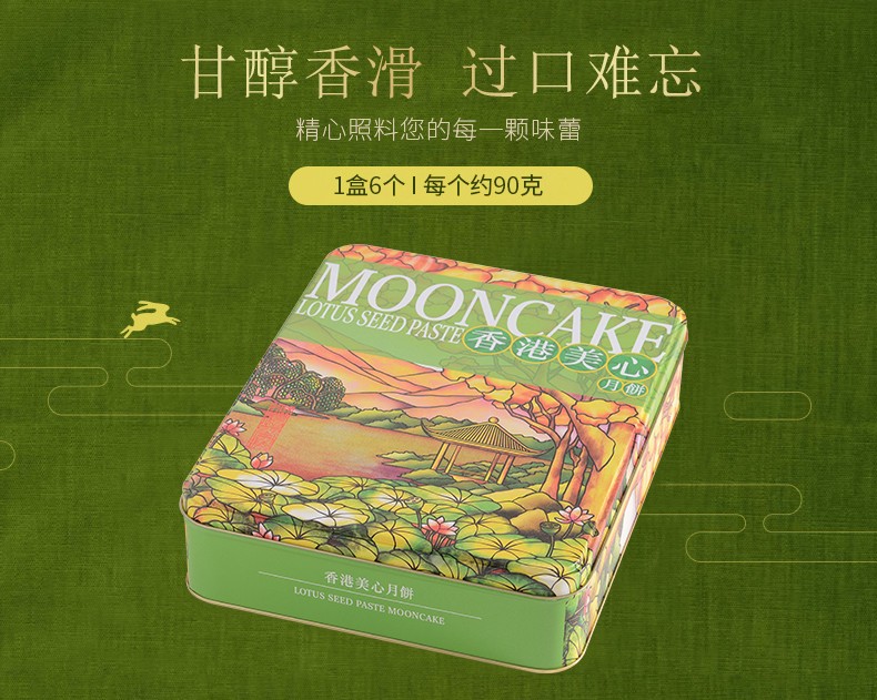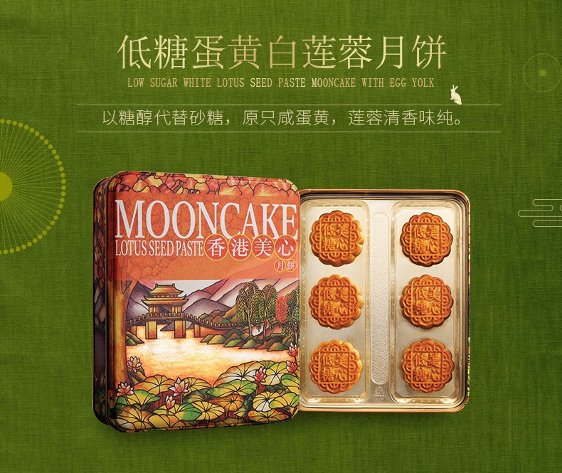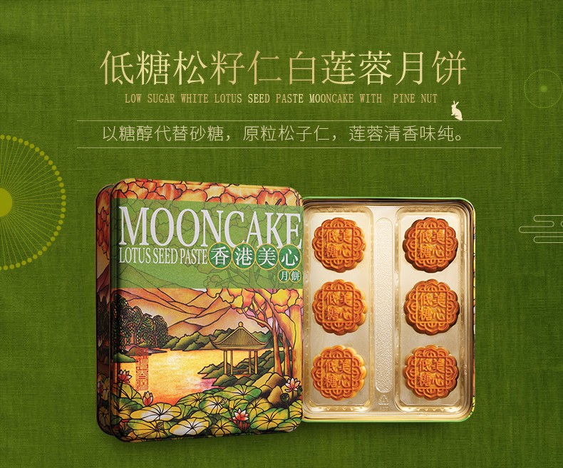 中国香港 美心月饼 低糖蛋黄白莲蓉\/松籽仁月饼 540g 港进口莲蓉月饼礼盒 6粒装 低糖松籽仁莲蓉月饼