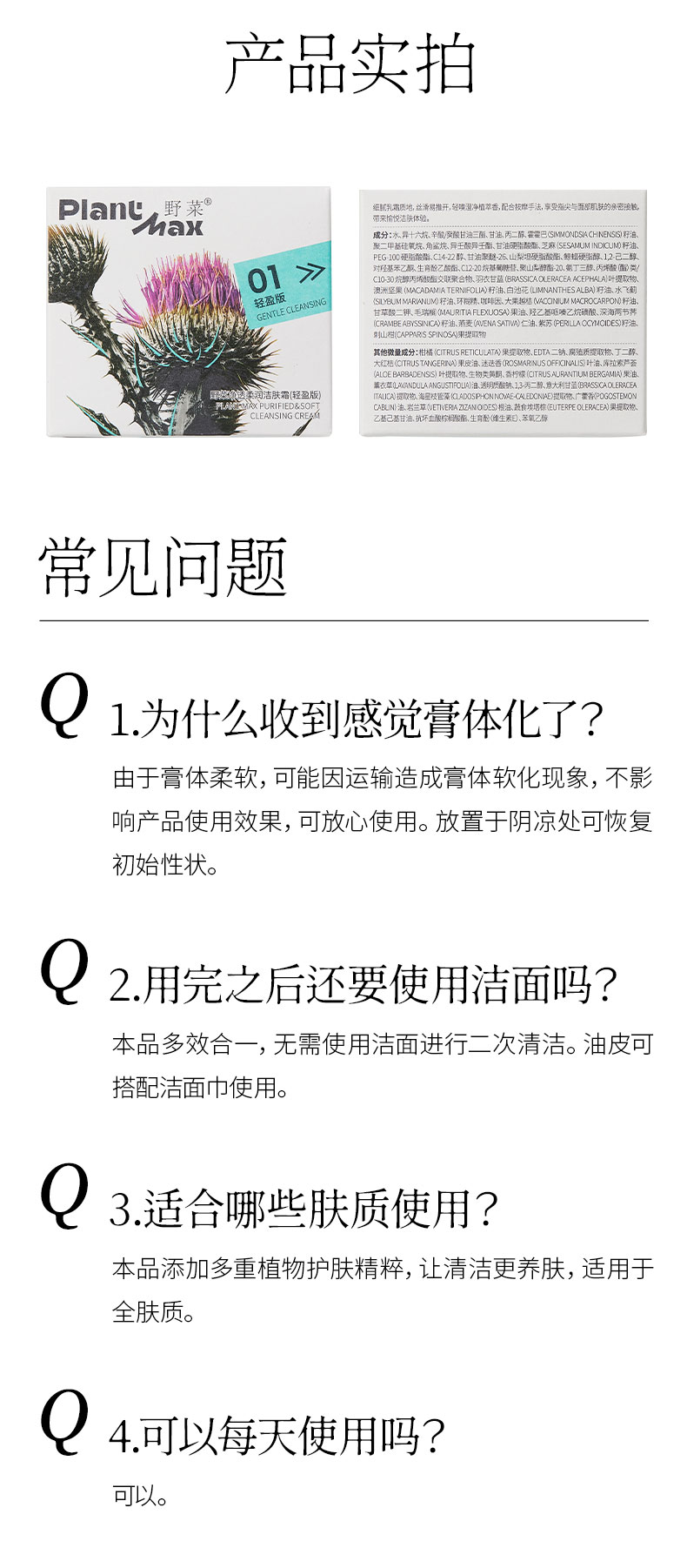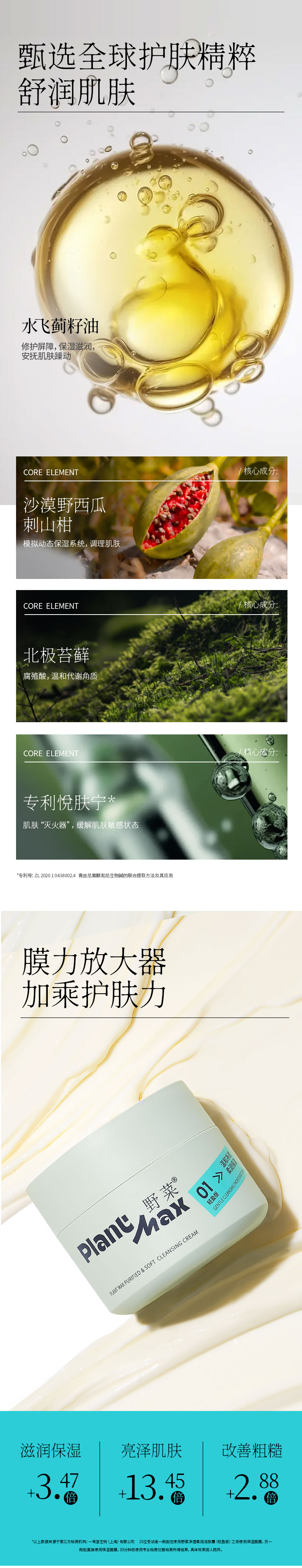 野菜一瓶多效柔润洁肤霜 卸妆清洁保湿 舒缓紧致肌肤 毛孔深呼吸 洗出好肤质