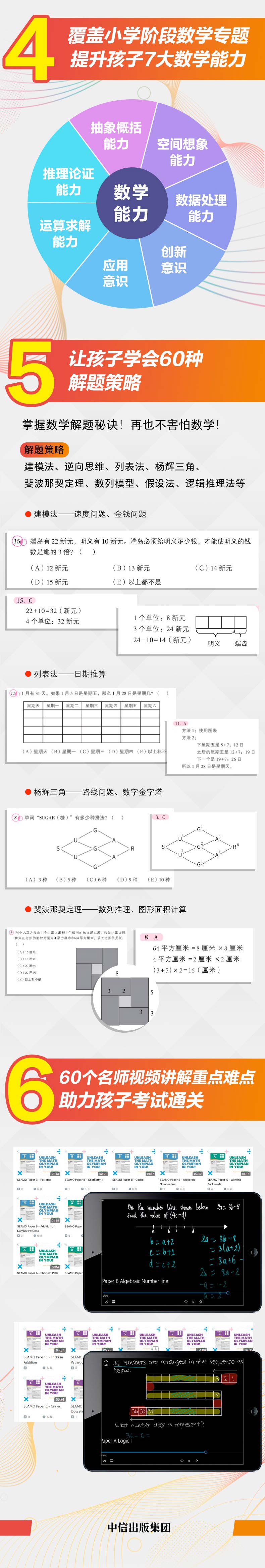 本系列图书保留了新加坡数学思维解题步骤,为孩子展示了一些不同于国内常用解题方法的思路,并由国内具有奥数竞赛经验的编辑老师进行审定,能为读者的数学思维训练提供助力。
