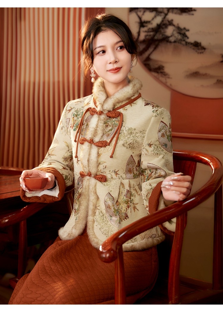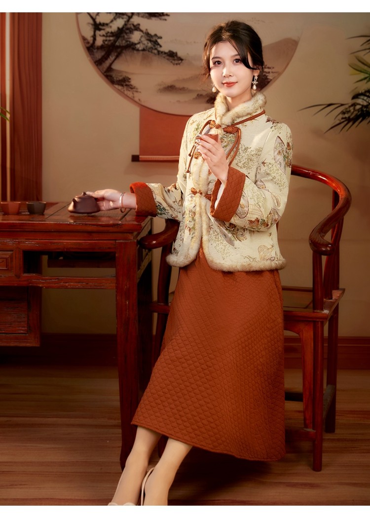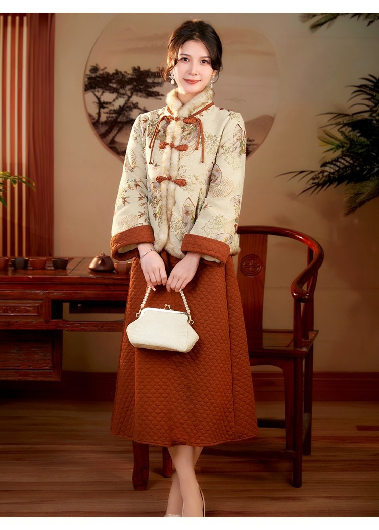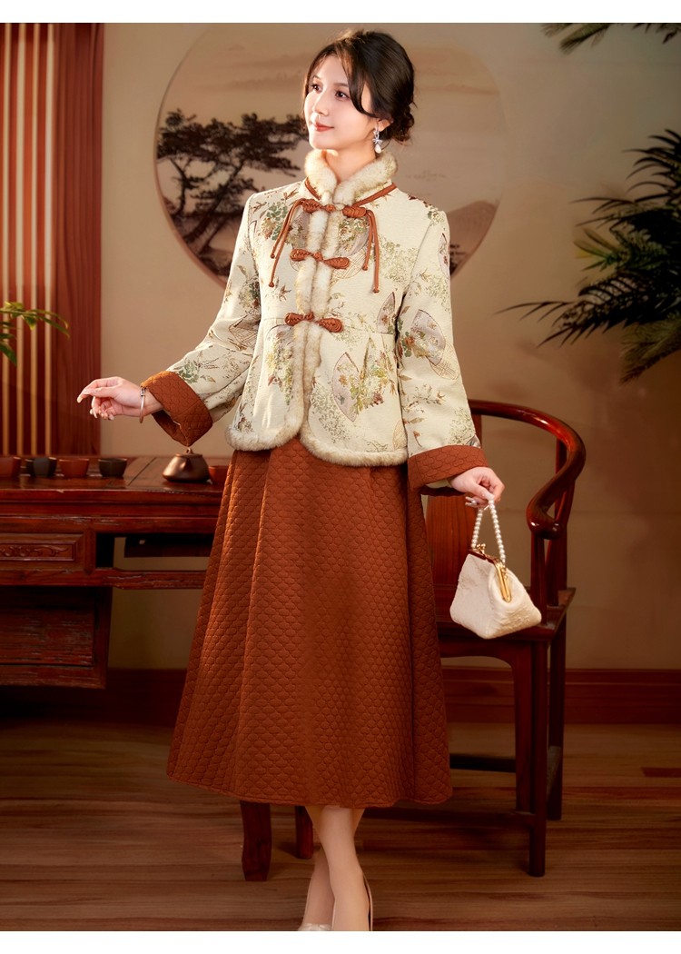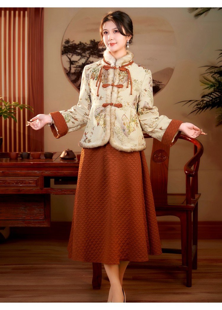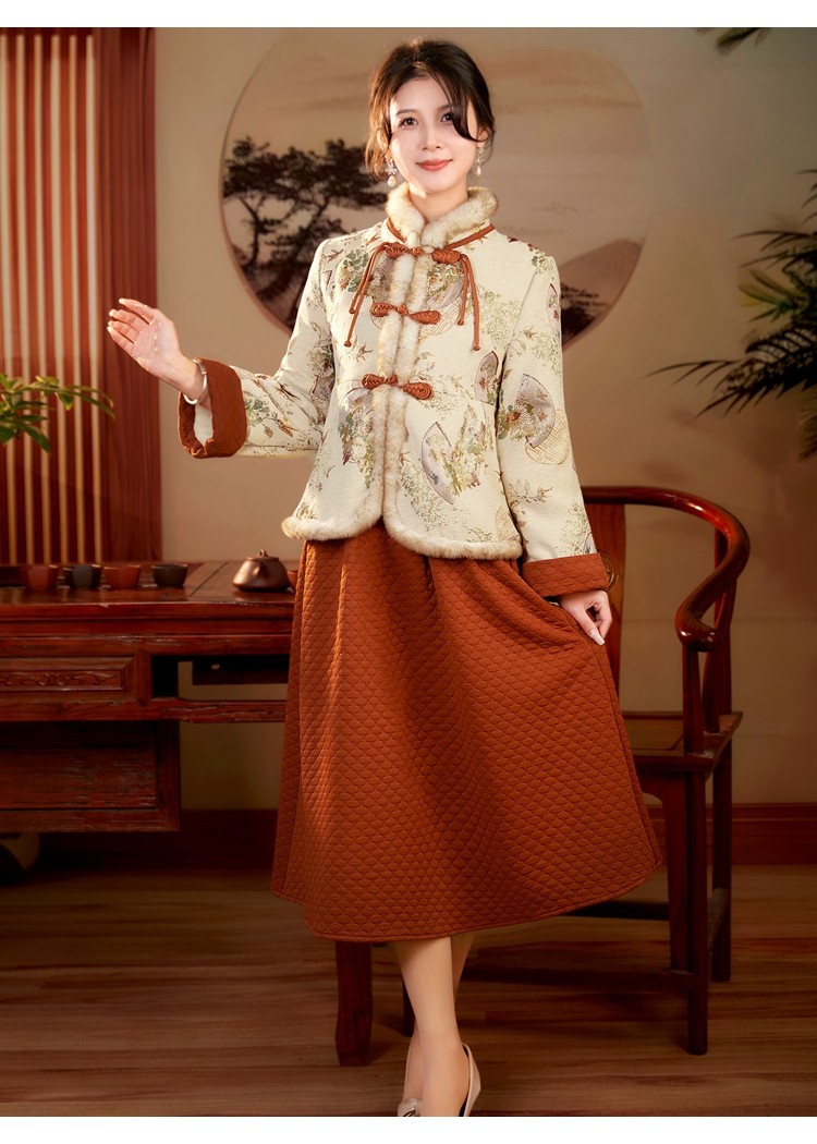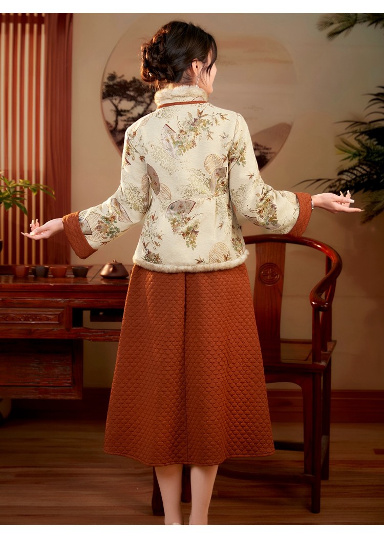 旗袍套装两件套改良冬新中式轻国风加厚裙子长袖冬款冬季秋冬唐装