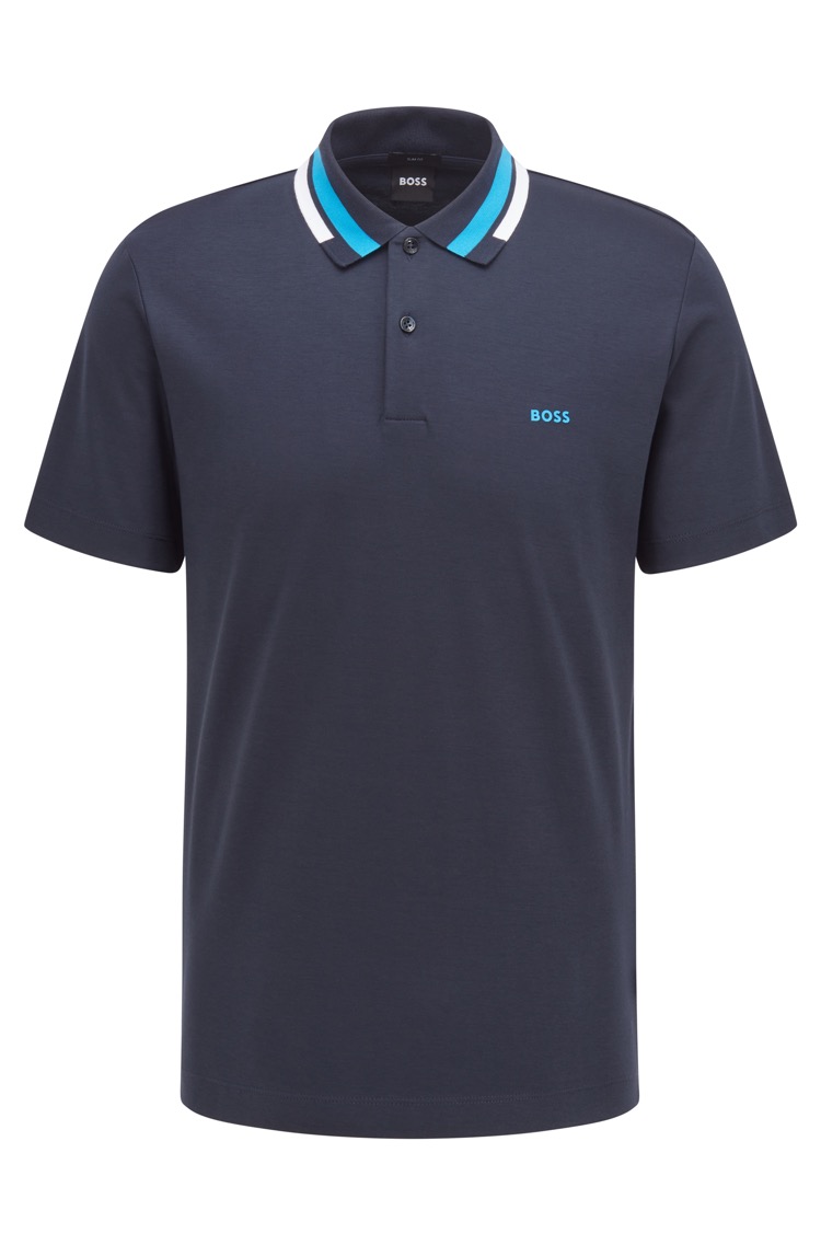 百货世界-HUGOBOSS雨果博斯男士2022春夏新款徽标印花棉毛修身短袖POLO衫