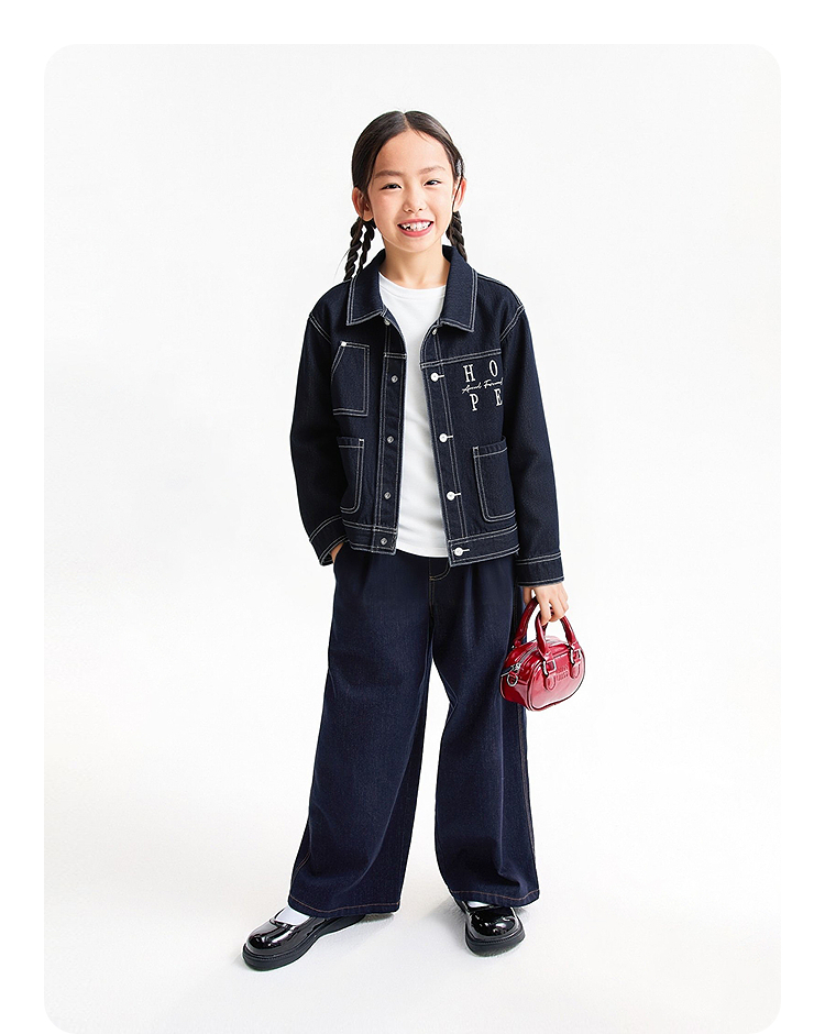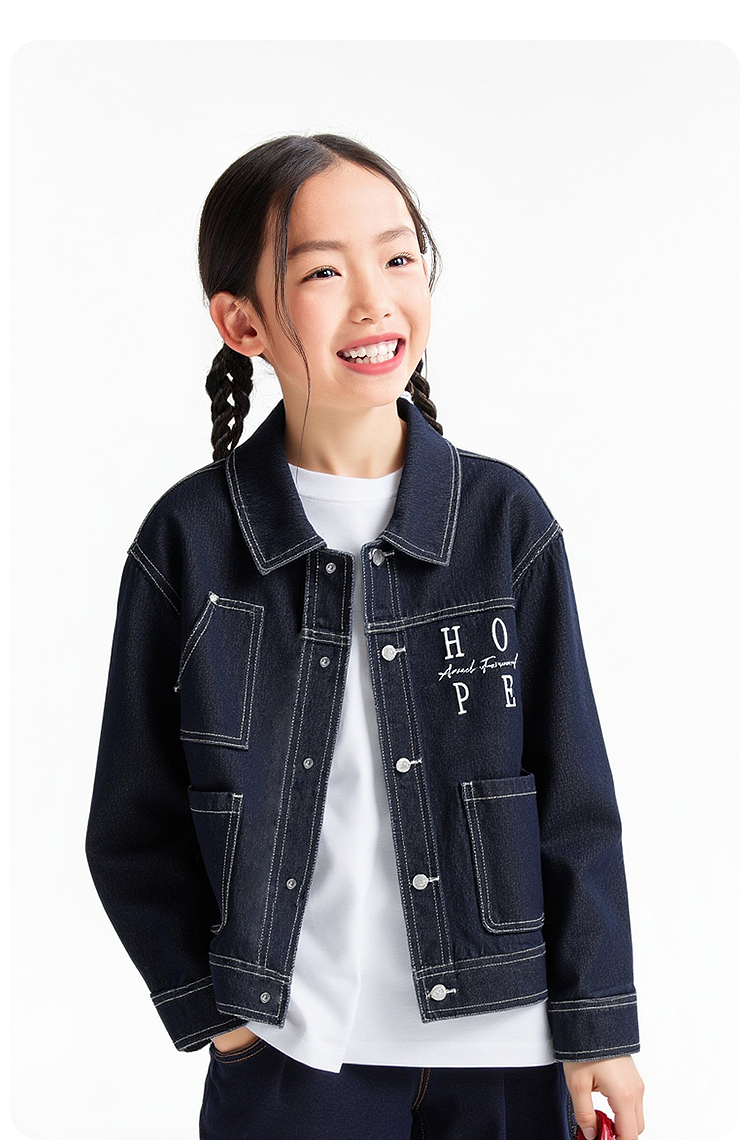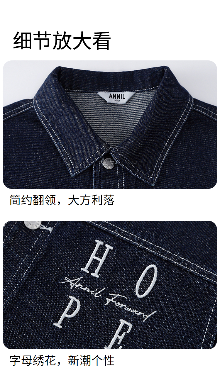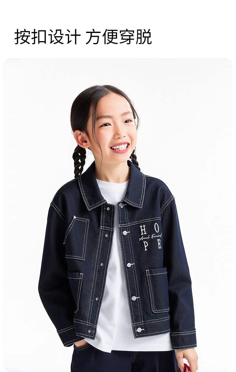 男女童翻领牛仔外套春季新款安奈儿童装EM615570