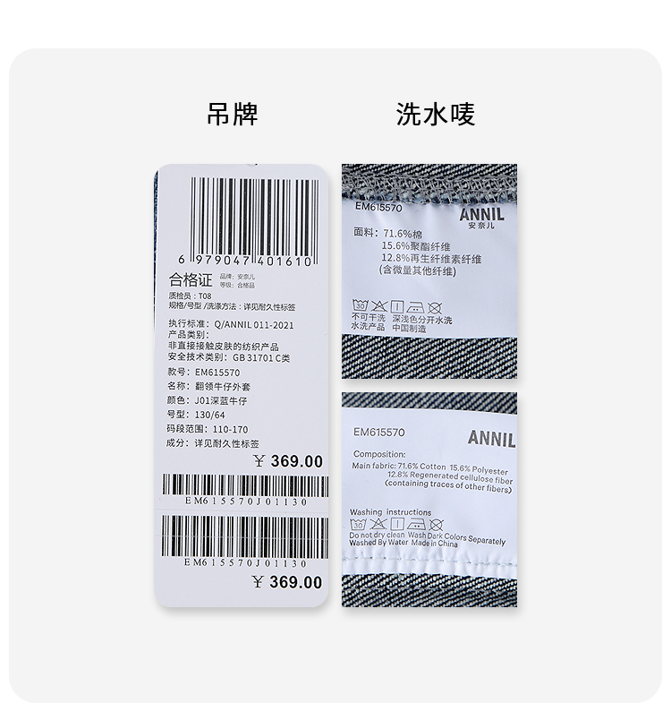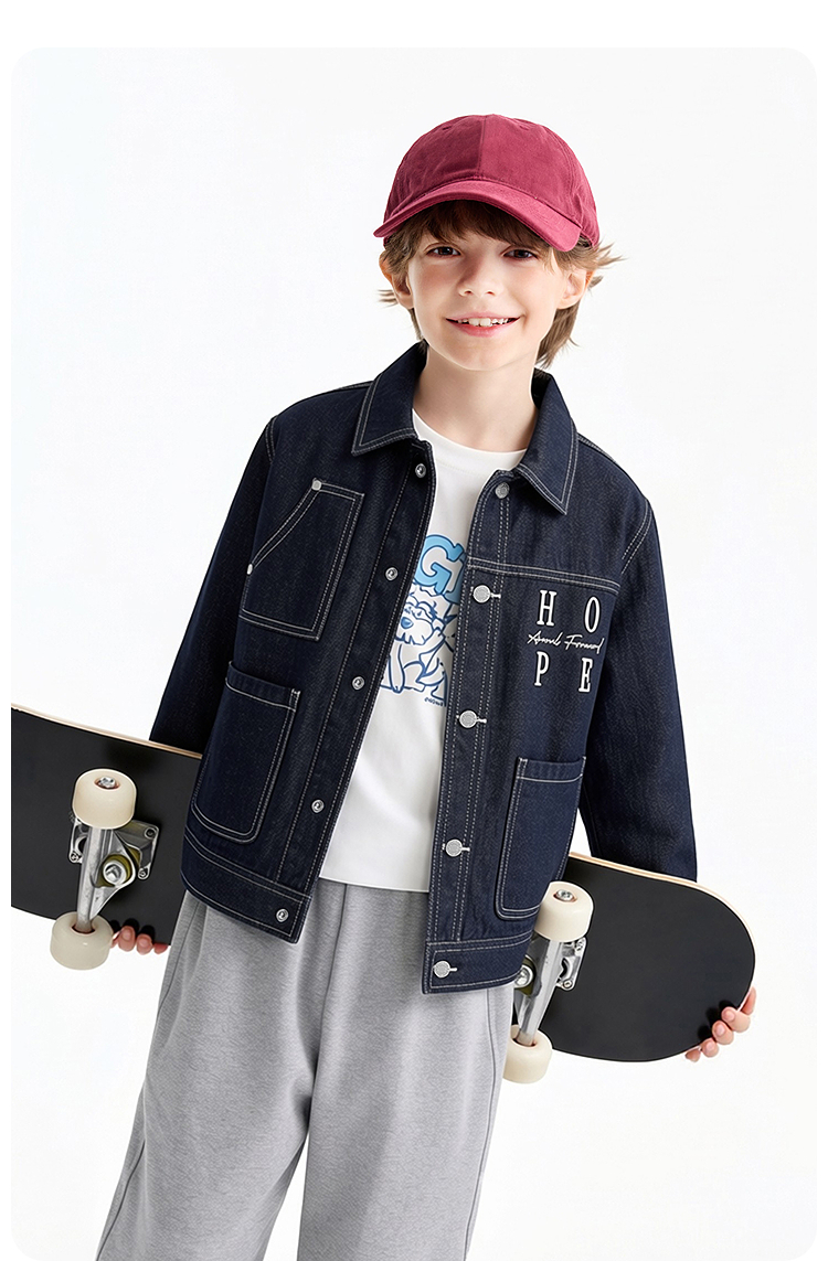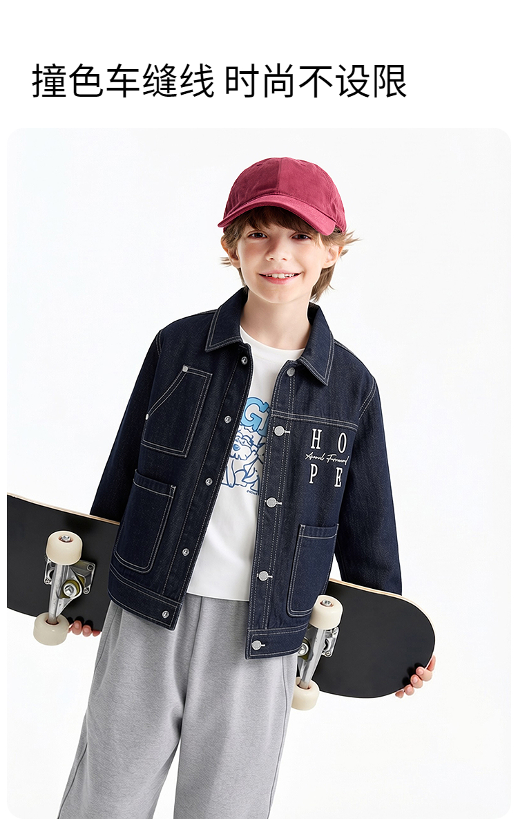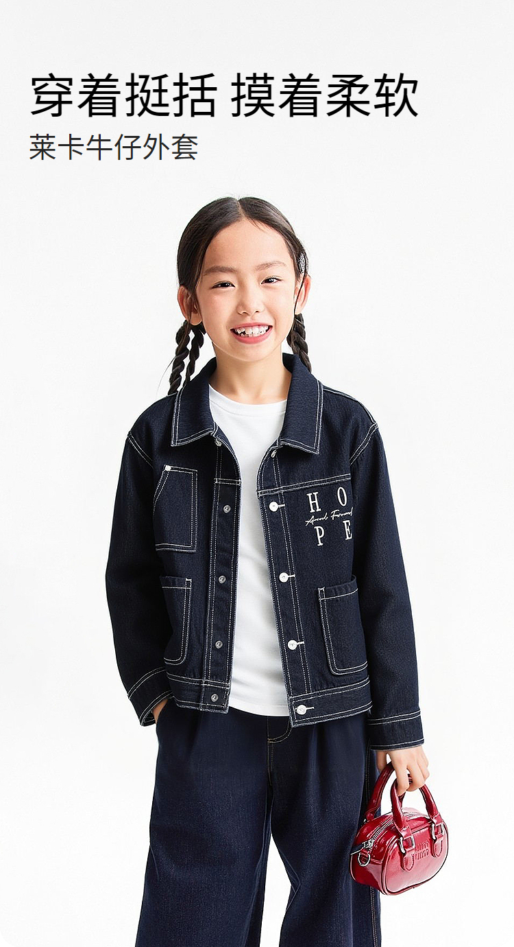 男女童翻领牛仔外套春季新款安奈儿童装EM615570