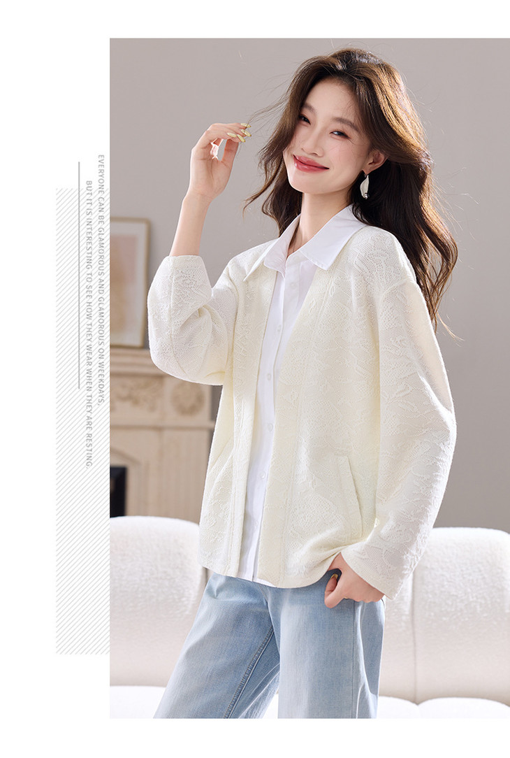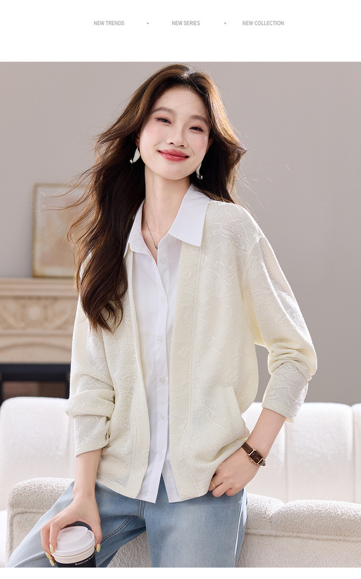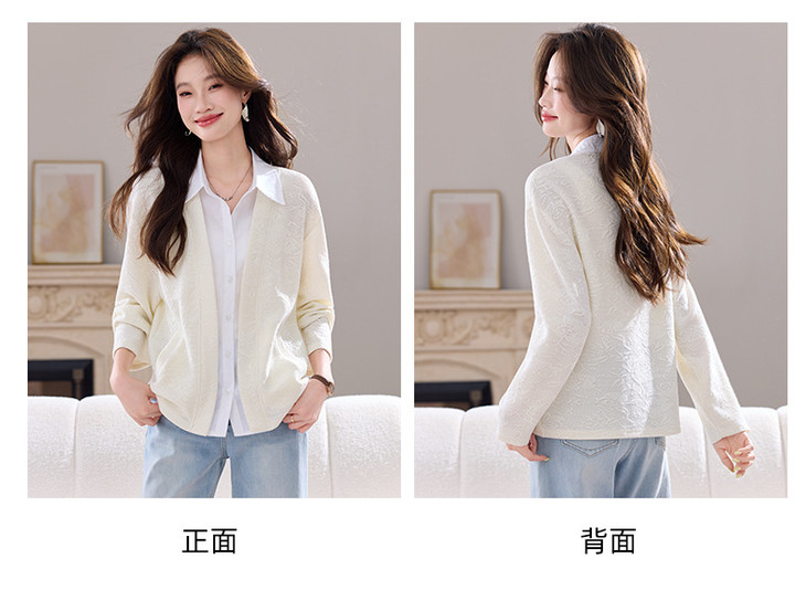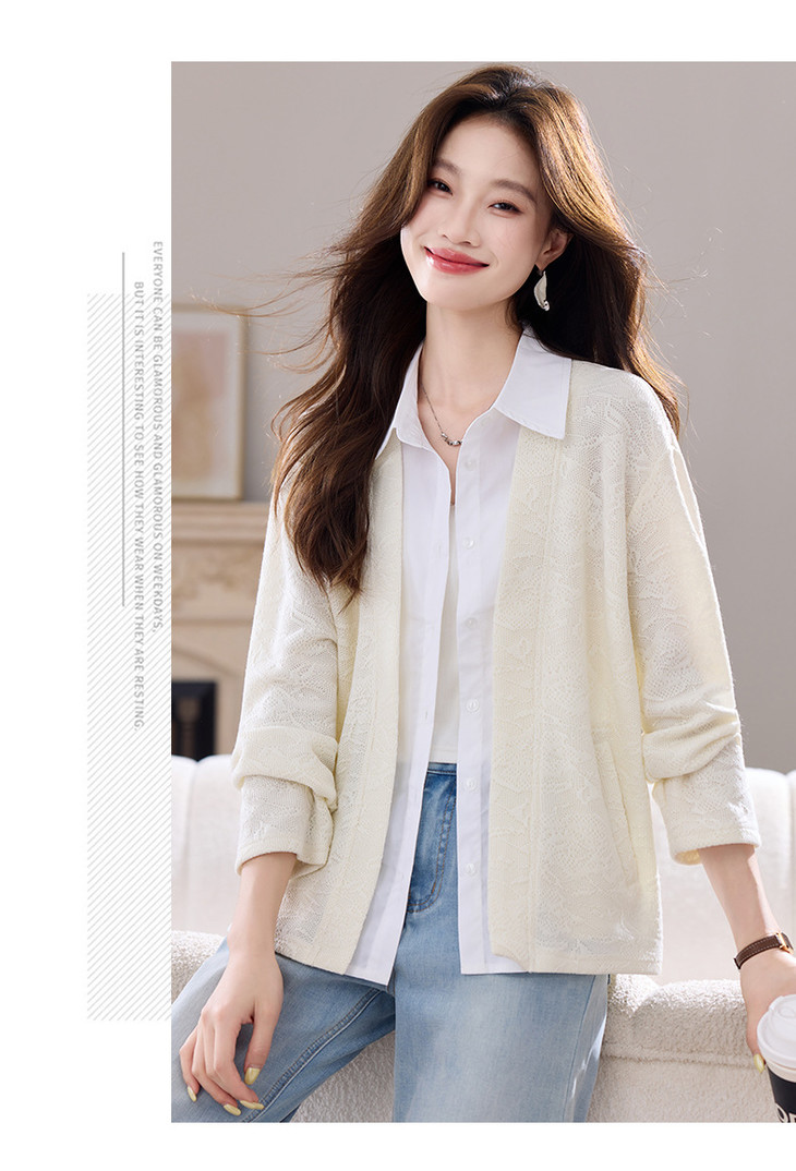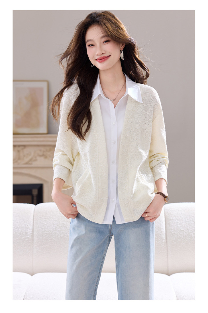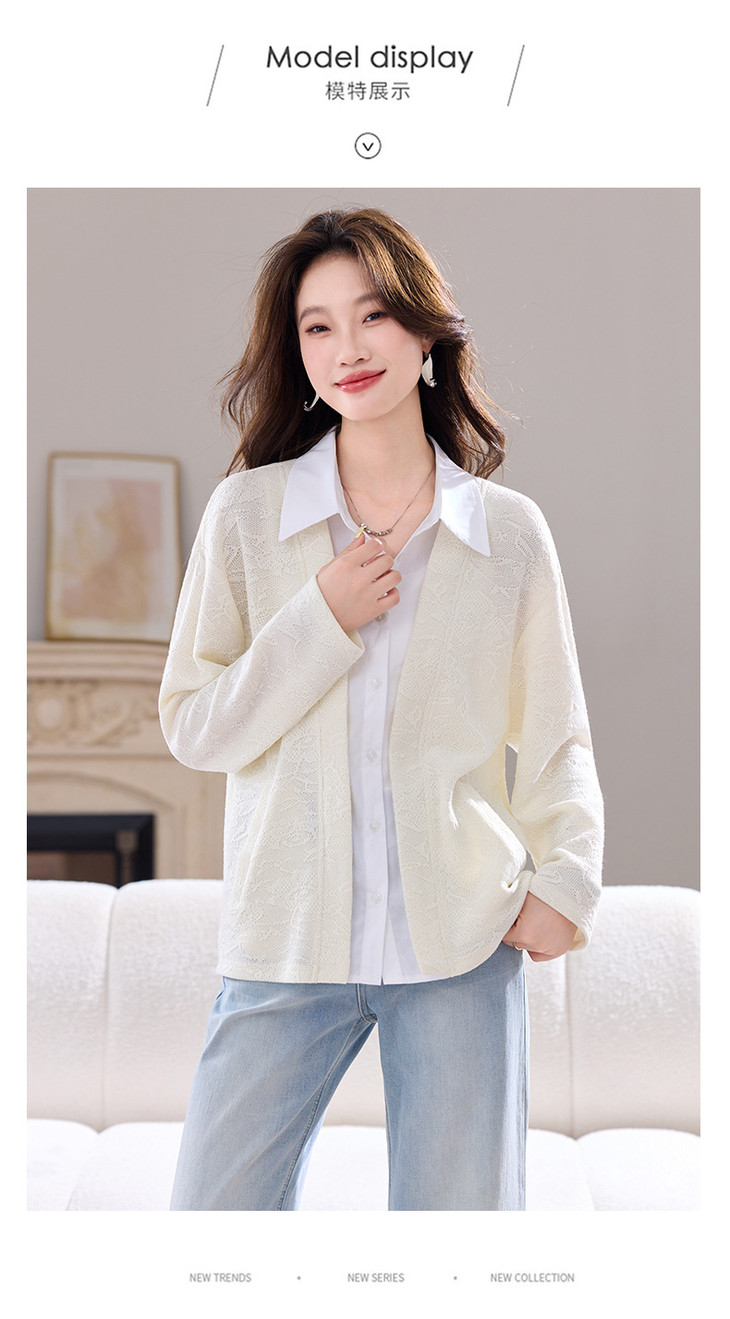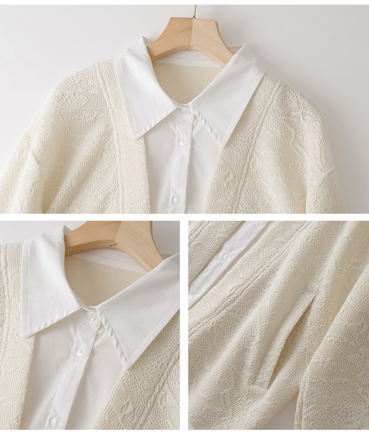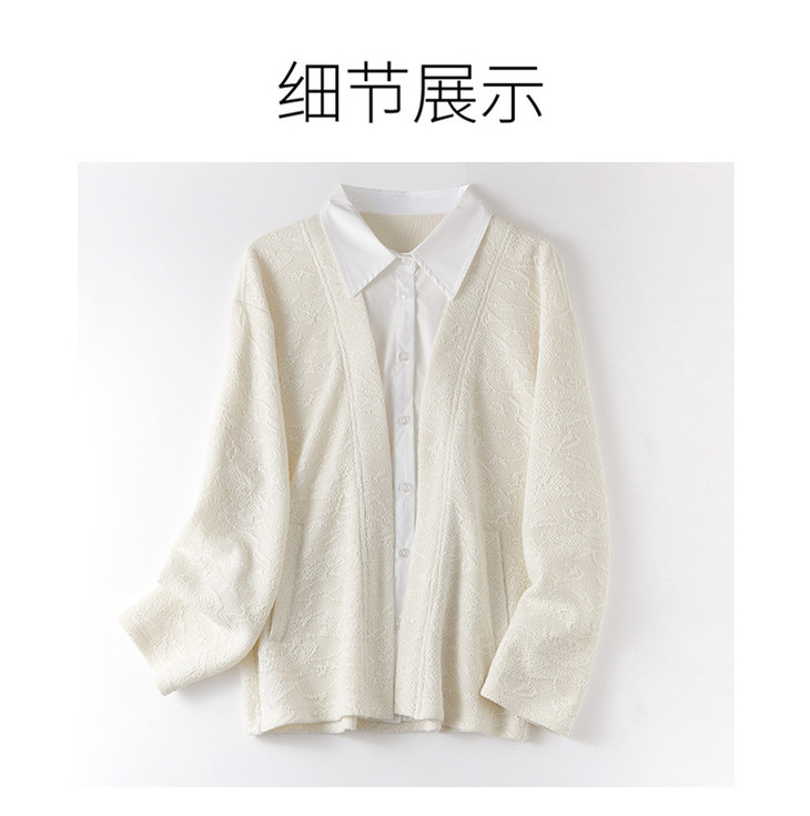 假两件衬衫拼接针织开衫,薄款毛衣外套长袖上衣CC-J6868