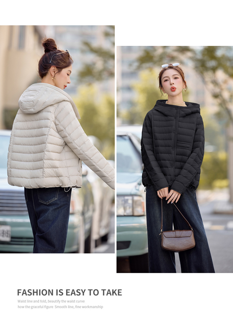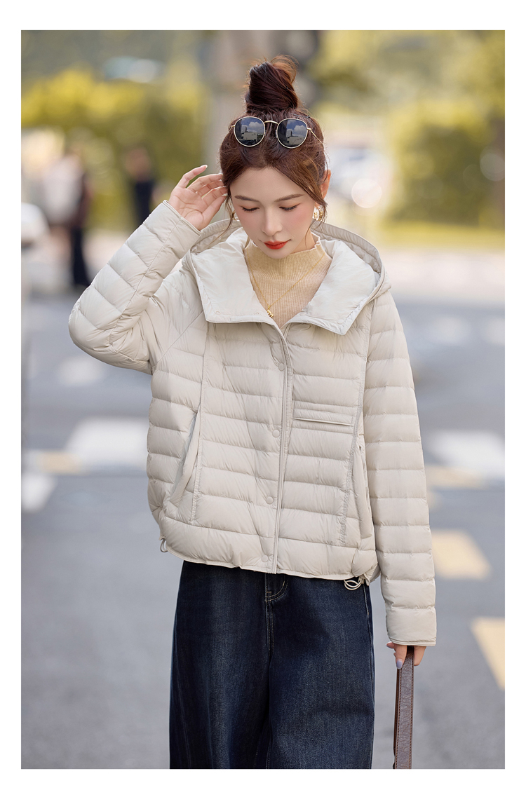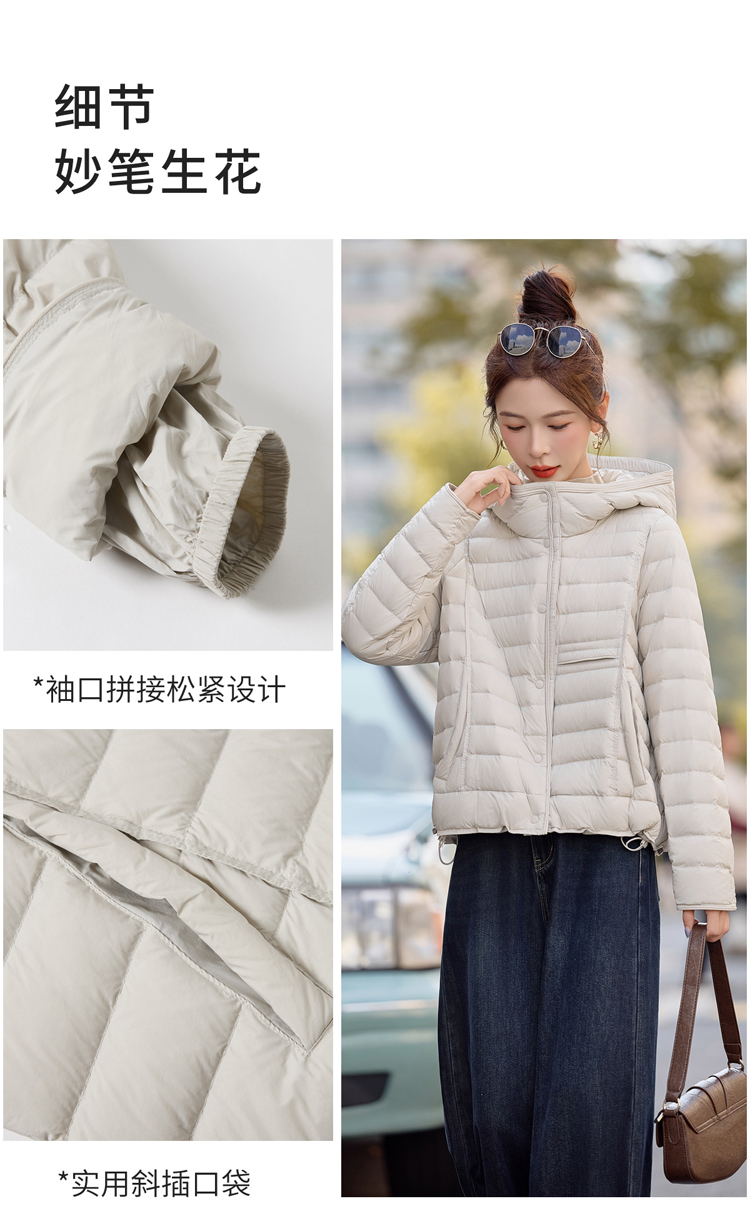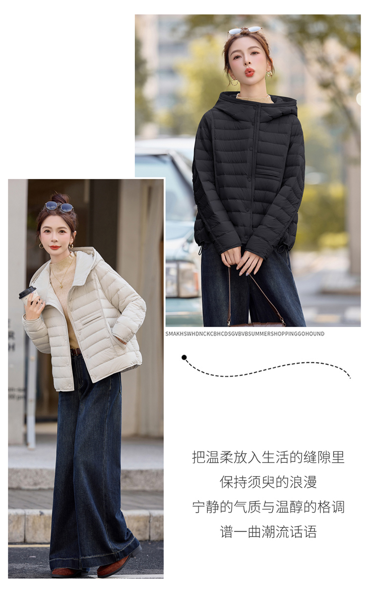 轻便排骨羽绒服女短款,宽松连帽90白鸭绒小个子外套潮HR-YUMO1006