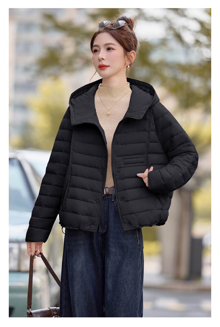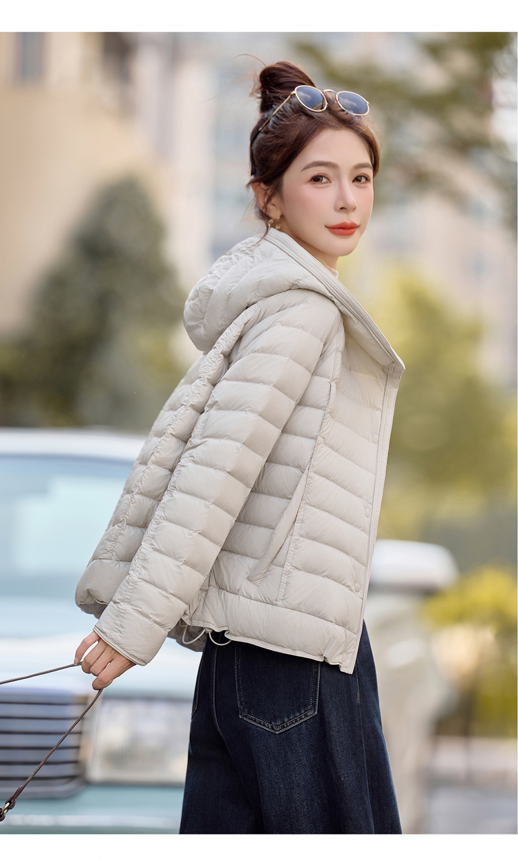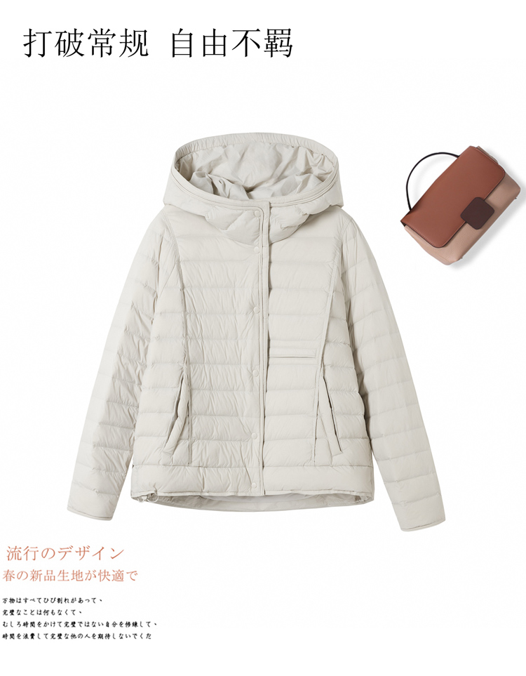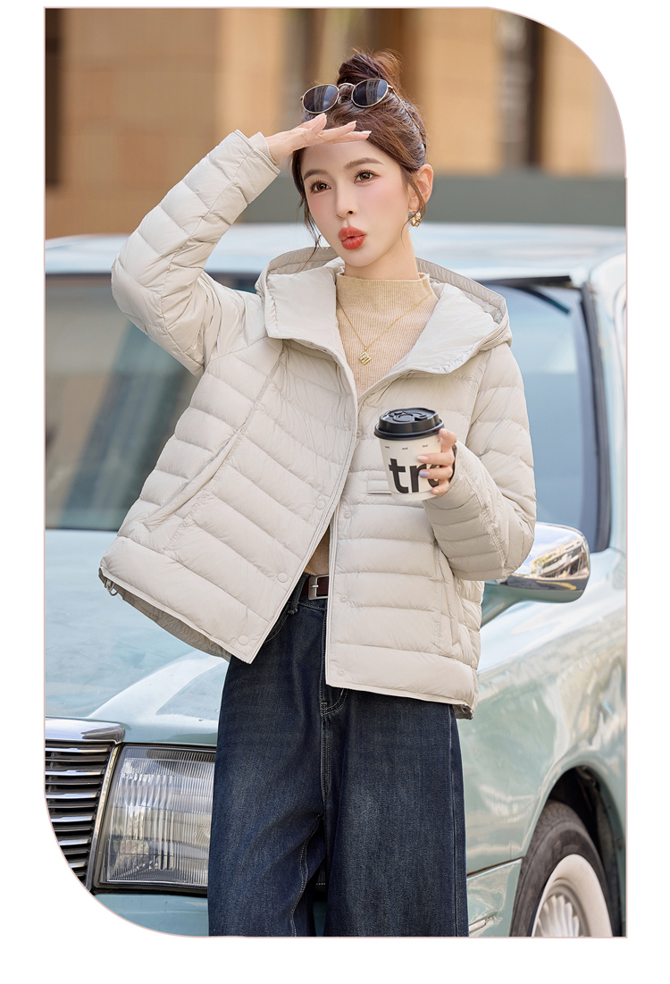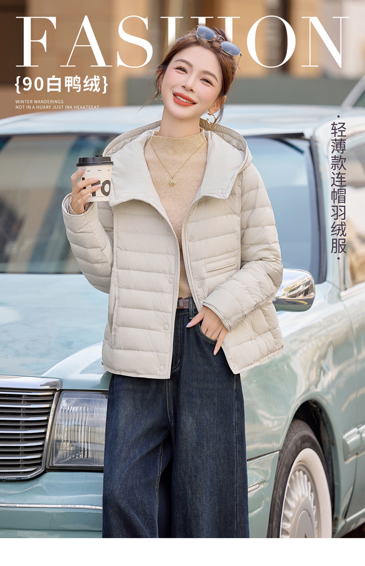 轻便排骨羽绒服女短款,宽松连帽90白鸭绒小个子外套潮HR-YUMO1006