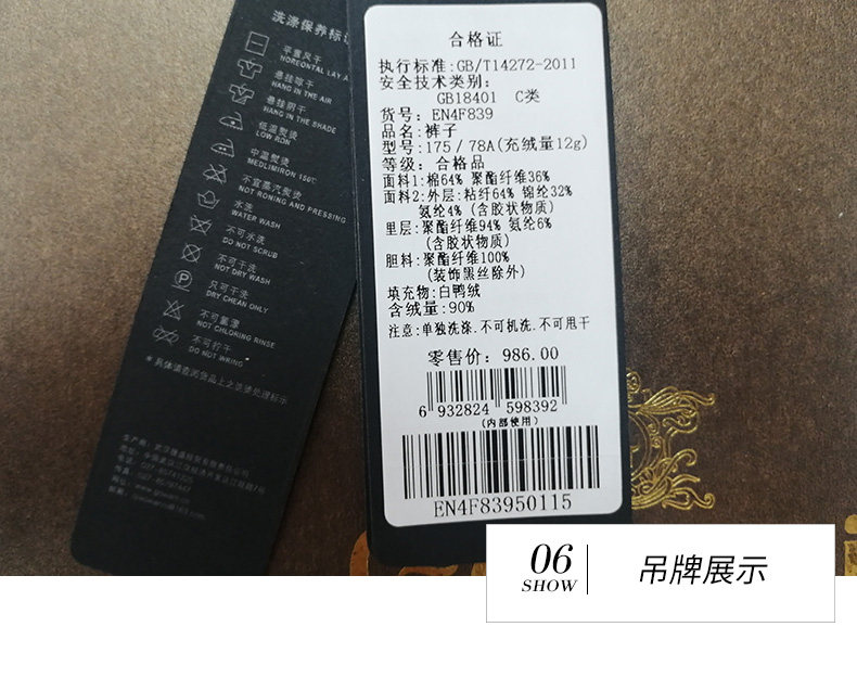 乔万尼冬季裤子女时尚气质修身显瘦白鸭绒保暖长裤EN4F839
