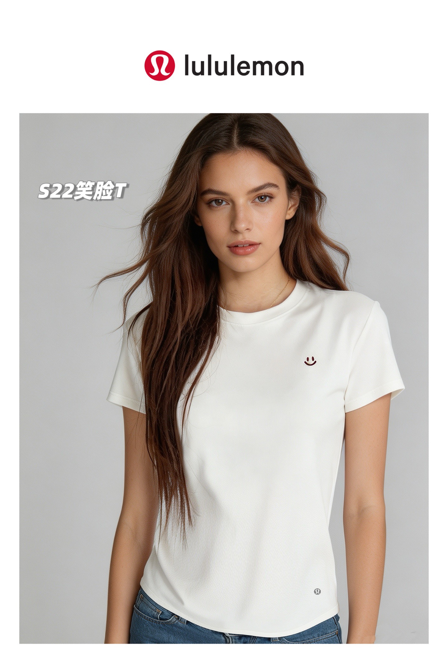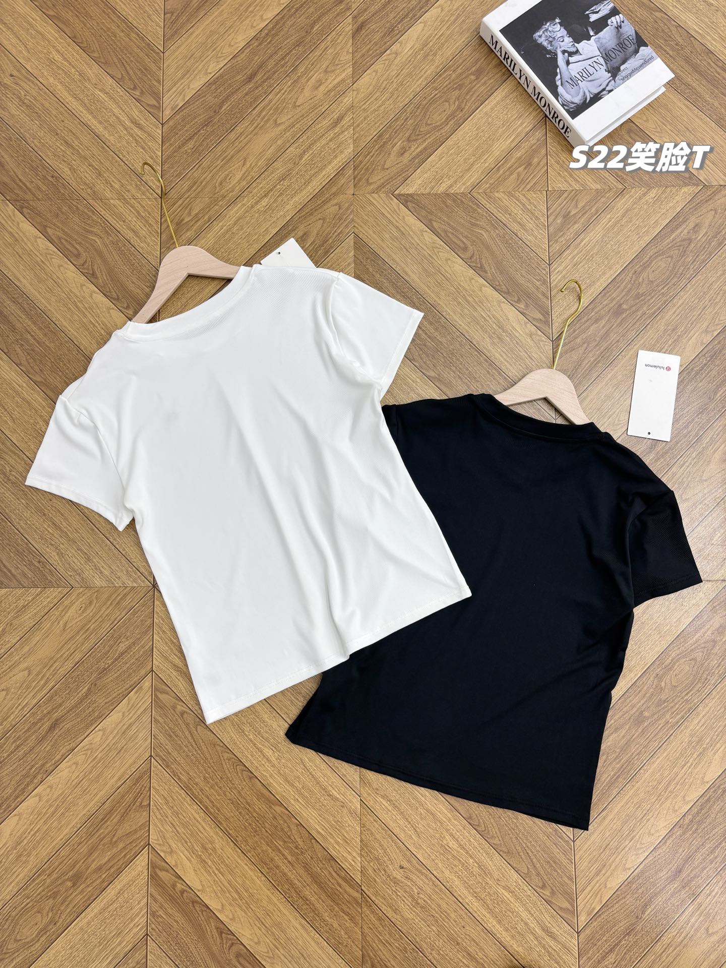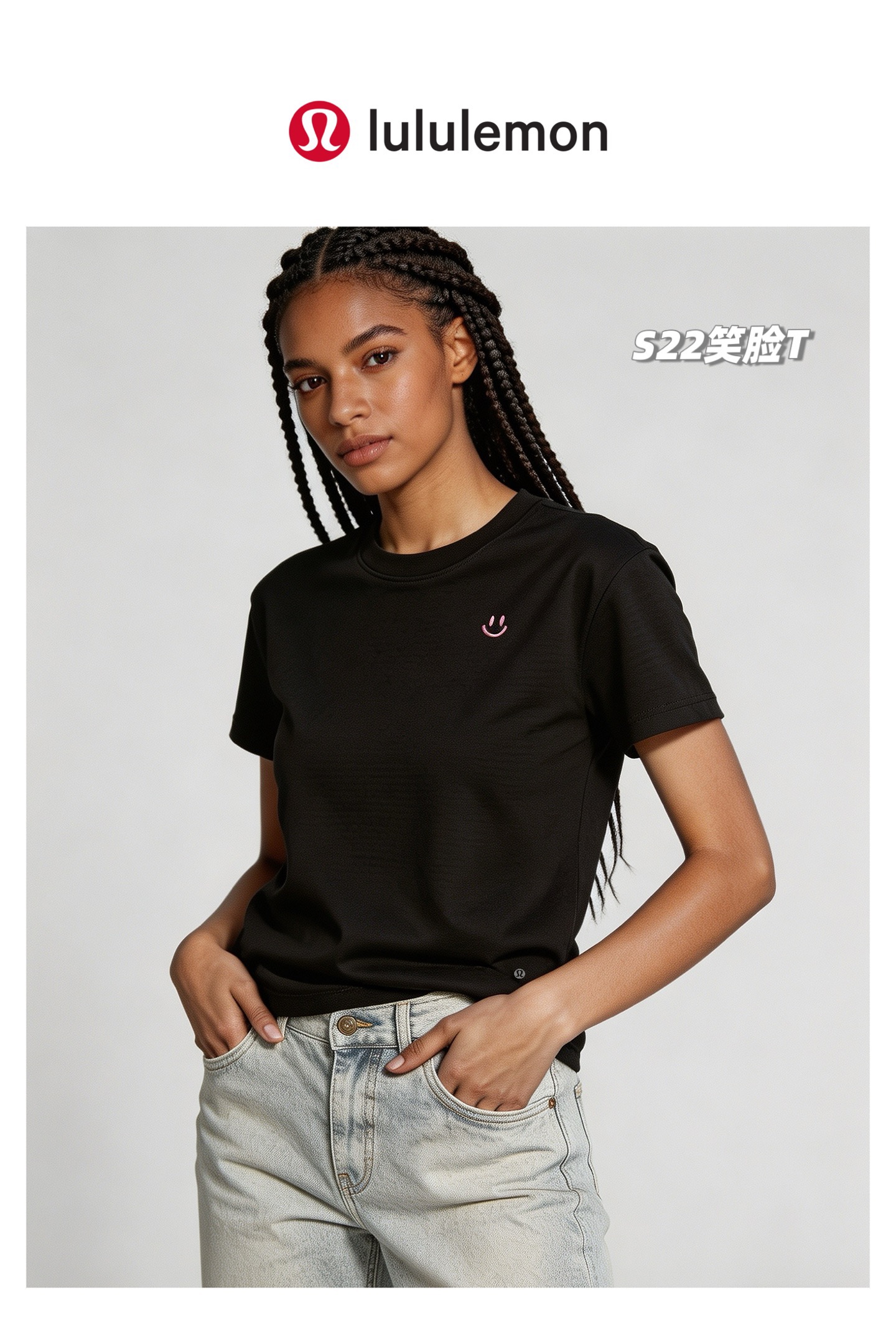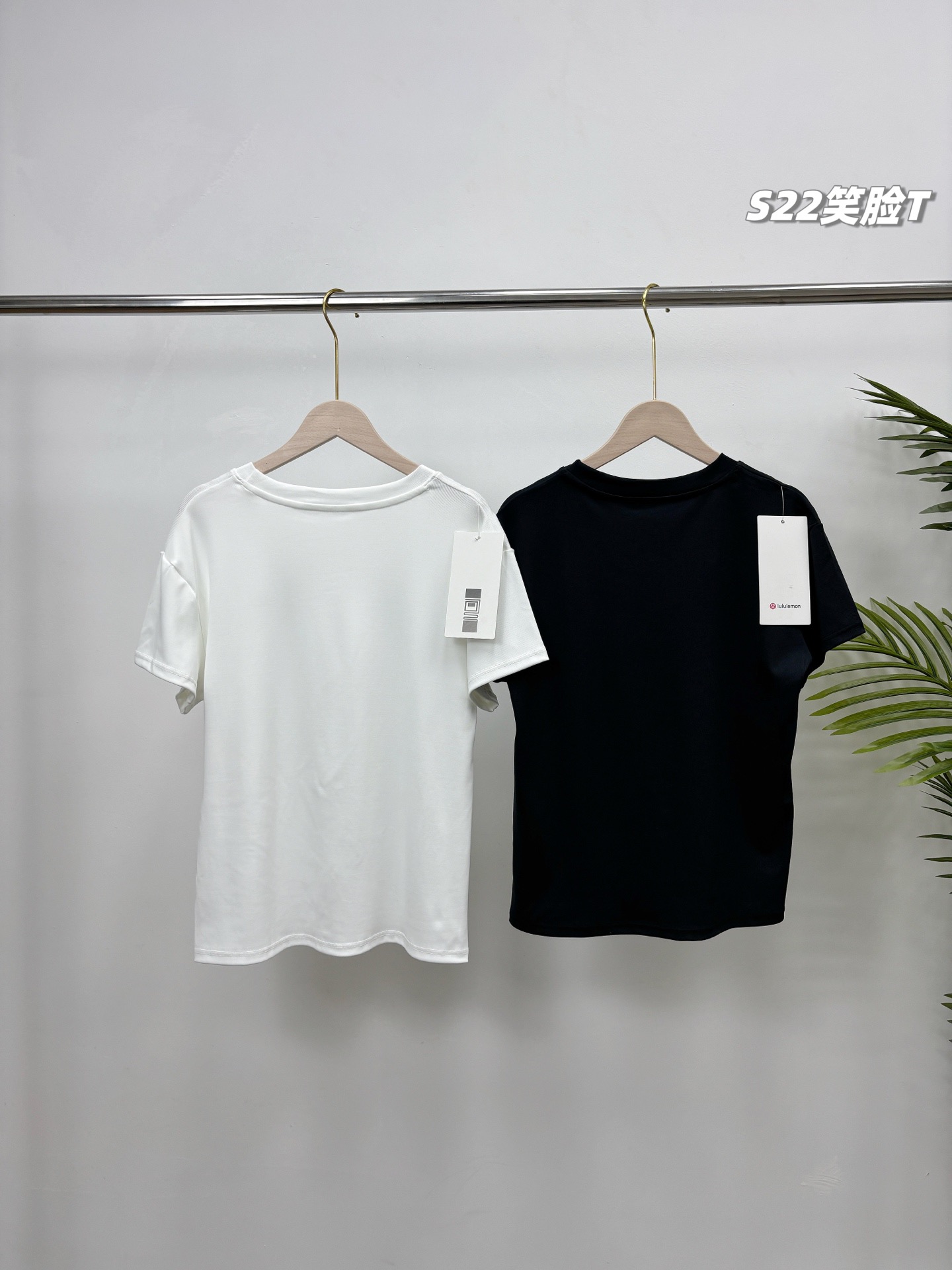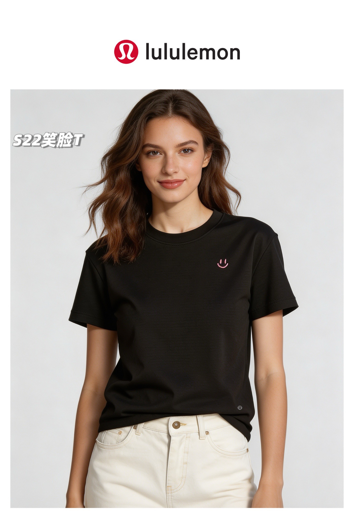 一包2件装!lulu2026新款女士笑脸正肩纯色休闲女士短袖T恤!