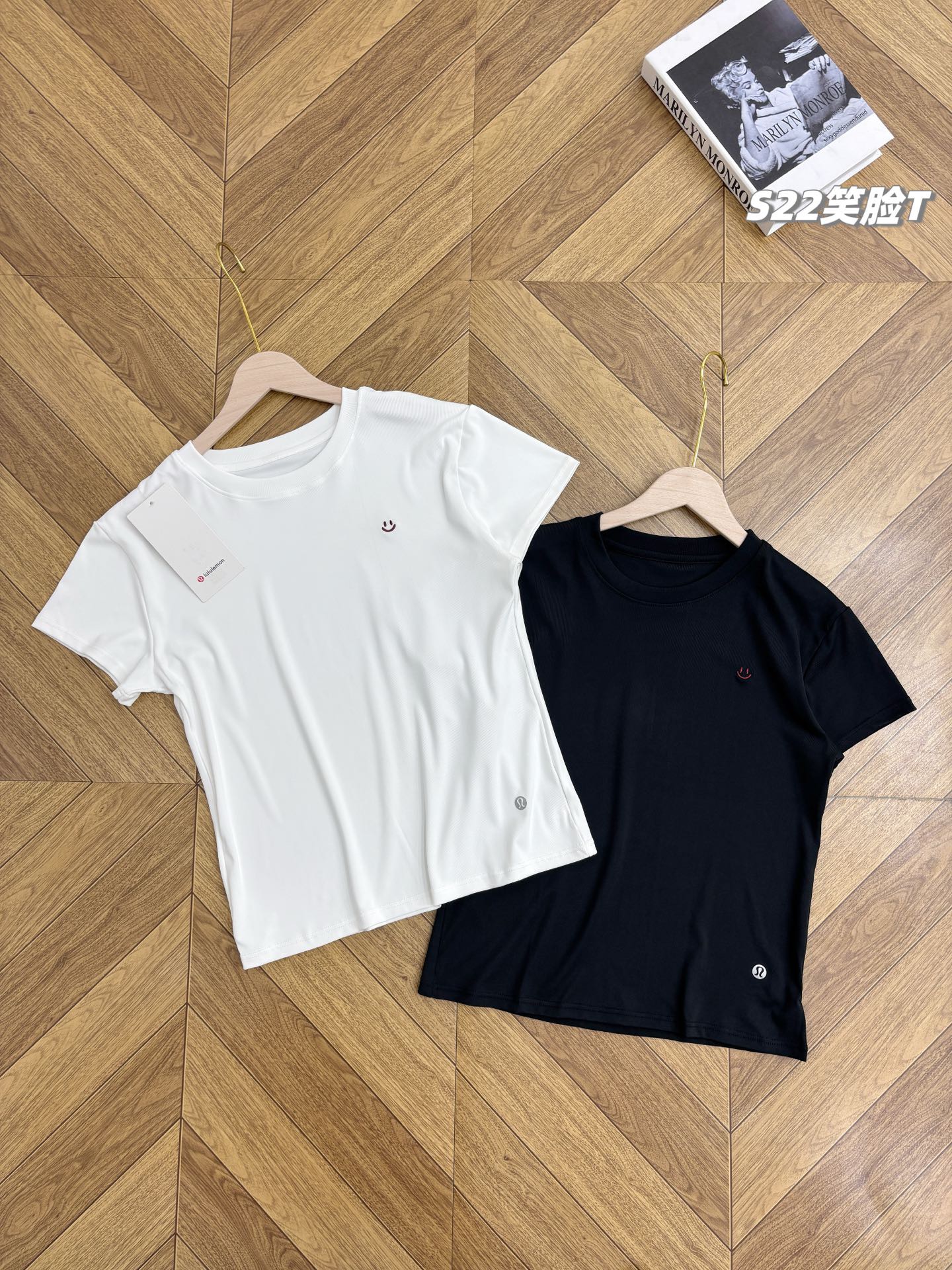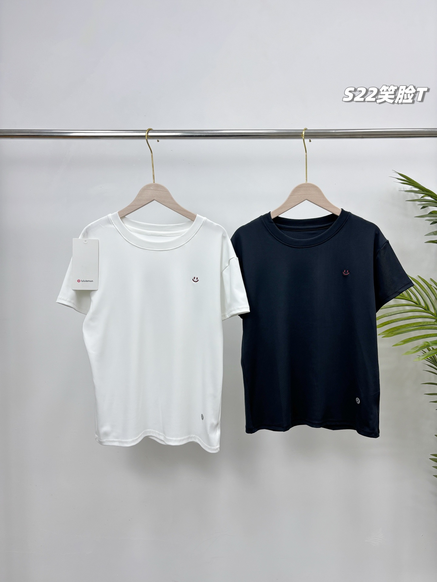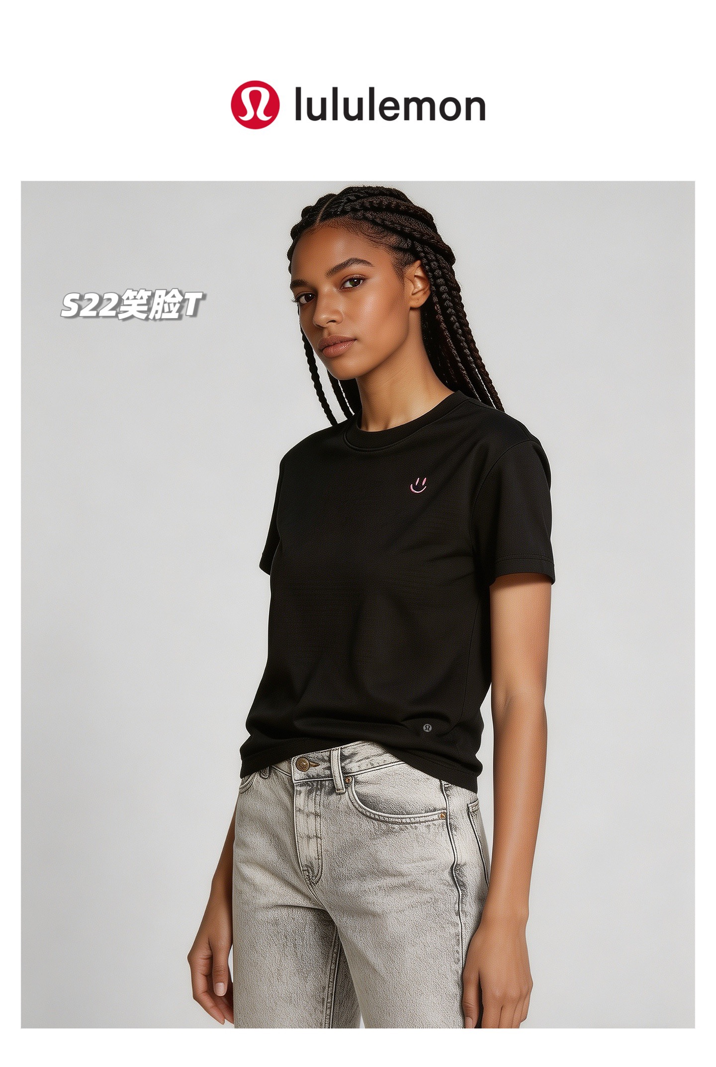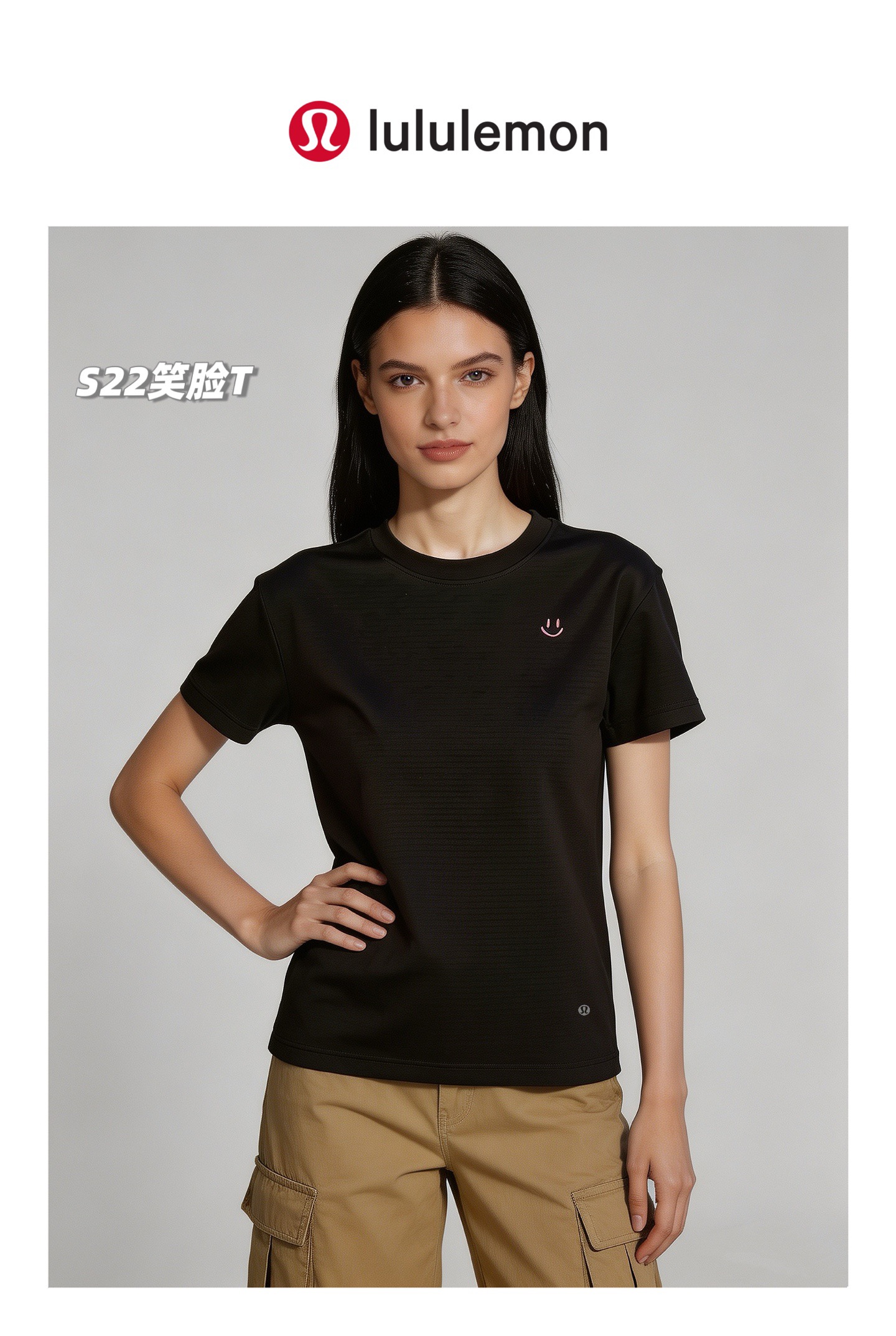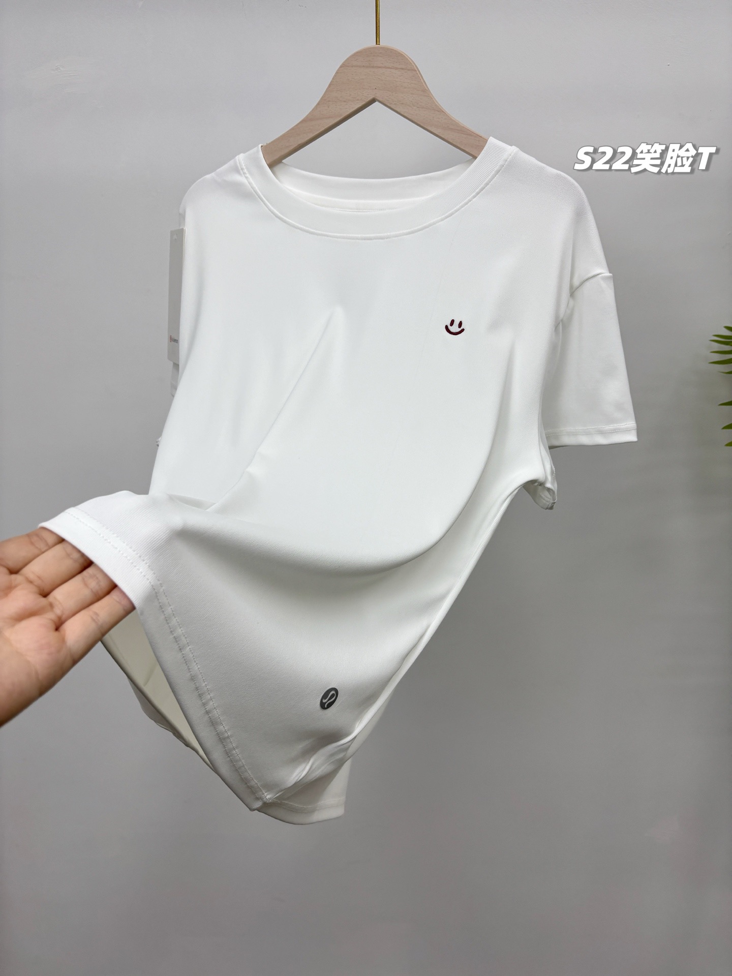 一包2件装!lulu2026新款女士笑脸正肩纯色休闲女士短袖T恤!