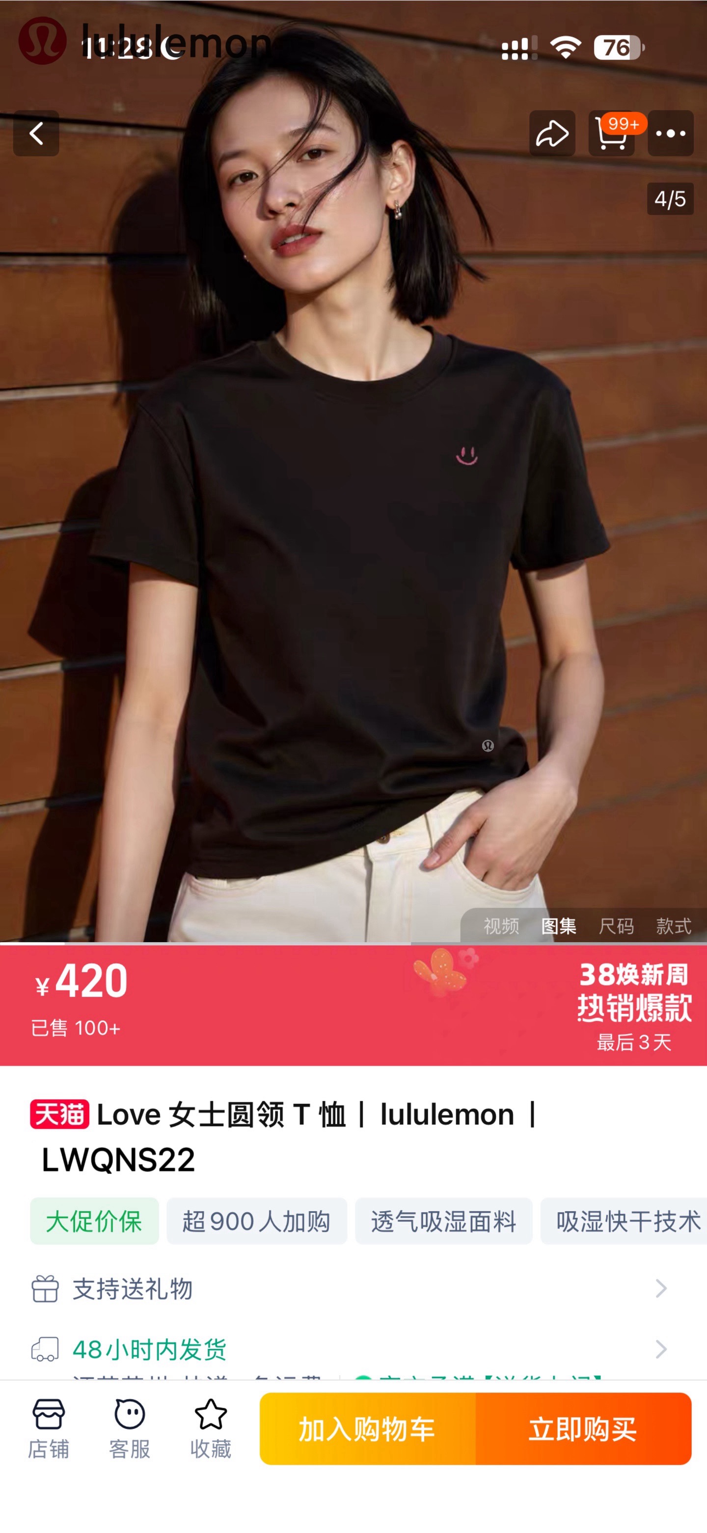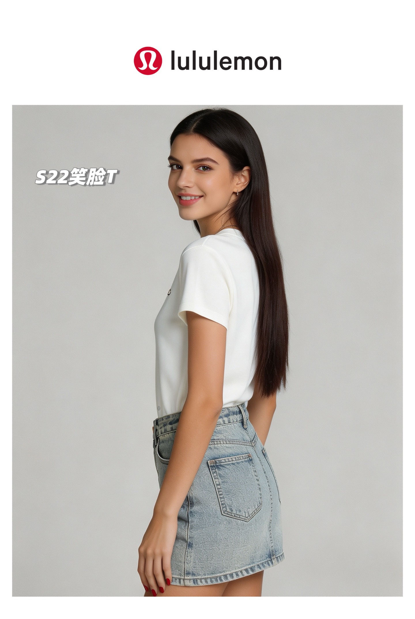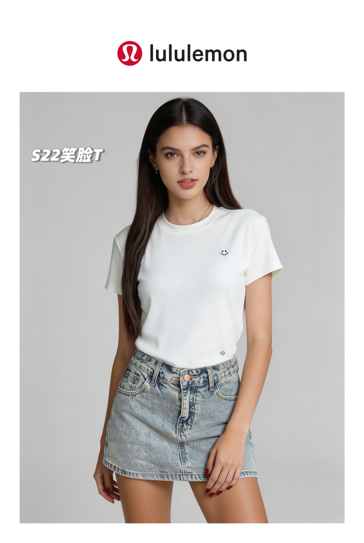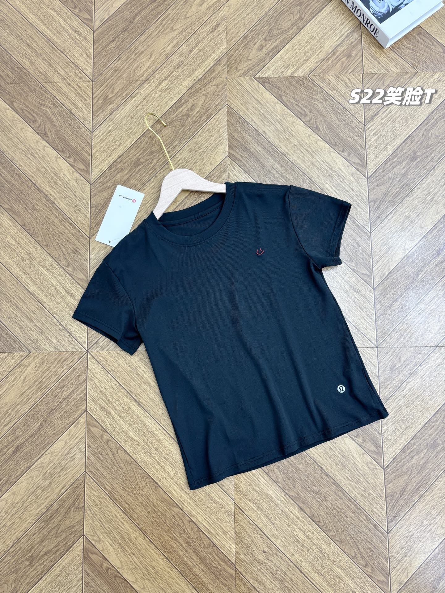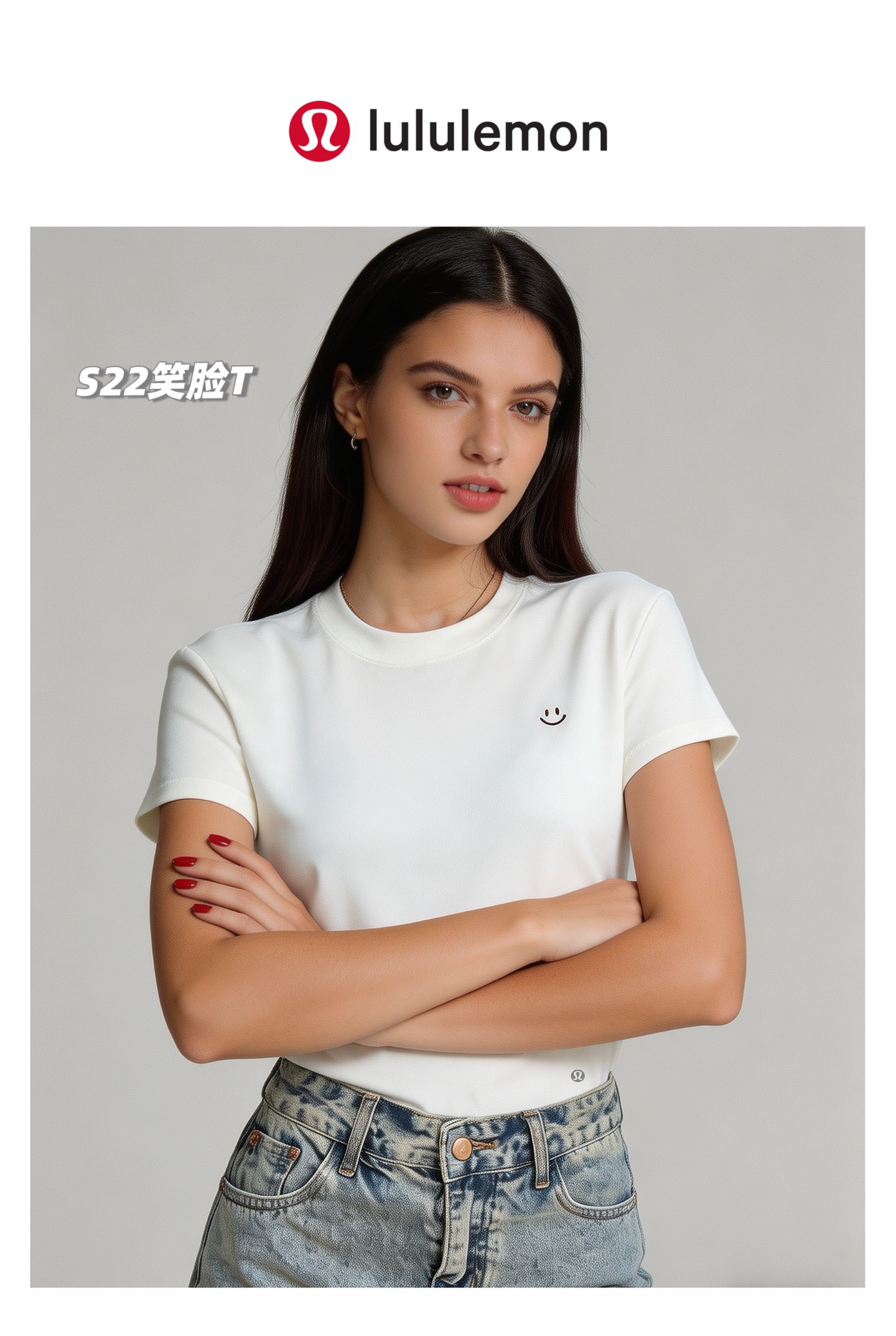 一包2件装!lulu2026新款女士笑脸正肩纯色休闲女士短袖T恤!
