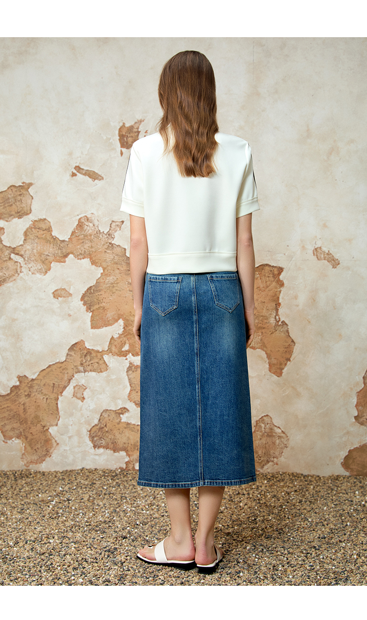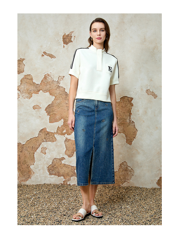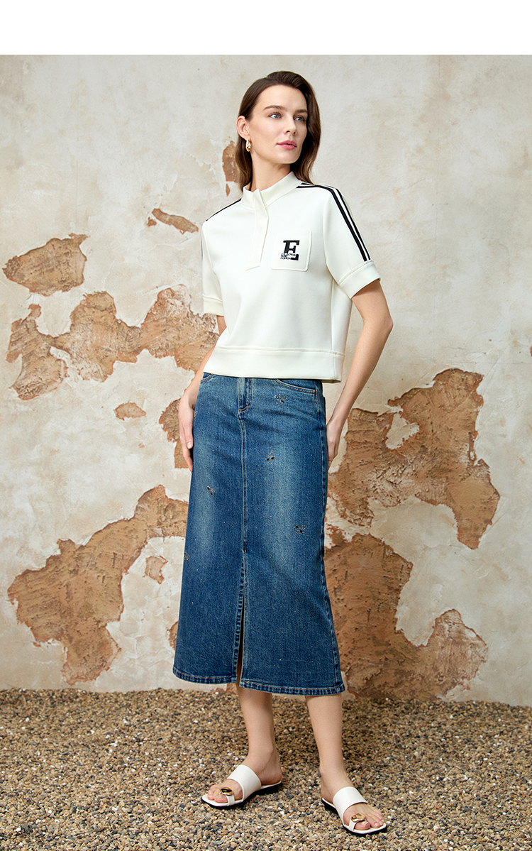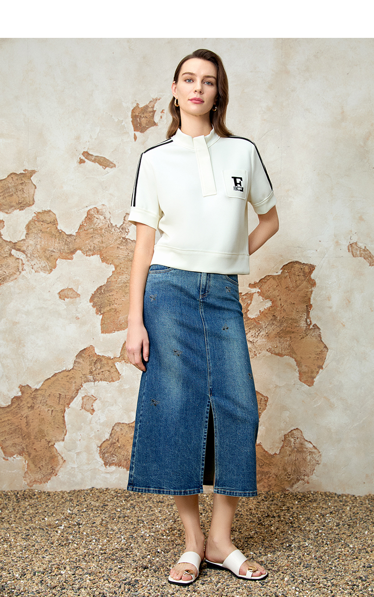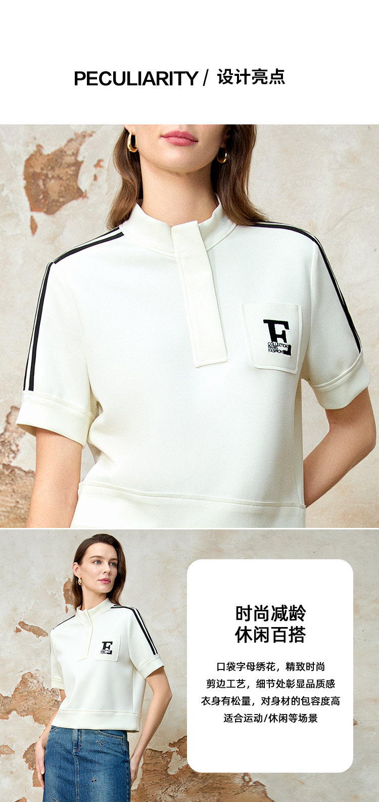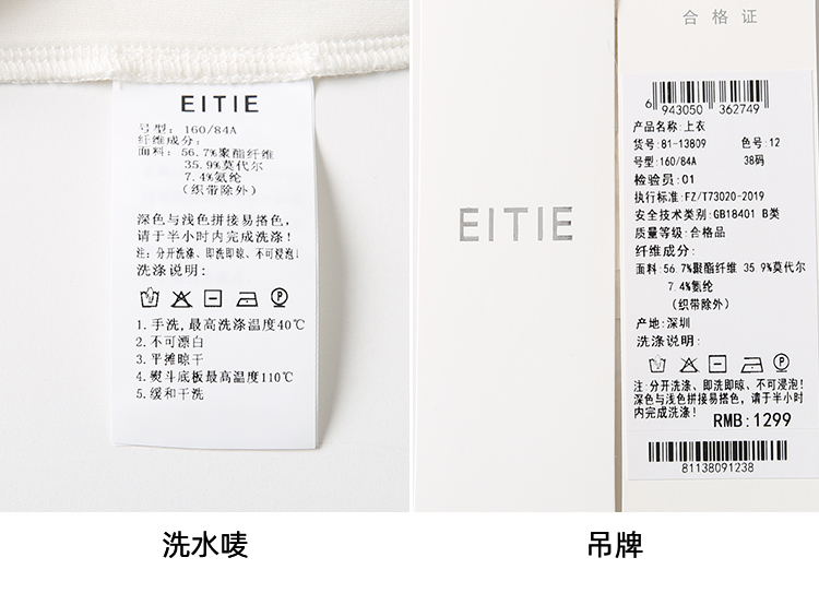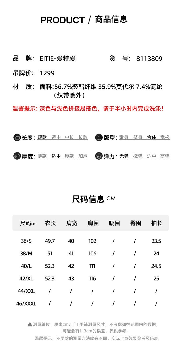 EITIE爱特爱春季新款时尚舒适简约黑白撞色百搭显瘦T恤上衣8113809