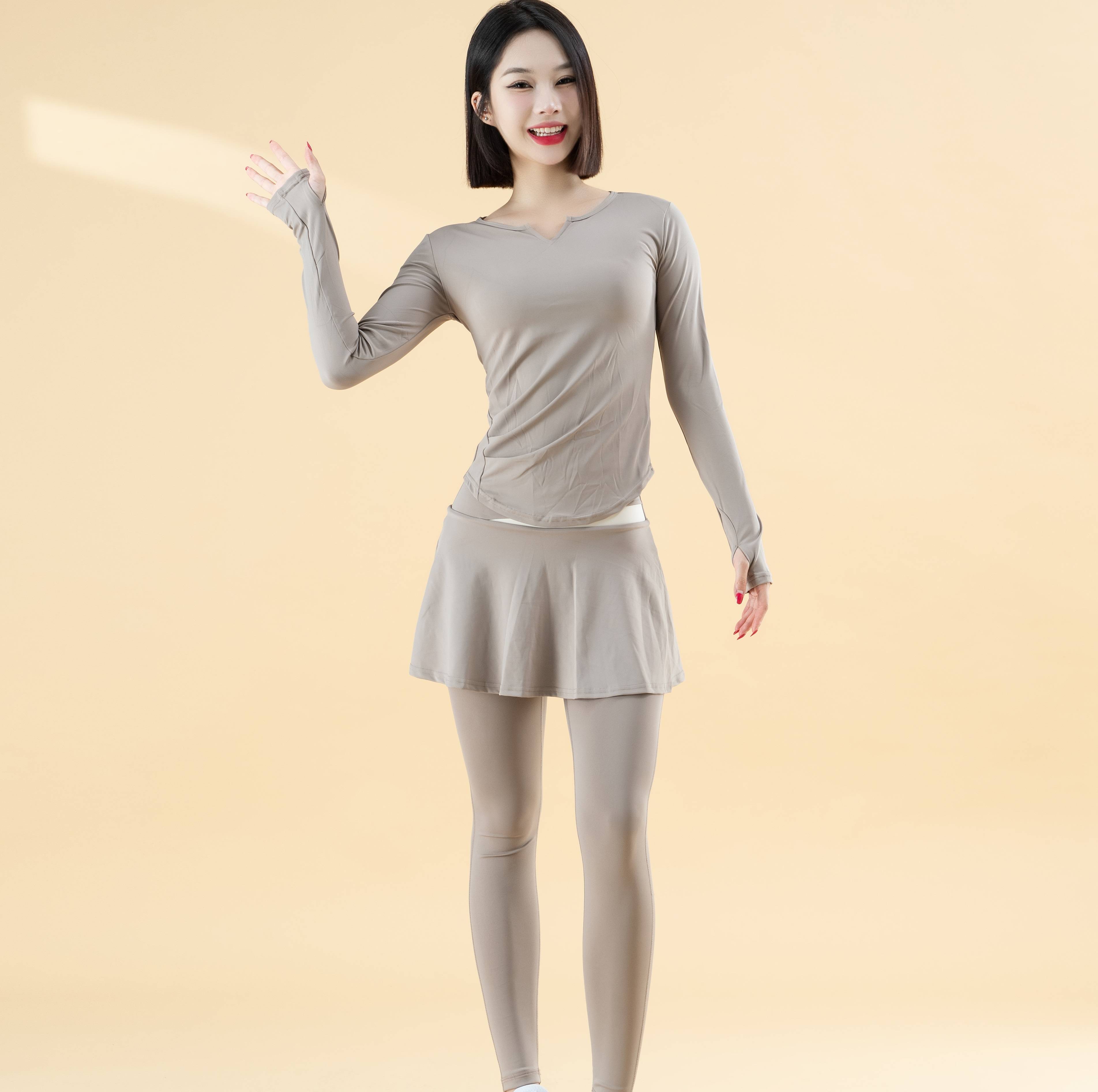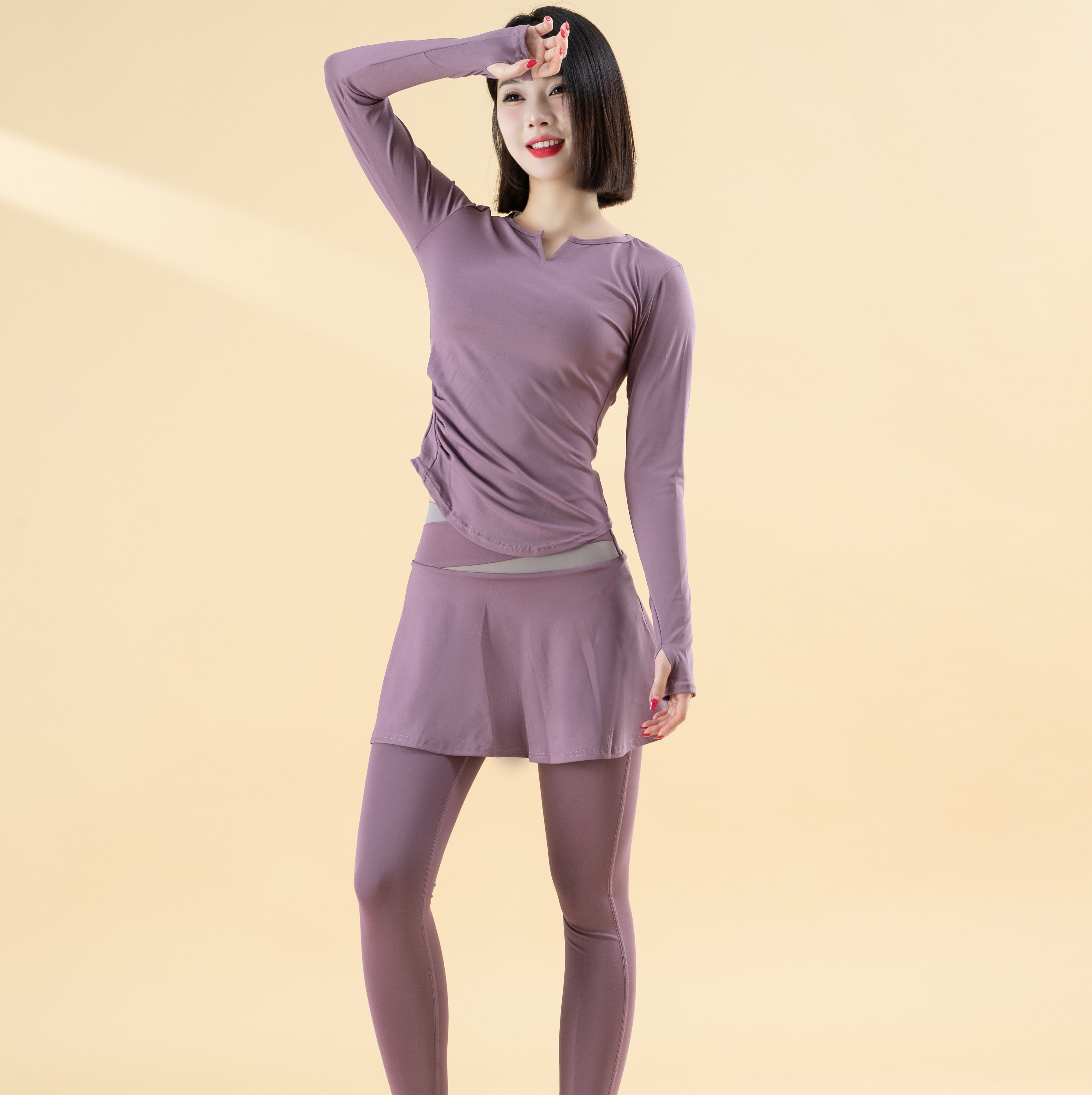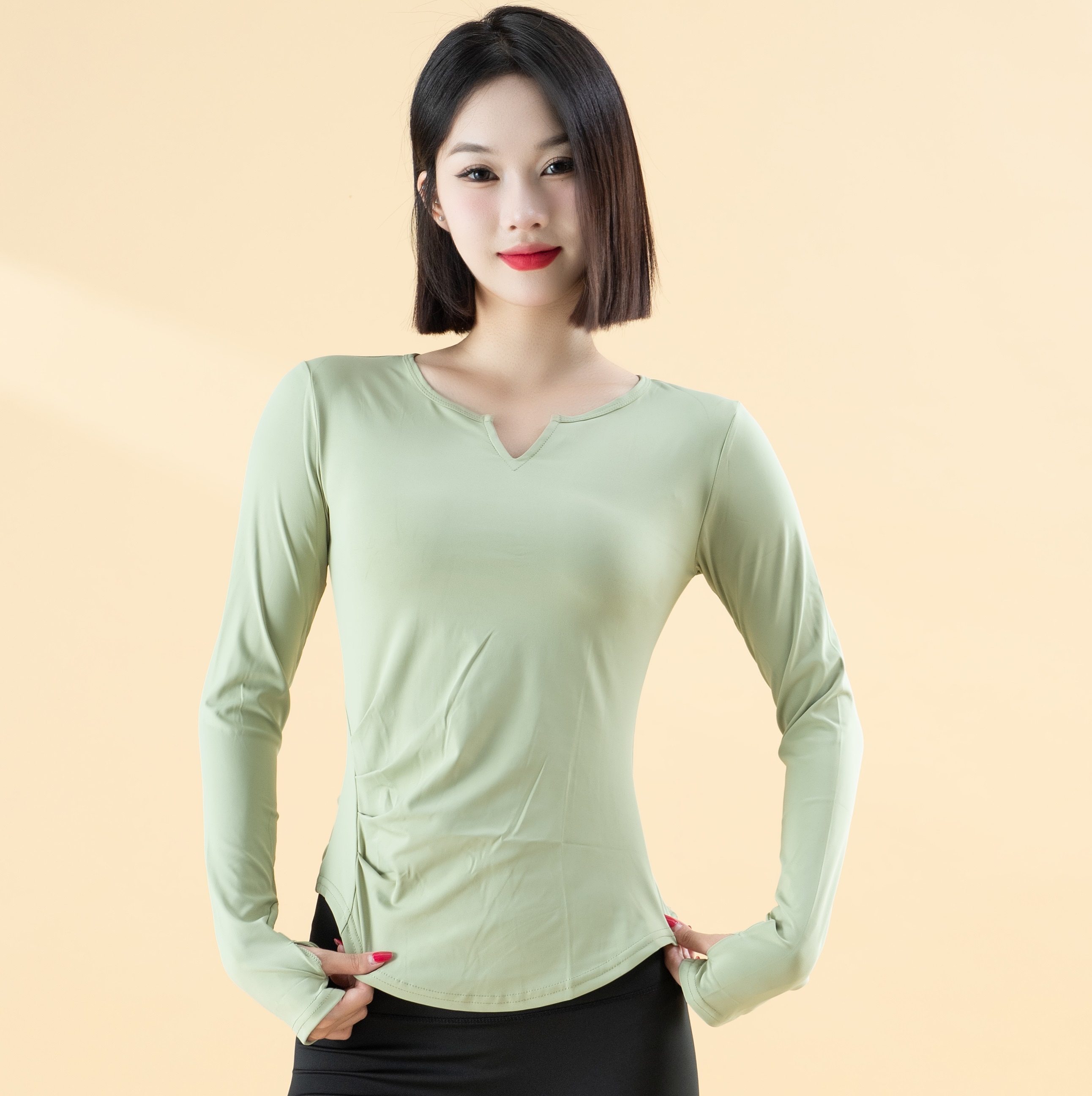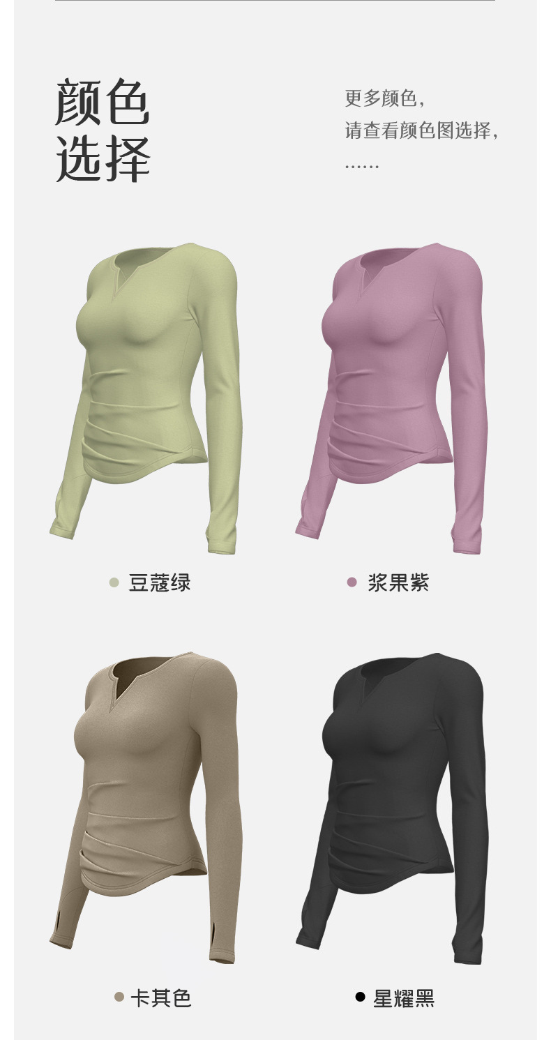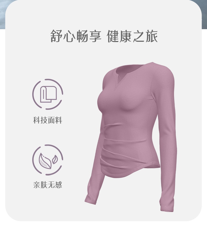 跃牌【瑜堂系列】V领长袖裸感无缝褶皱收腰显瘦紧身瑜伽服 JYMC014