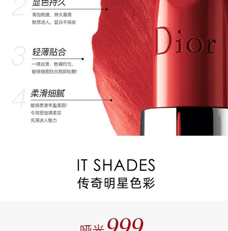Dior迪奥999# 哑光、滋润、丝绒口红 888#哑光 720#丝绒 变色唇膏001# 004#集合【保税直发】