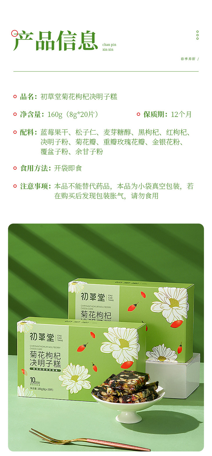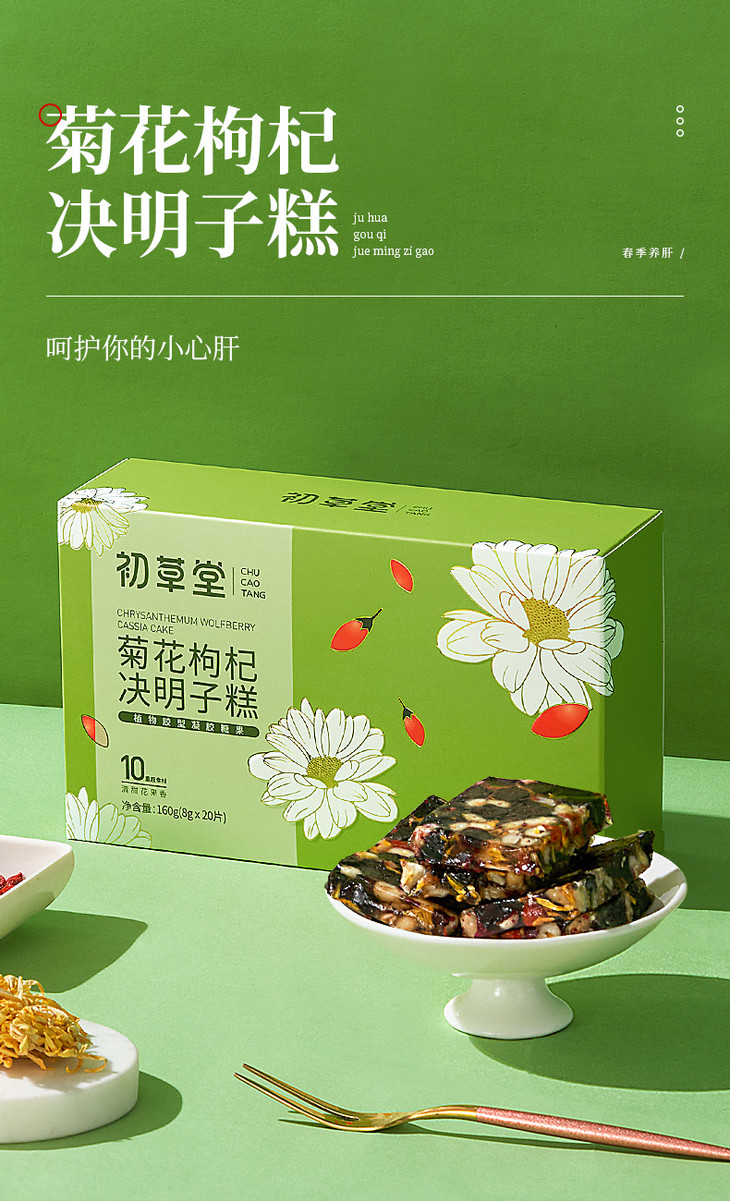【买2送1买3送2】初草堂菊花枸杞决明子糕10味草本药食同源养护你的小心肝160g/盒
