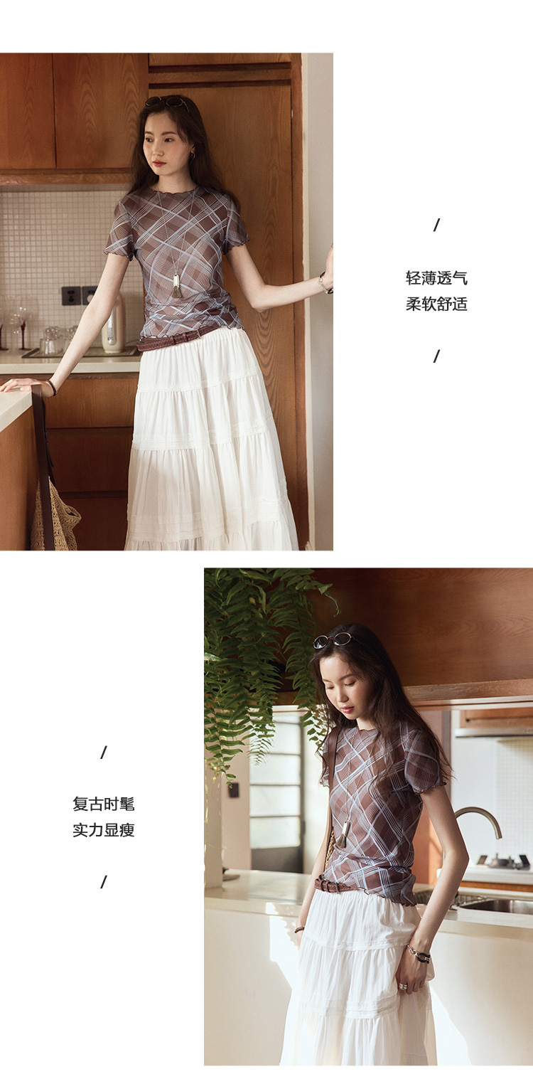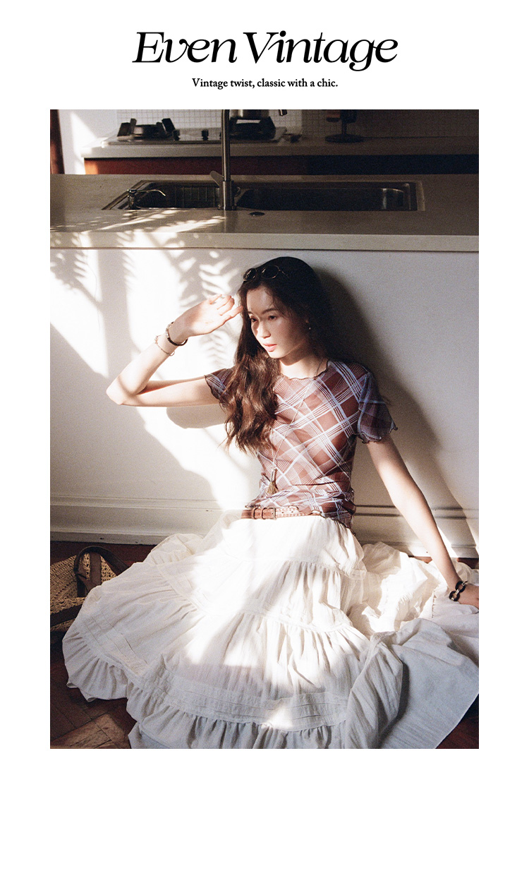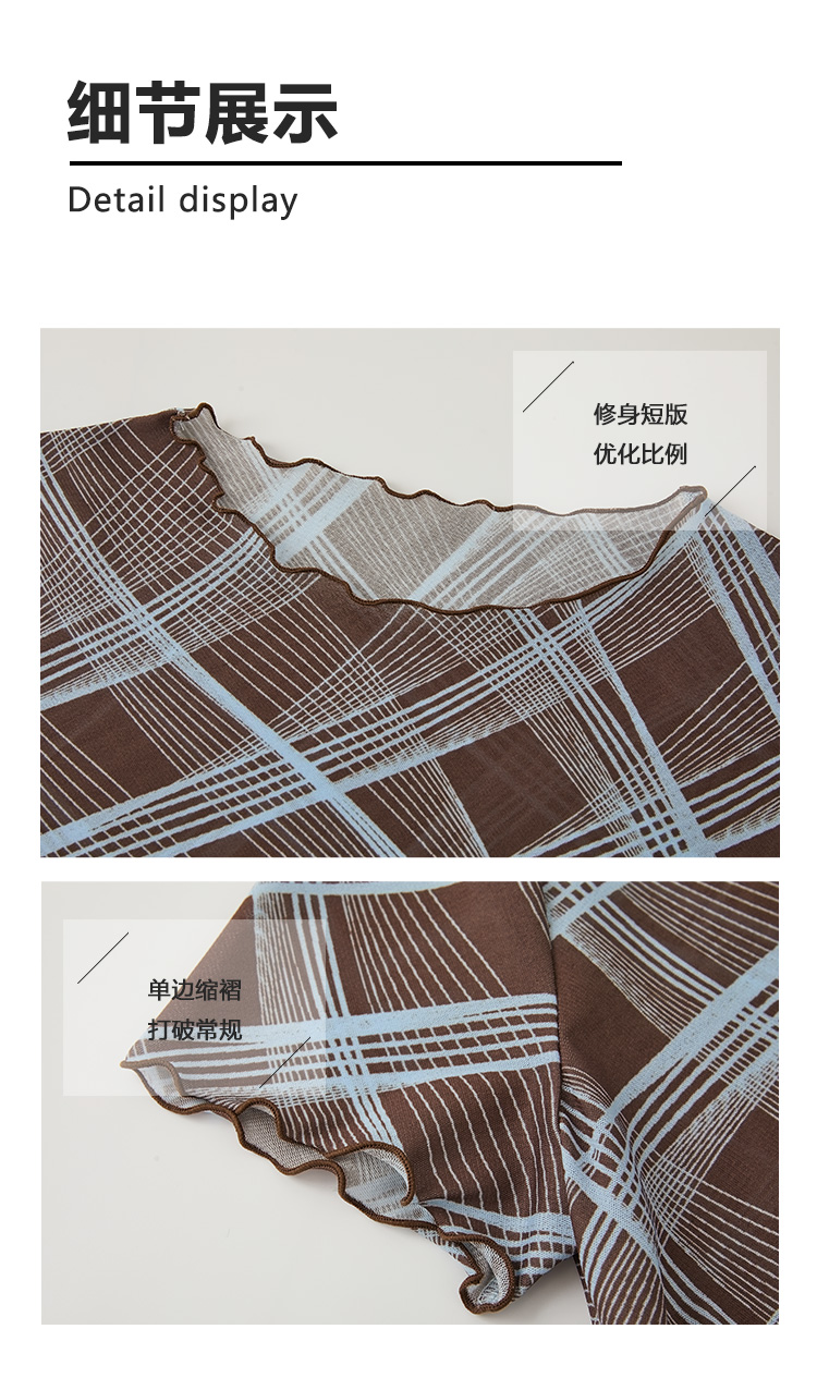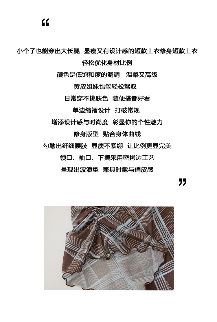 Even Vintage | 复古格纹 缩褶优雅时髦密拷边修身短款上衣女夏秋