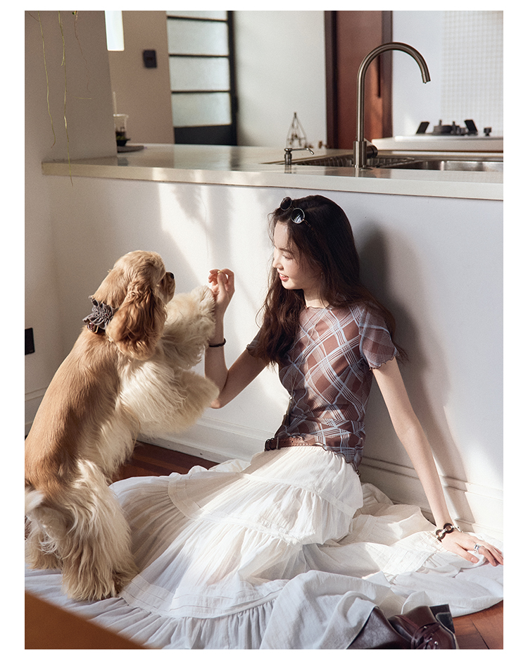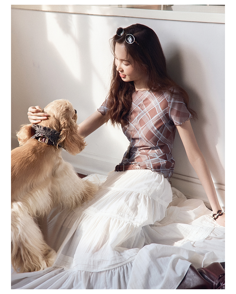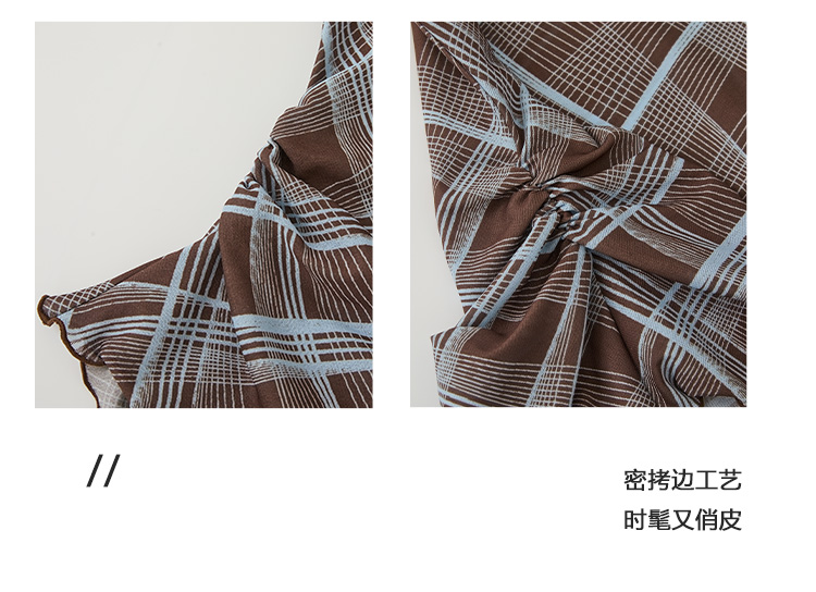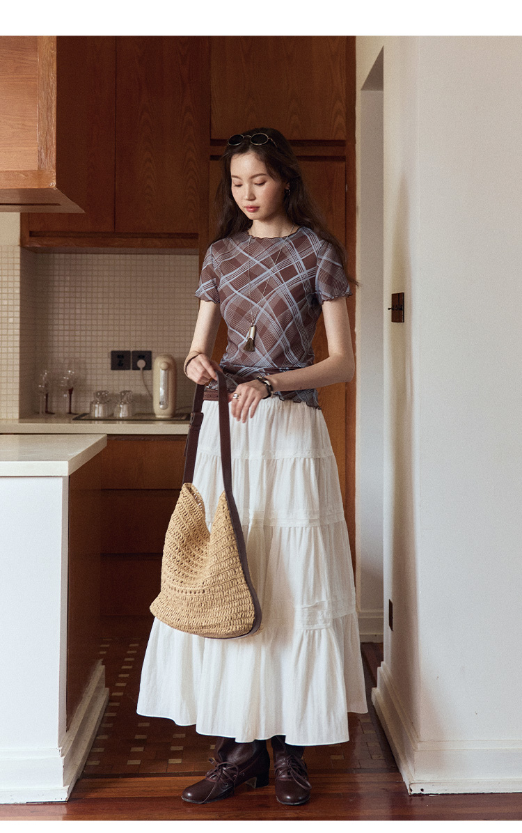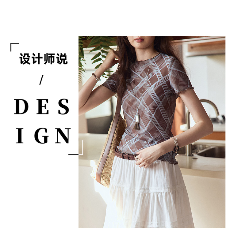 Even Vintage | 复古格纹 缩褶优雅时髦密拷边修身短款上衣女夏秋