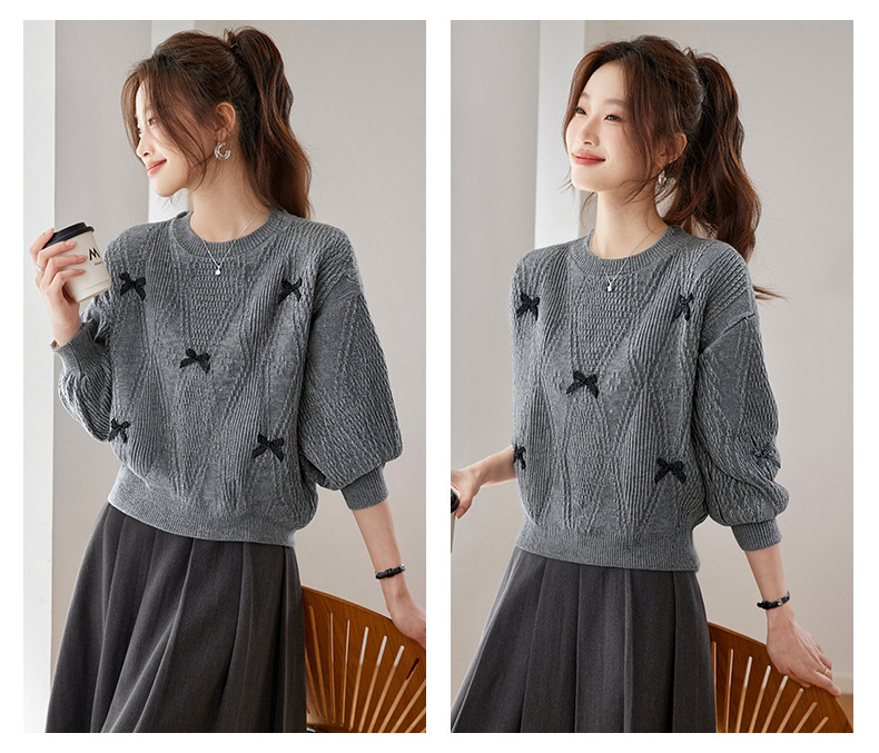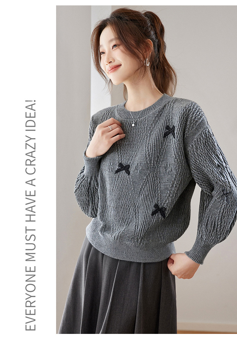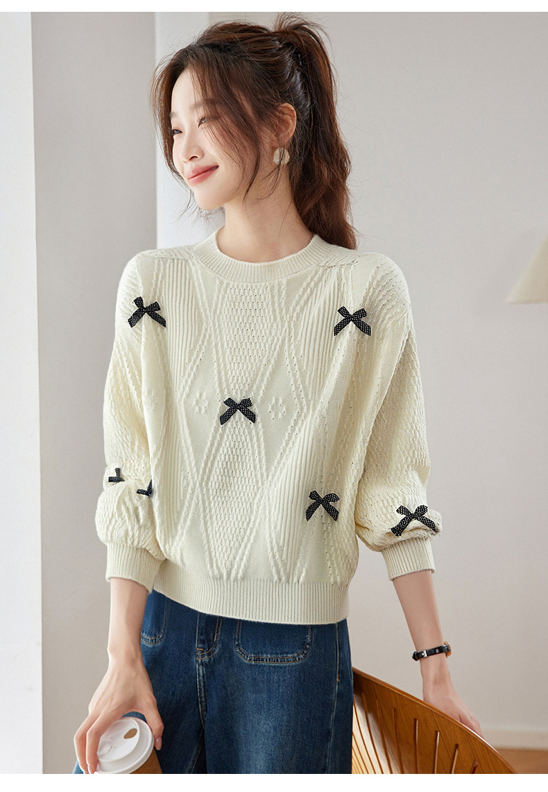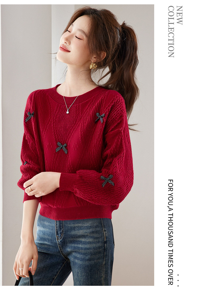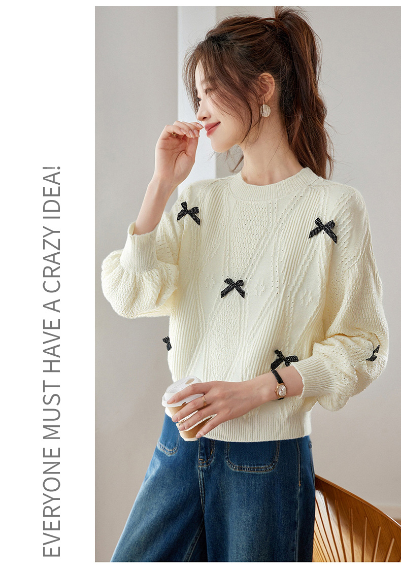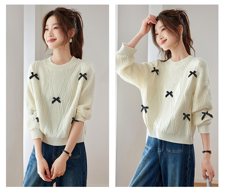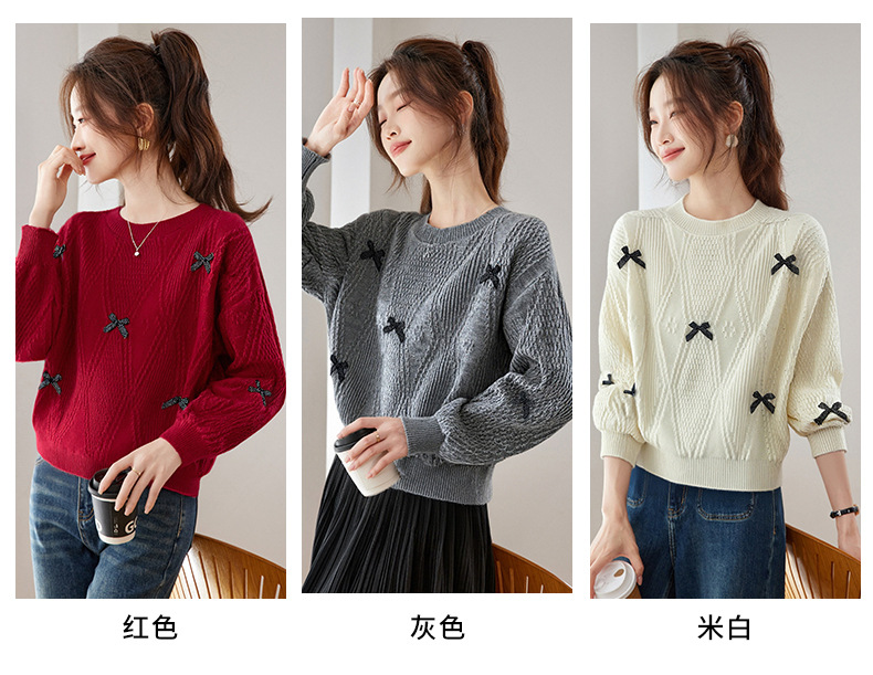 CC蝴蝶结圆领毛衣女内搭秋冬好看小个子软糯高级感打底针织衫上衣女
