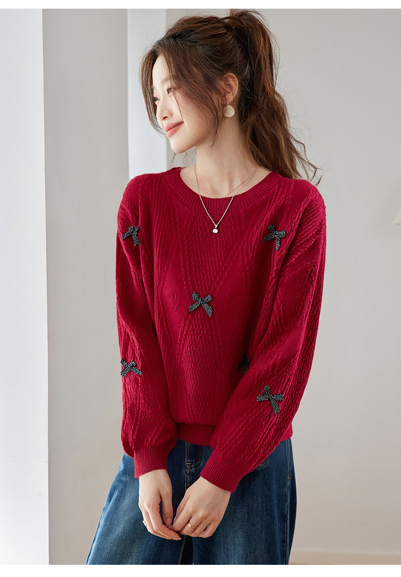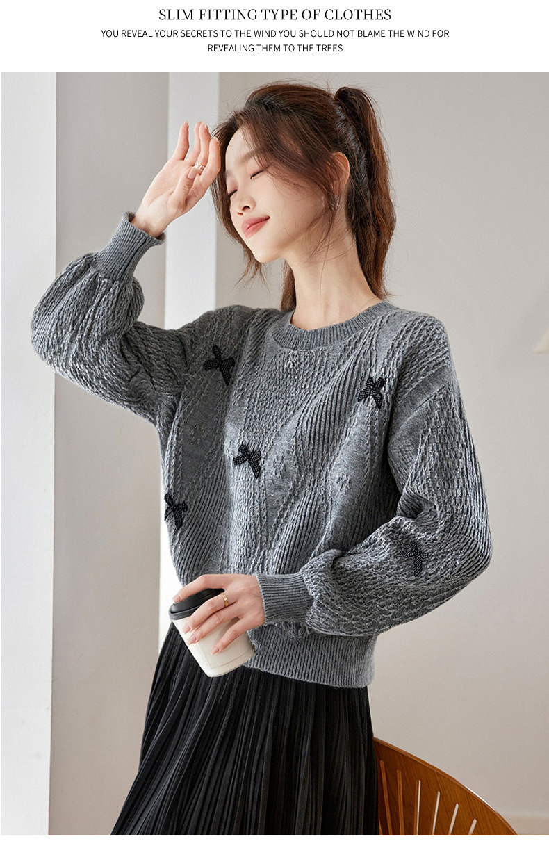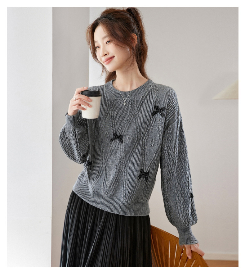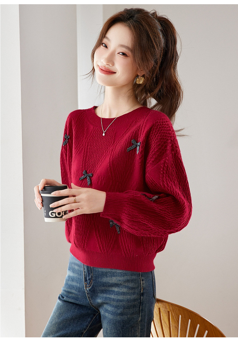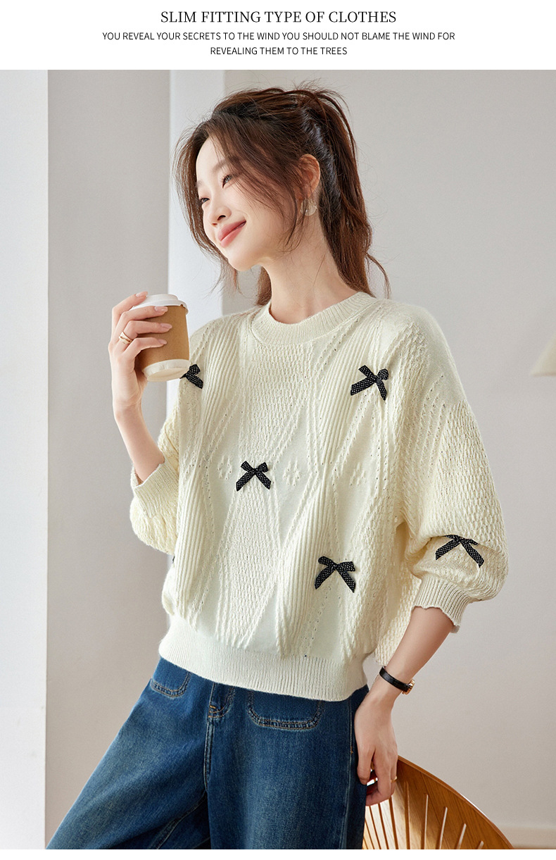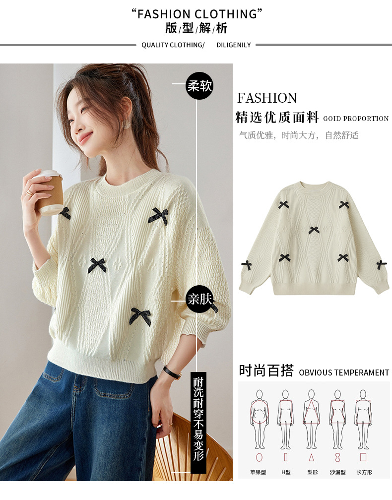 CC蝴蝶结圆领毛衣女内搭秋冬好看小个子软糯高级感打底针织衫上衣女