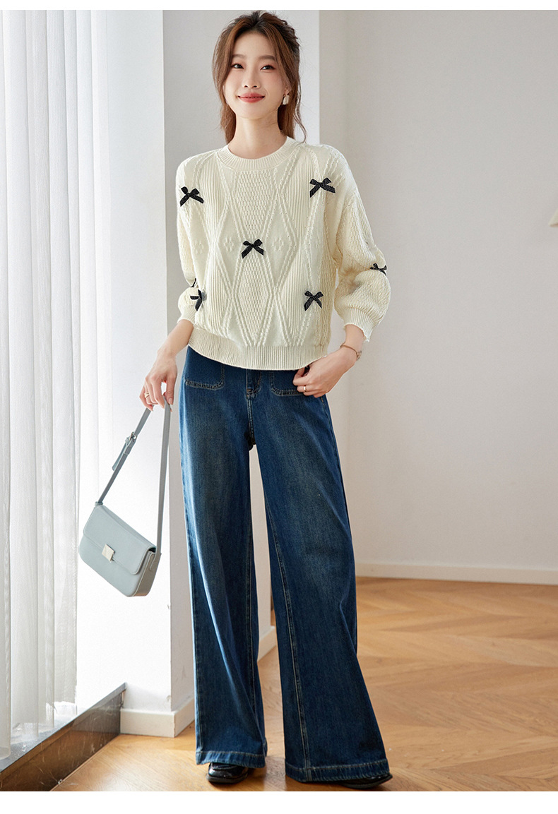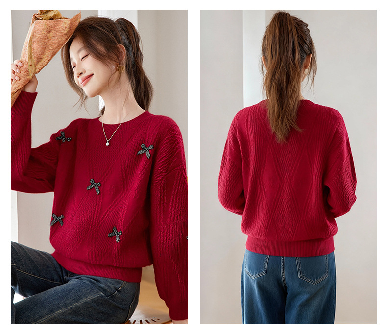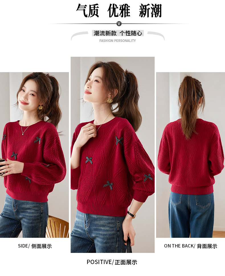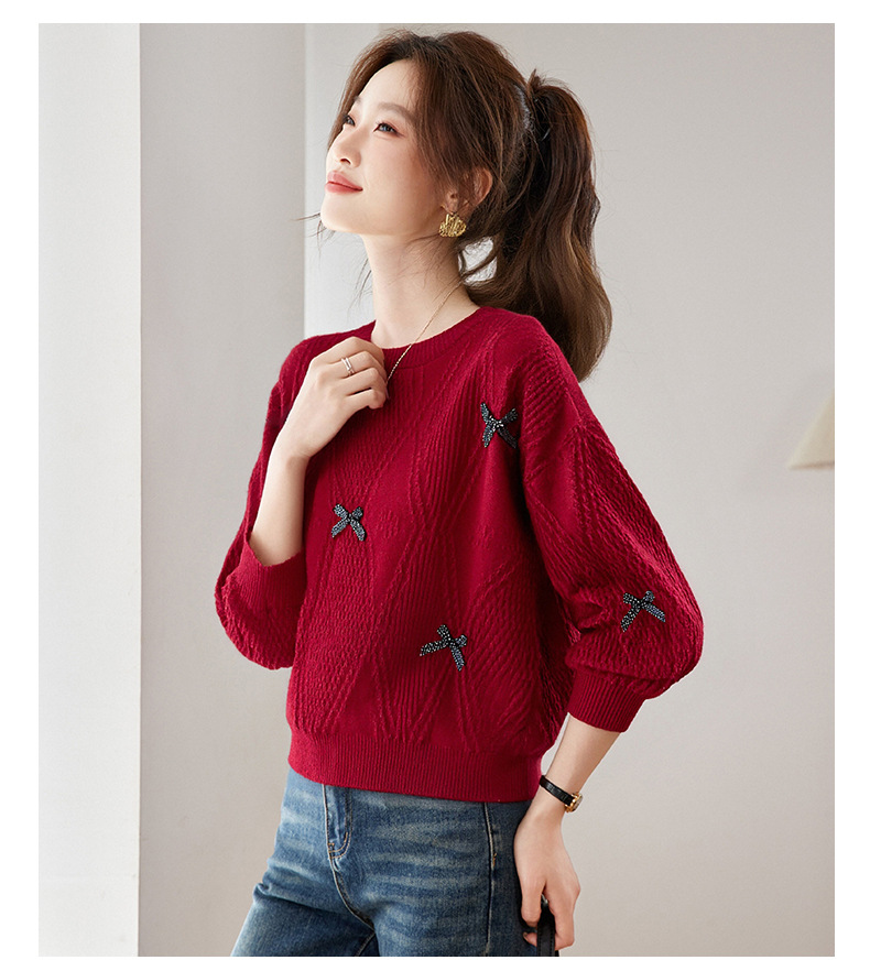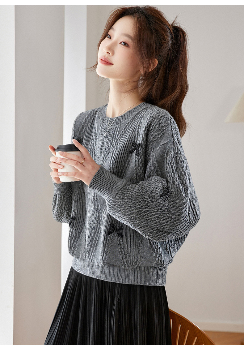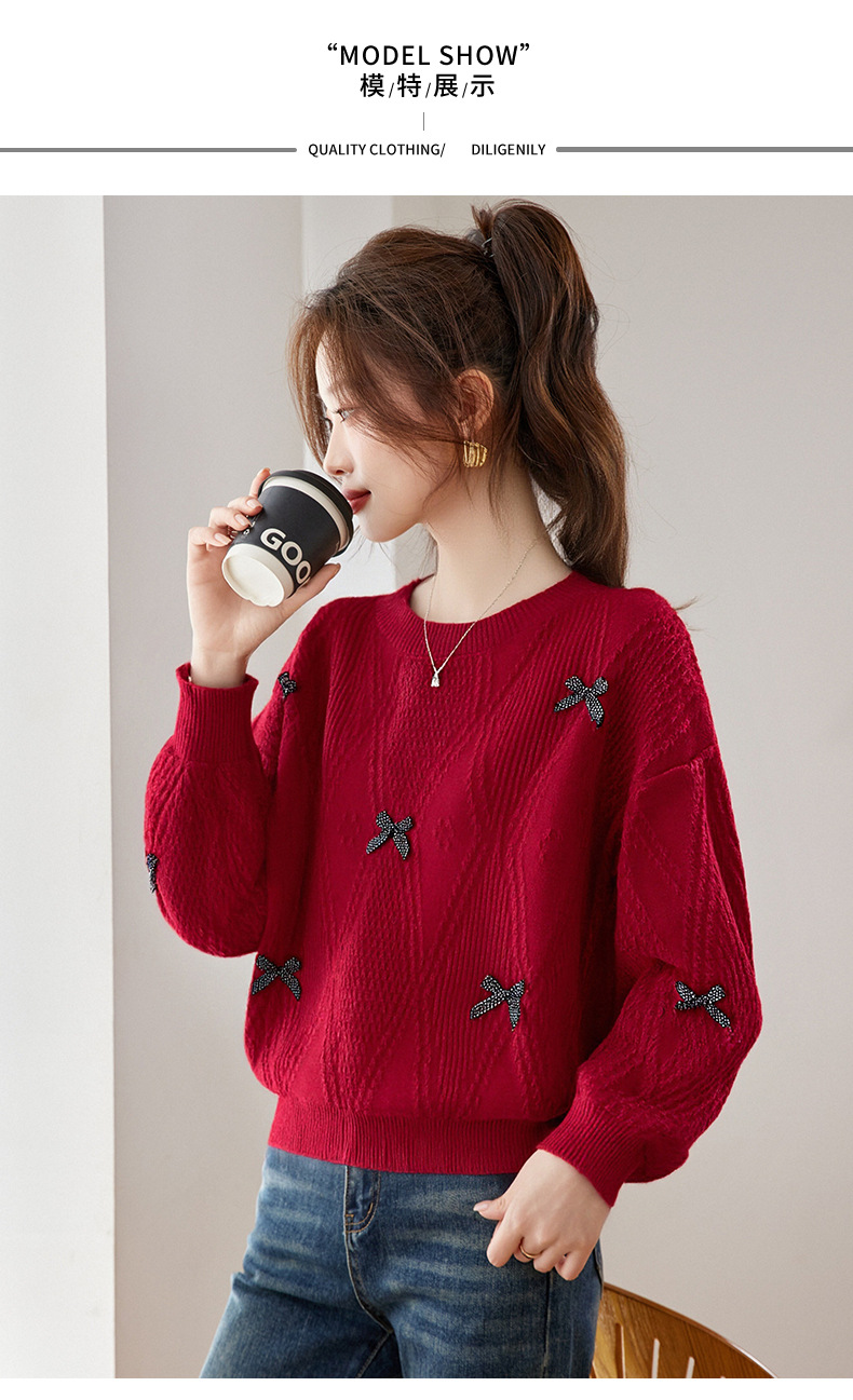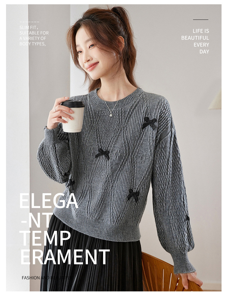 CC蝴蝶结圆领毛衣女内搭秋冬好看小个子软糯高级感打底针织衫上衣女