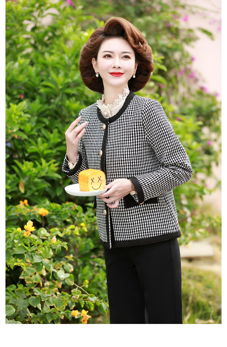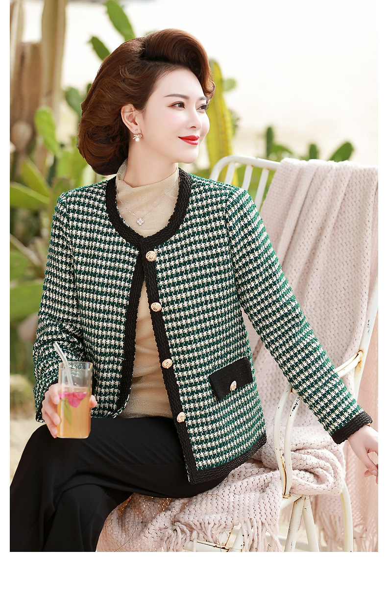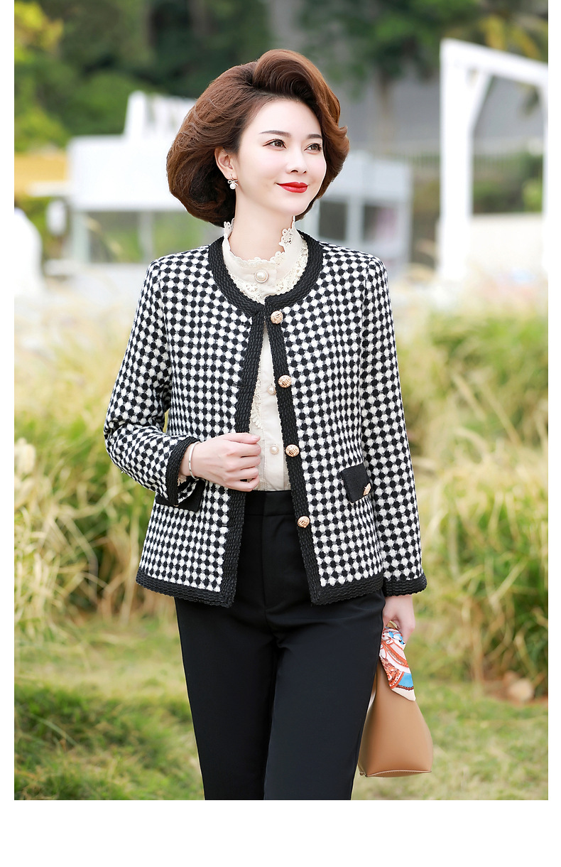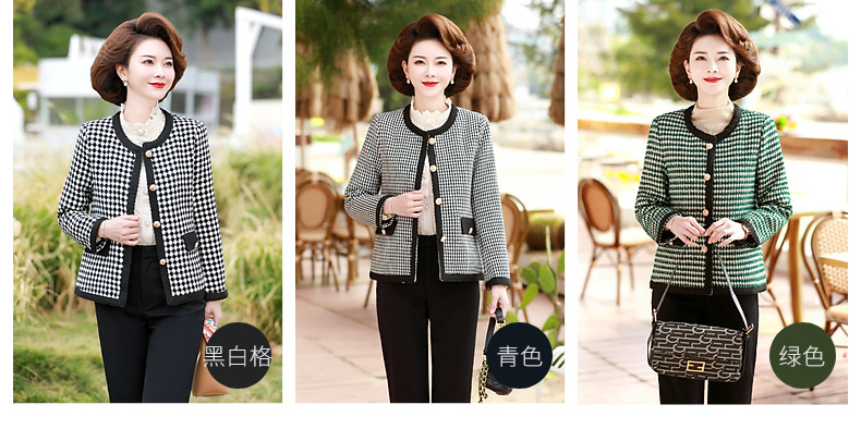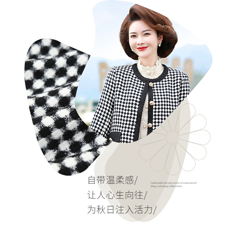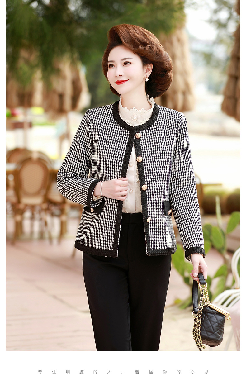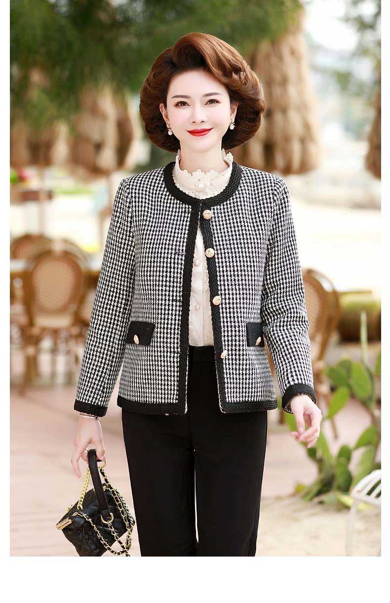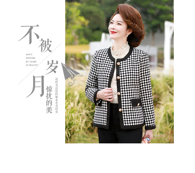 CX-妈妈气质千鸟格短款外套中年女春装薄款西装中老年春秋小香风上衣