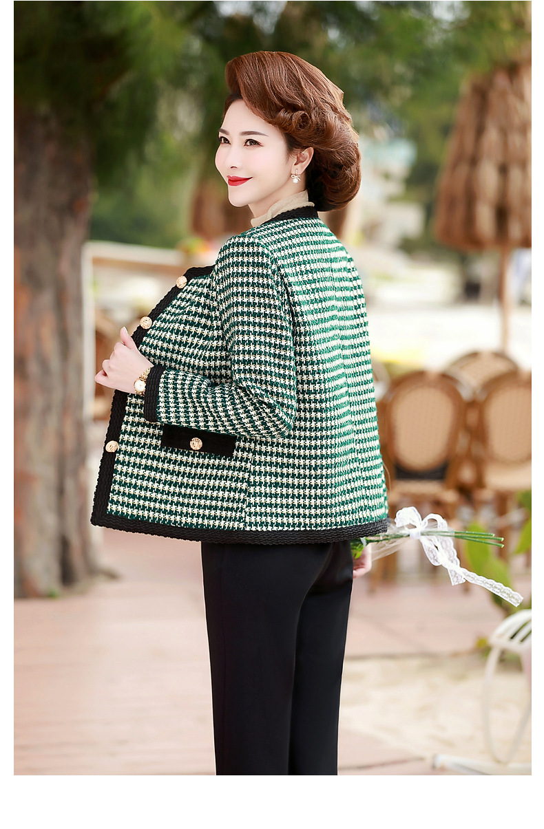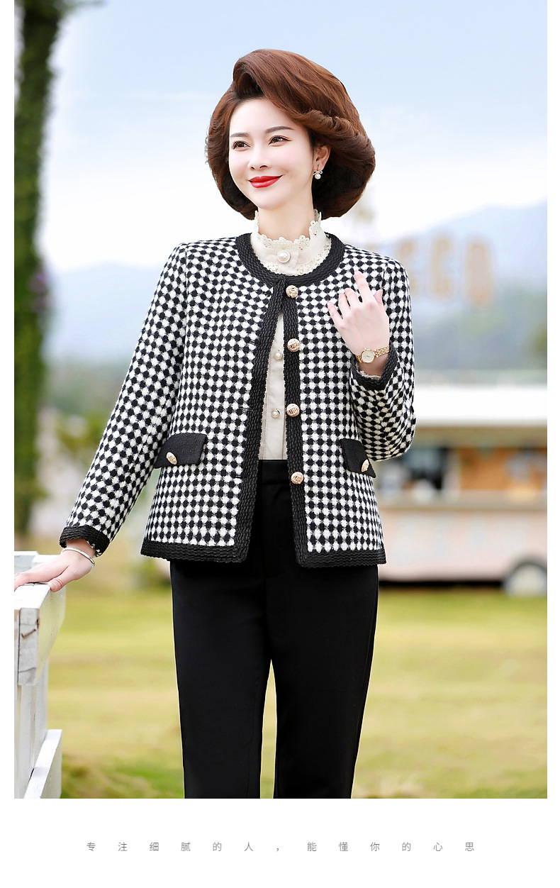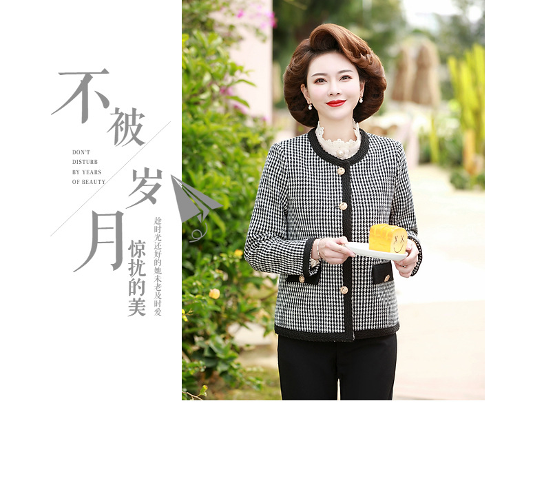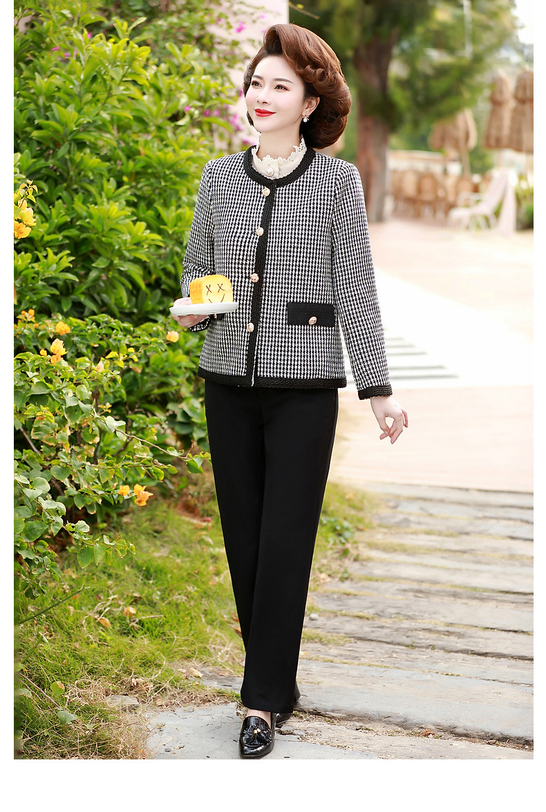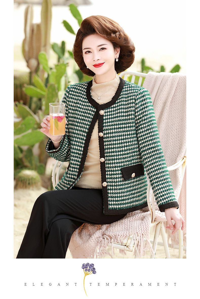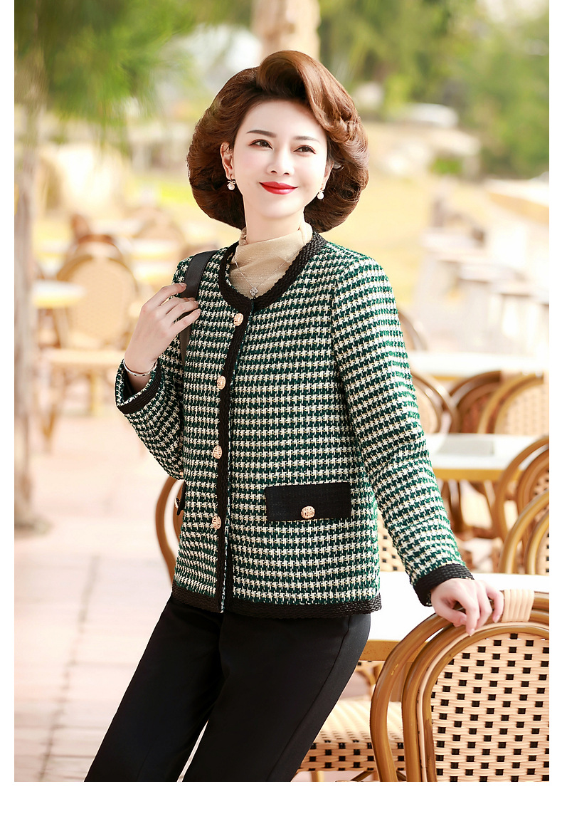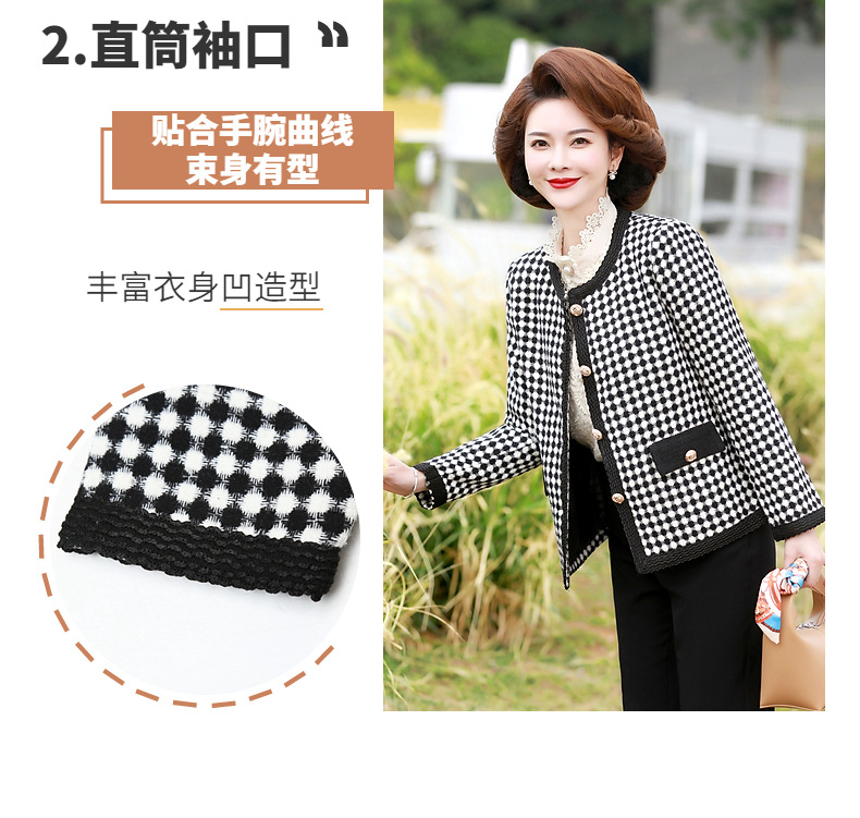 CX-妈妈气质千鸟格短款外套中年女春装薄款西装中老年春秋小香风上衣