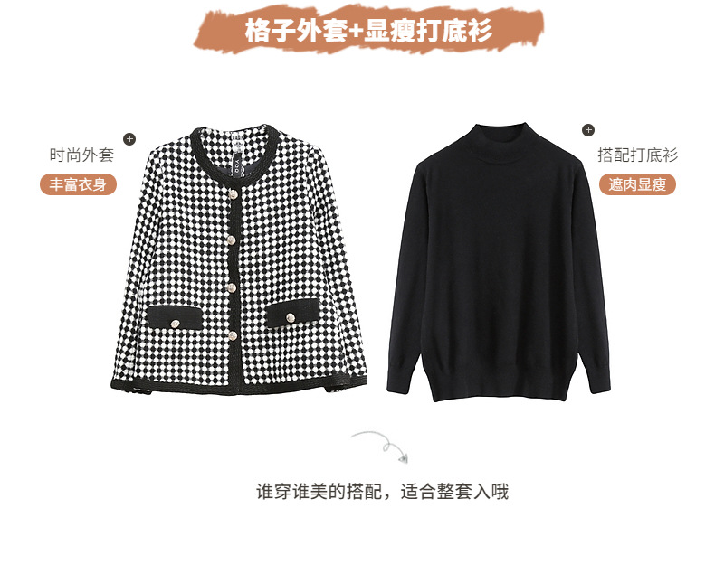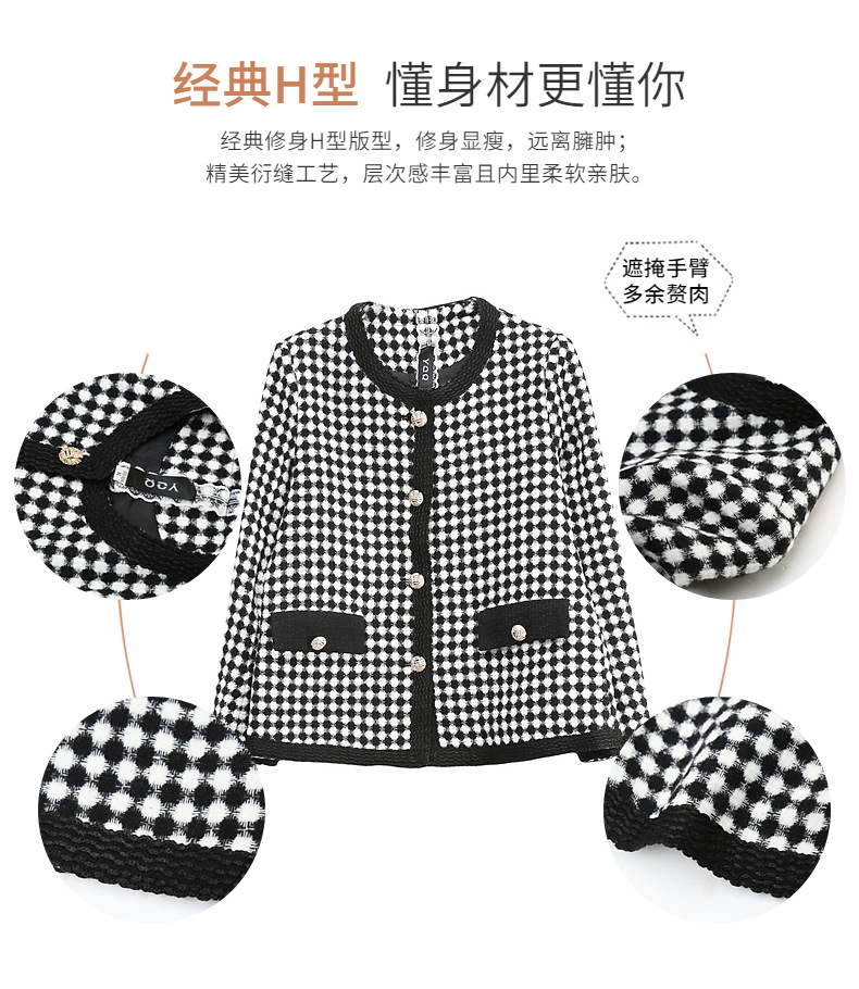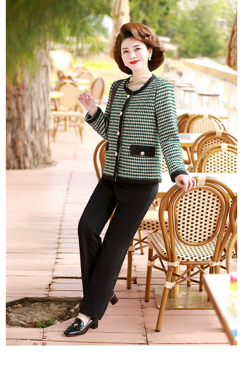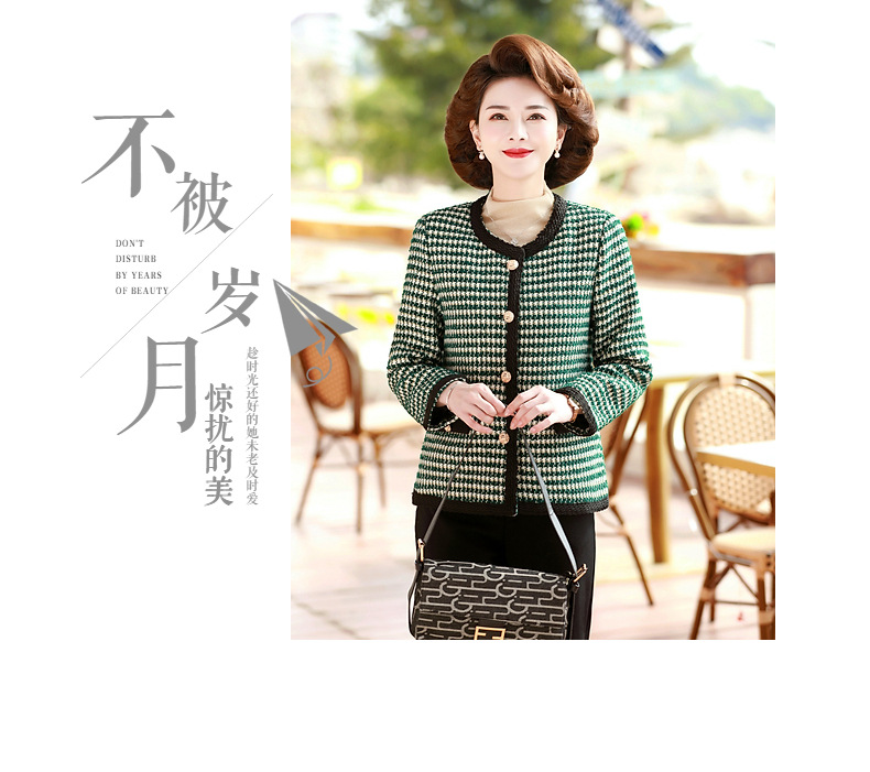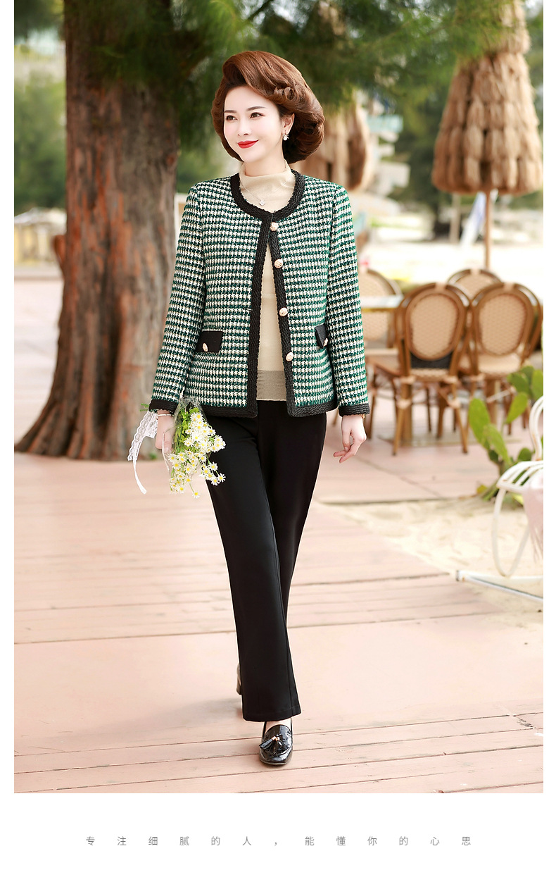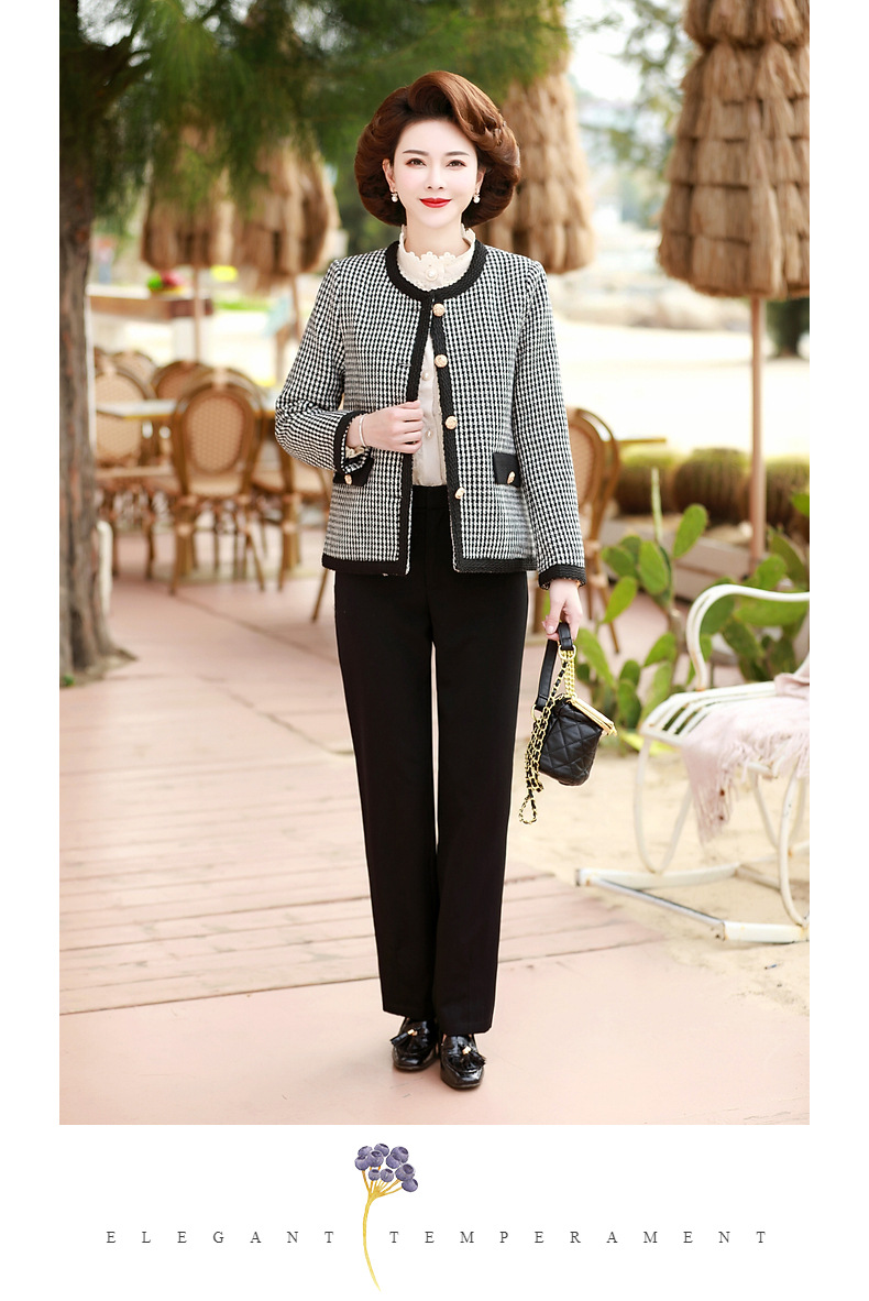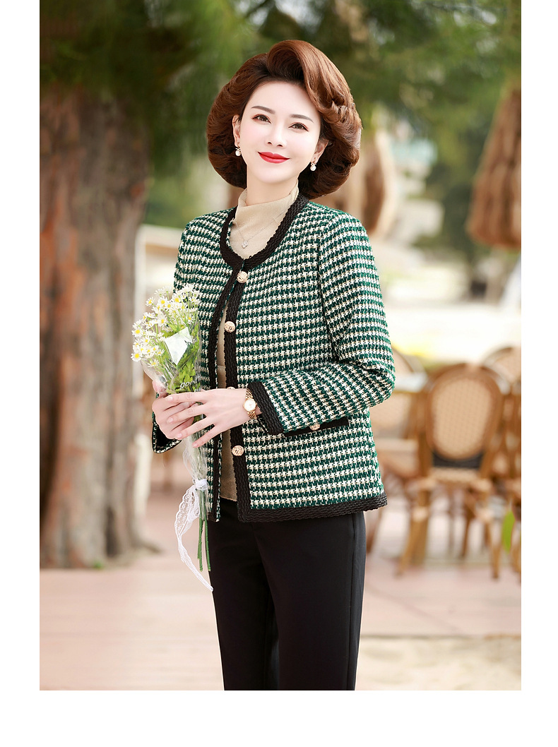 CX-妈妈气质千鸟格短款外套中年女春装薄款西装中老年春秋小香风上衣