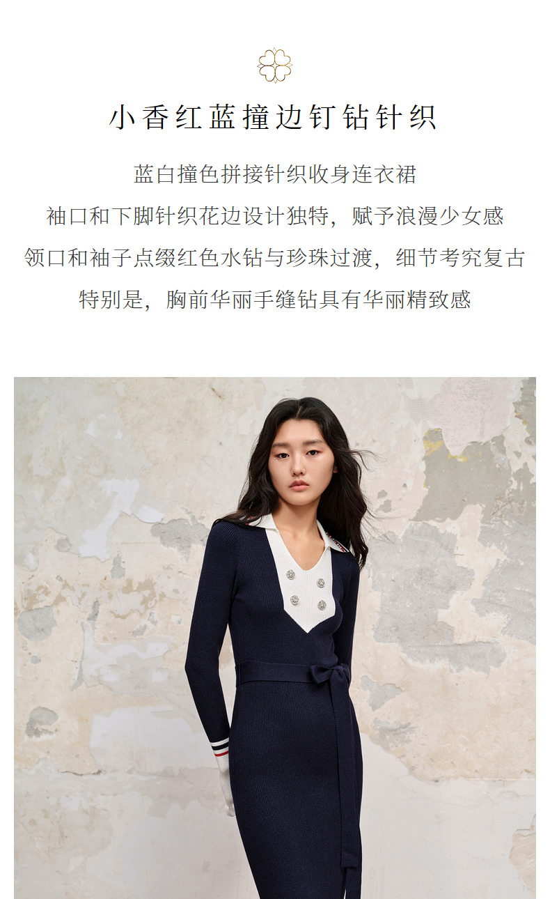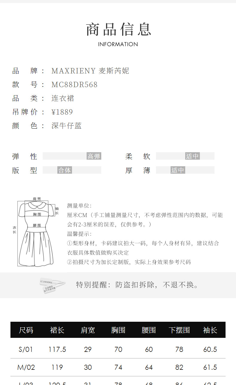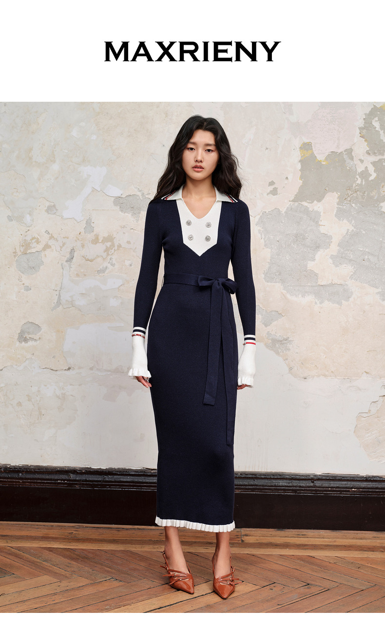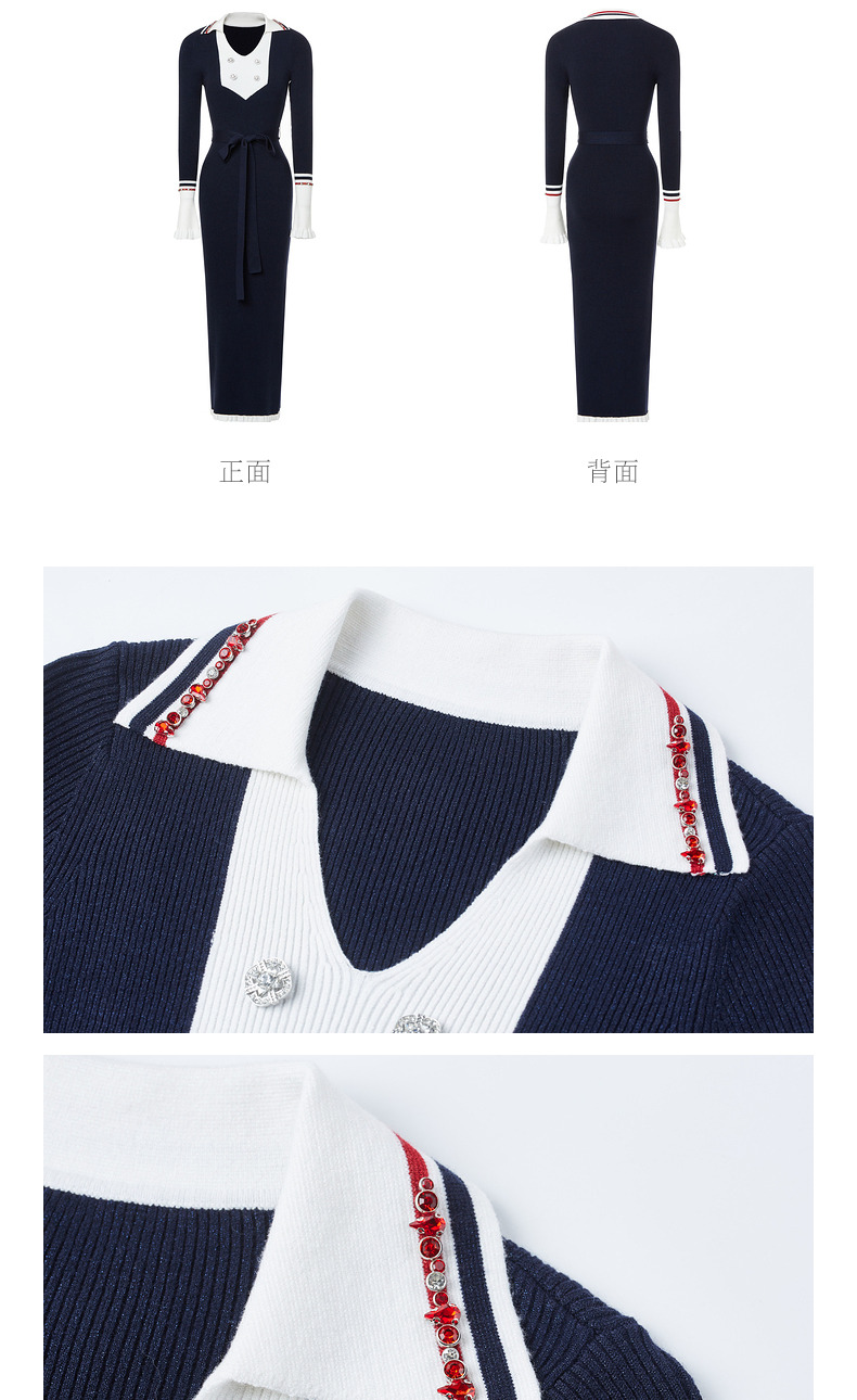 MAXRIENY*华丽复古感红蓝撞边钉钻连衣裙裙子(货号:MC88DR568)