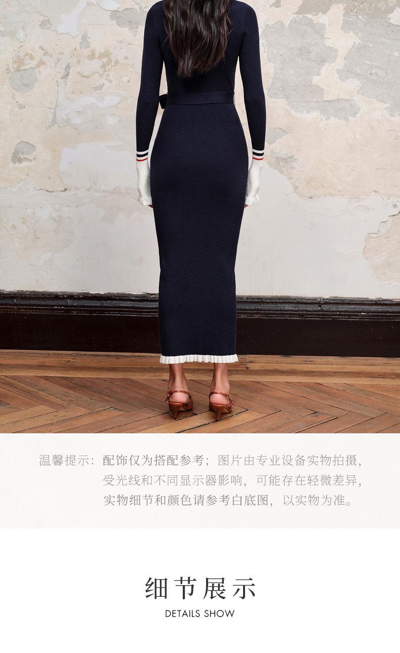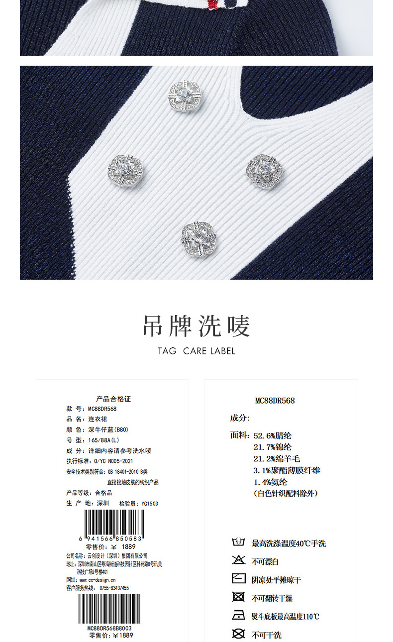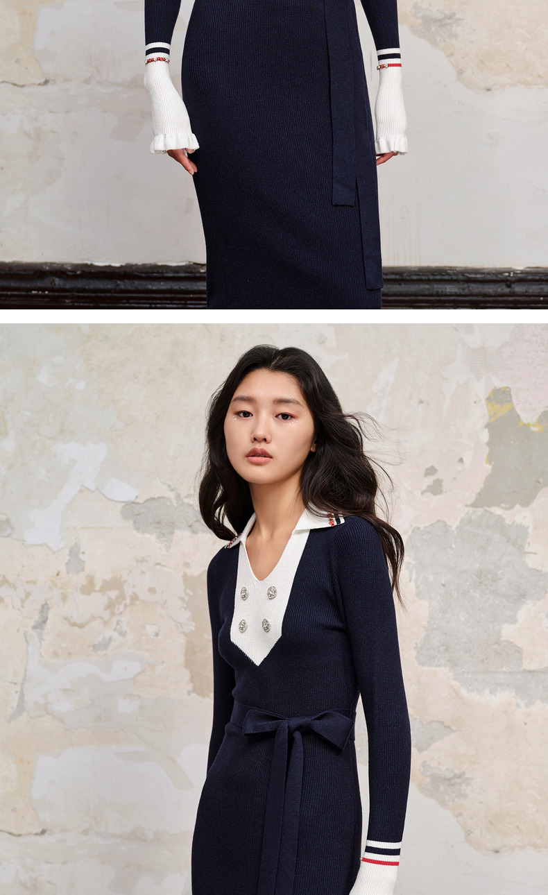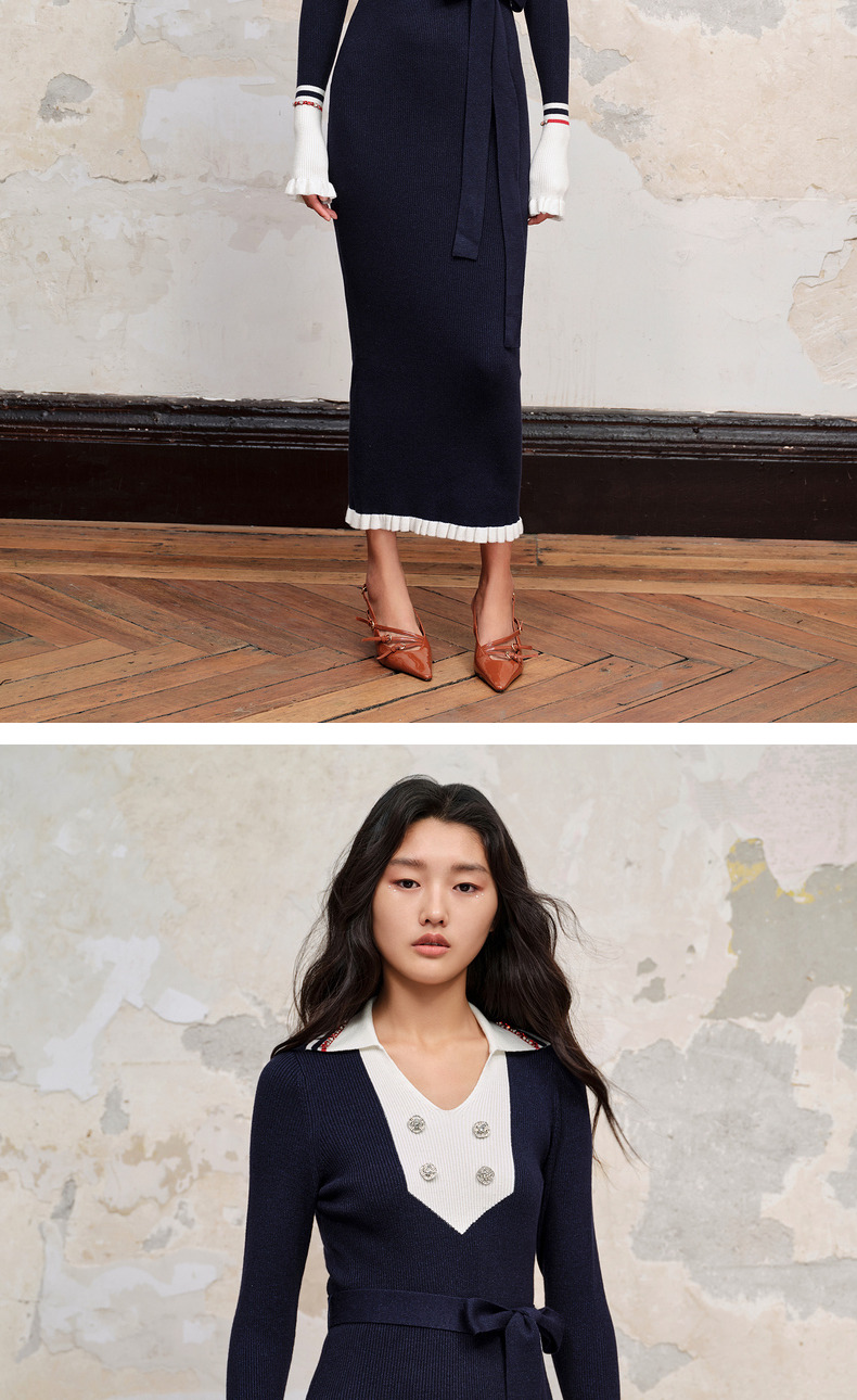 MAXRIENY*华丽复古感红蓝撞边钉钻连衣裙裙子(货号:MC88DR568)