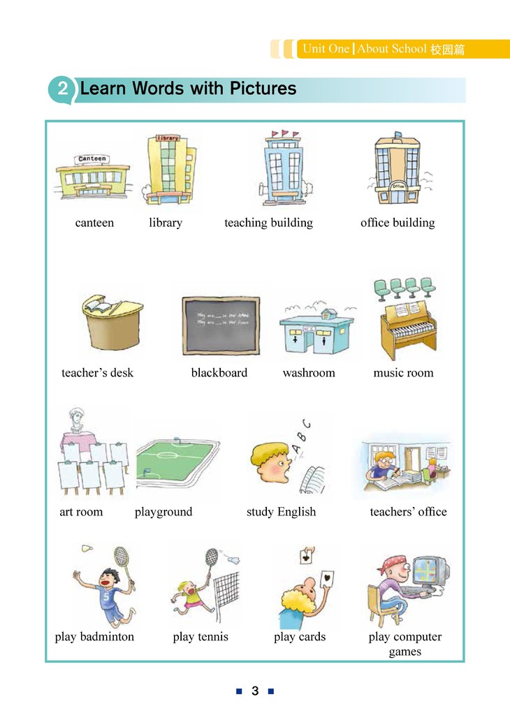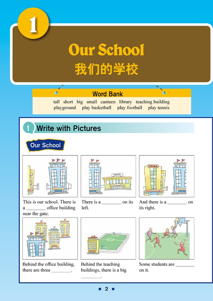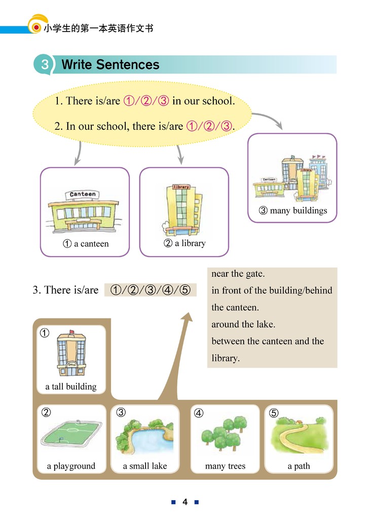 本书旨在为各位小朋友的英语写作提供一些指导,从而帮助掌握正确的表达方式。本书分为3个单元,题材包括自我、家庭、生活等方方面面。本书一共18课,每课有7~8页。第1页为看图作文,第2页为以图画的形式拓展单词,第3~4页为句型模板练习,第5页为范文阅读和填空,第6页为针对范文的语法讲解,第7~8页提供更多的句型并布置相应的写作任务。