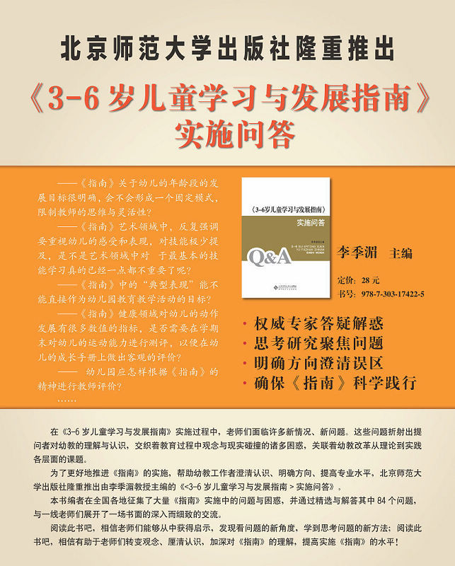为了更好地推进《指南》的实施,帮助幼教工作者澄清认识、明确方向、提高专业水平,北京师范大