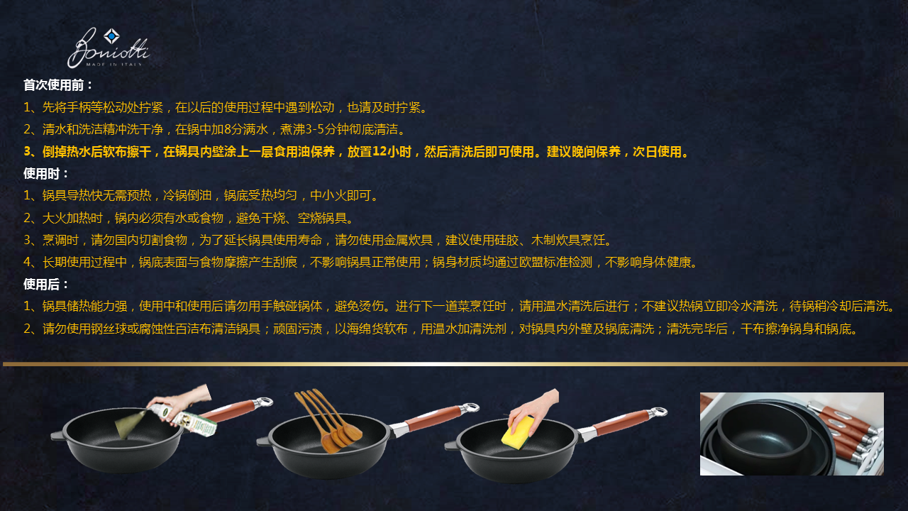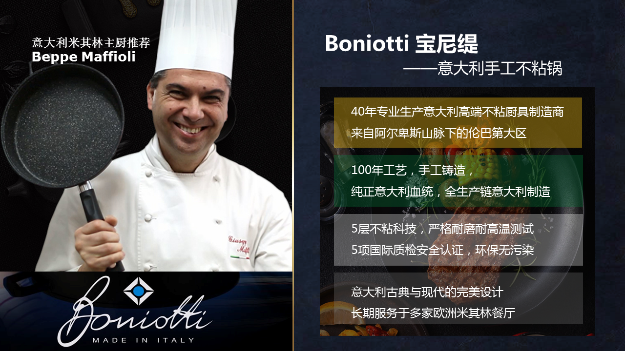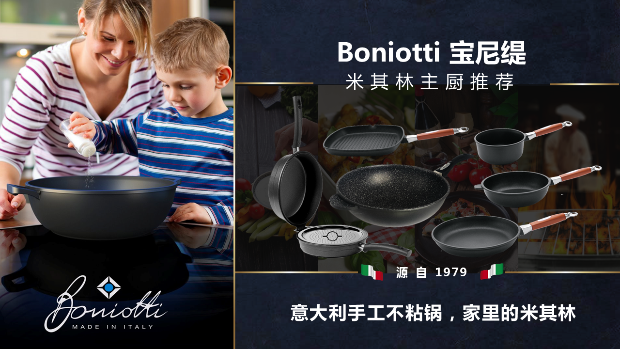 【高品尊享 煎炒不粘】Boniotti宝尼缇意大利不粘锅中式炒锅32cm 赠锅盖+厨房三件套
