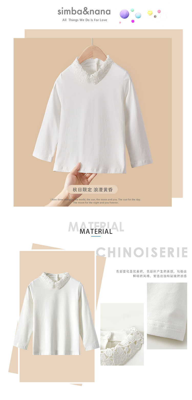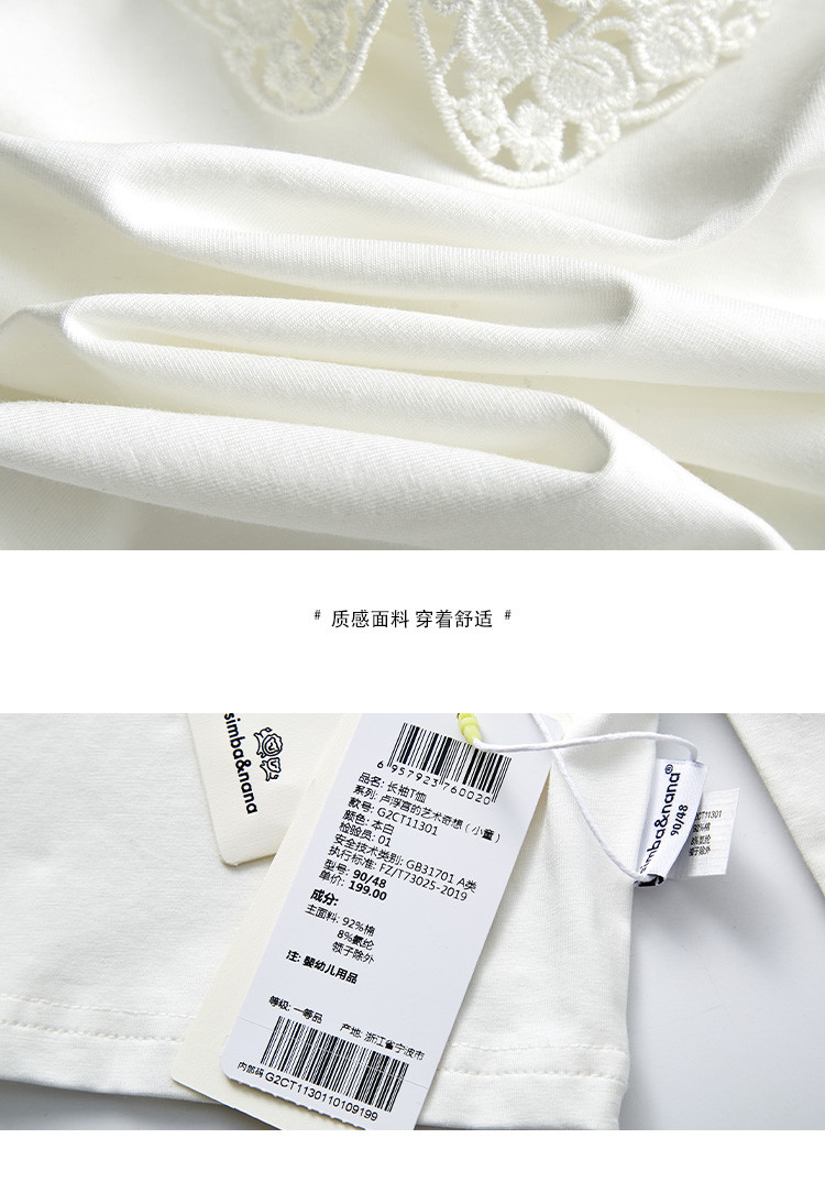【辛巴娜娜】simbanana儿童打底衫新款女童长袖t恤纯棉白色女宝宝上衣春秋款潮