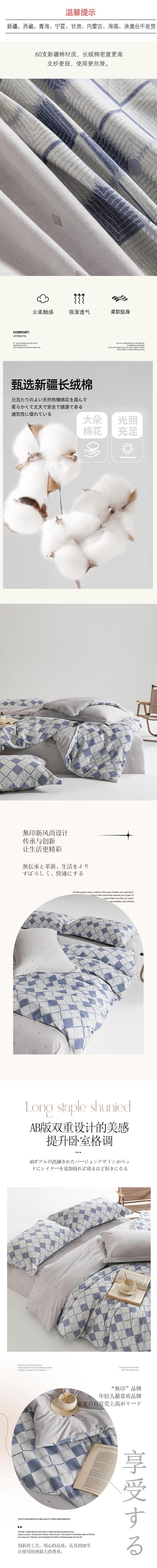無印良品 60支新疆长绒棉四件套牛仔格 MJ-T2024-0291-1