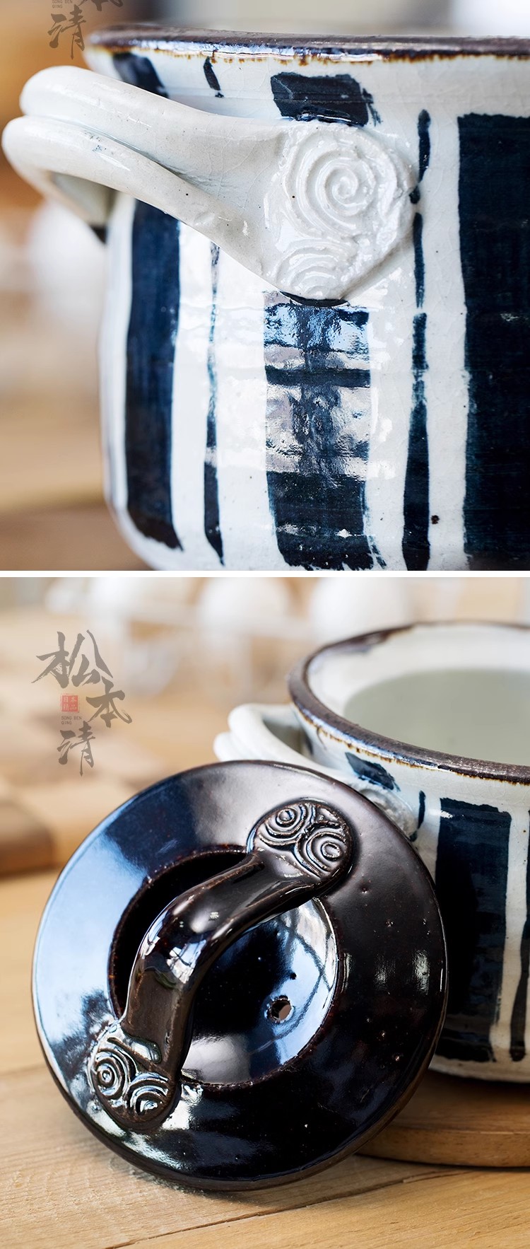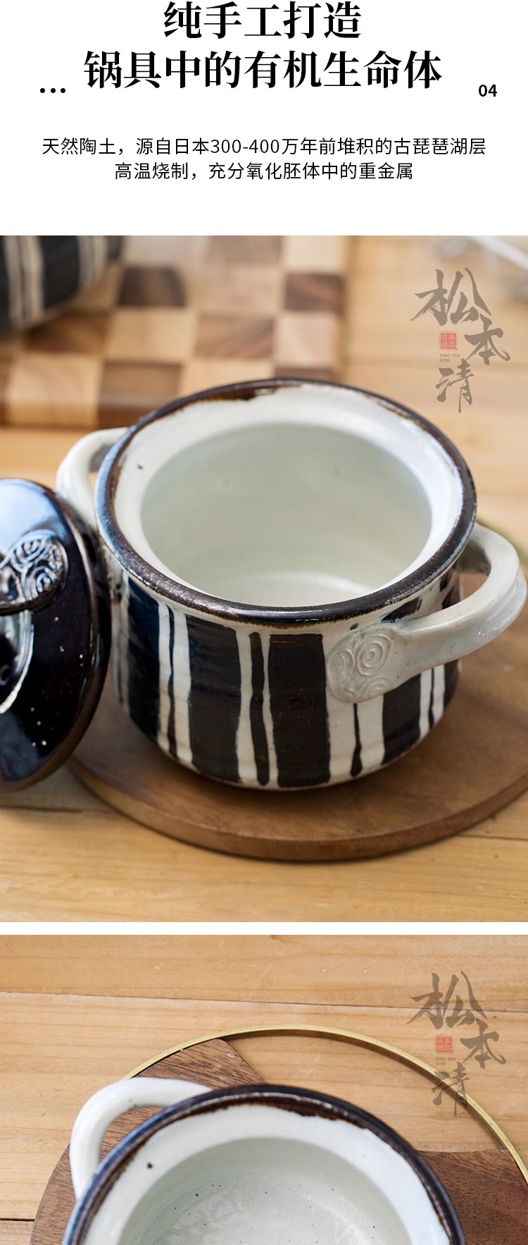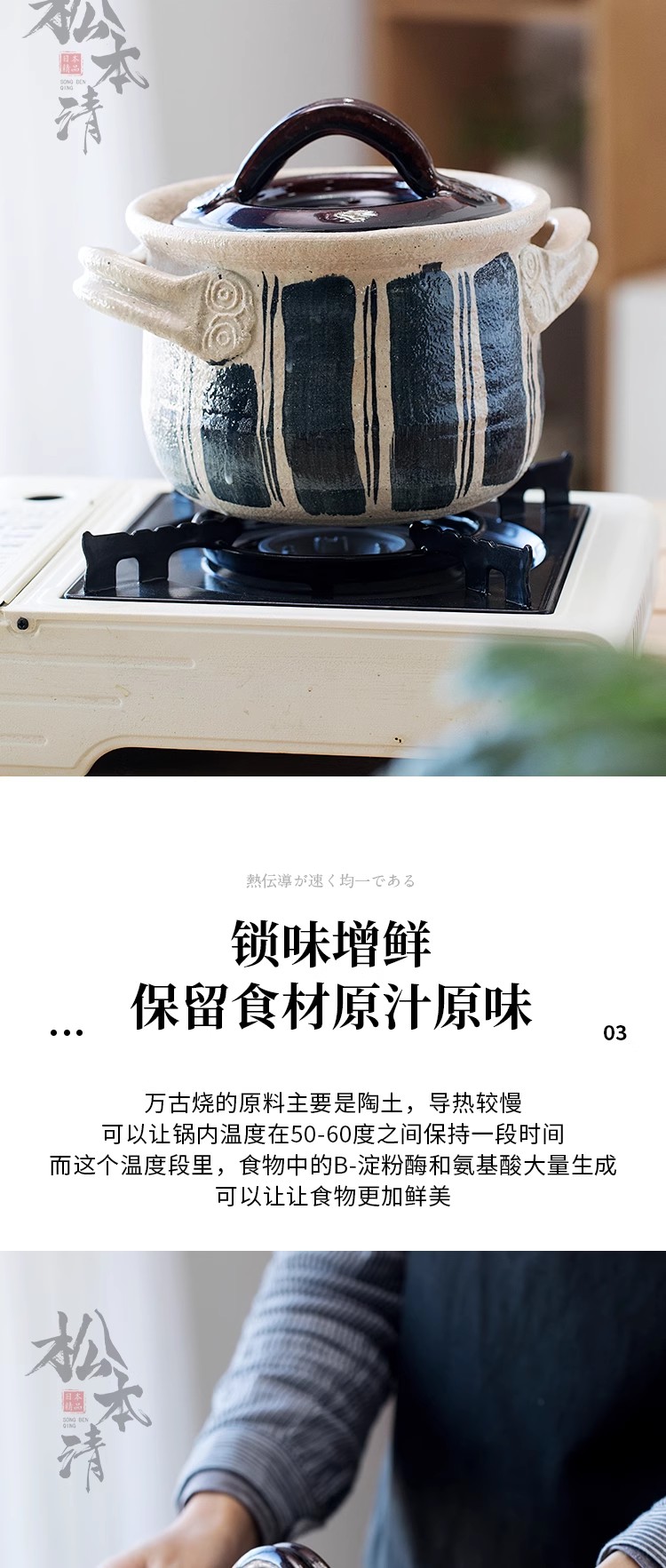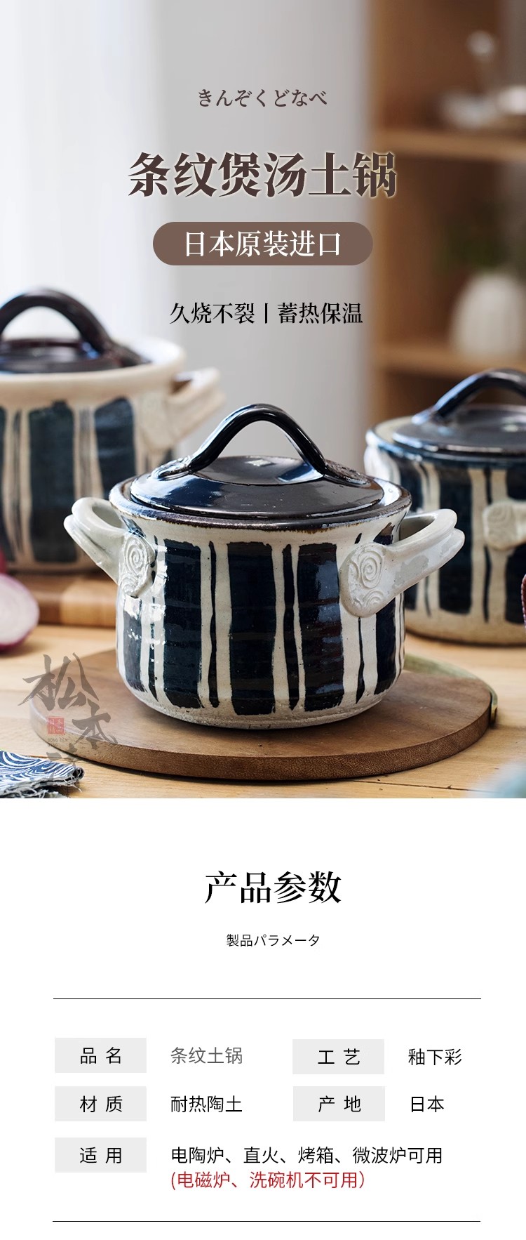 日本进口手作伊贺烧深型条纹粗陶土锅(3合)