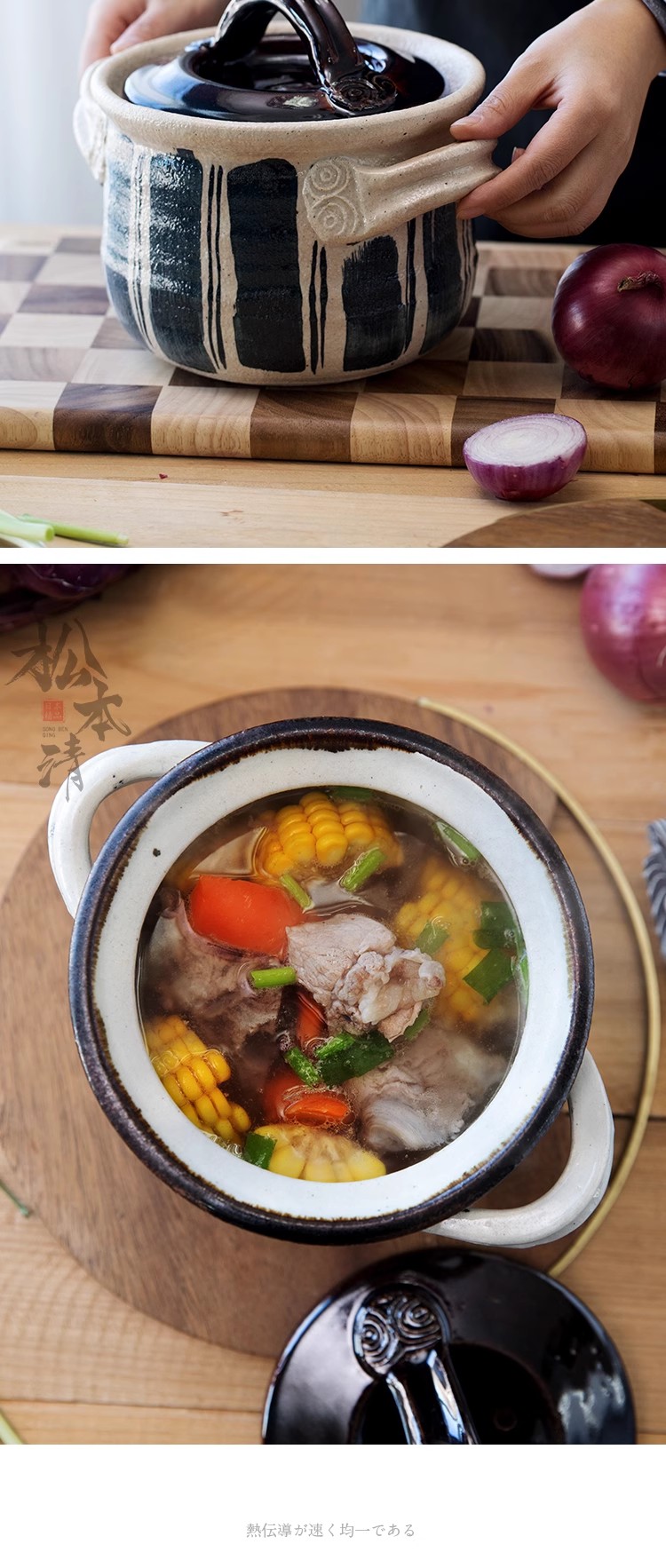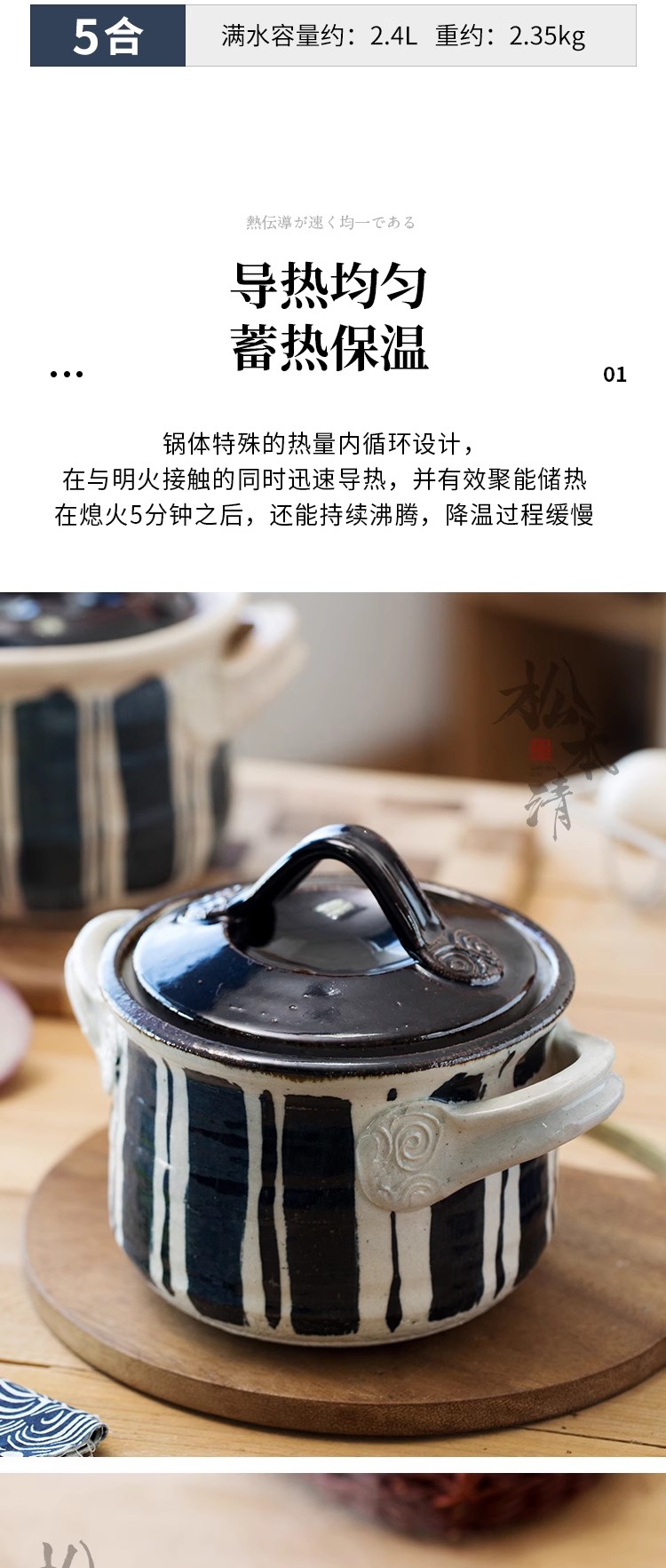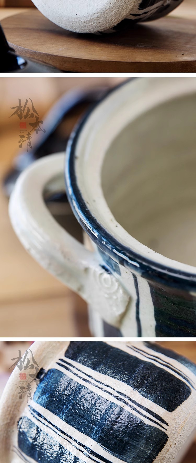 日本进口手作伊贺烧深型条纹粗陶土锅(3合)
