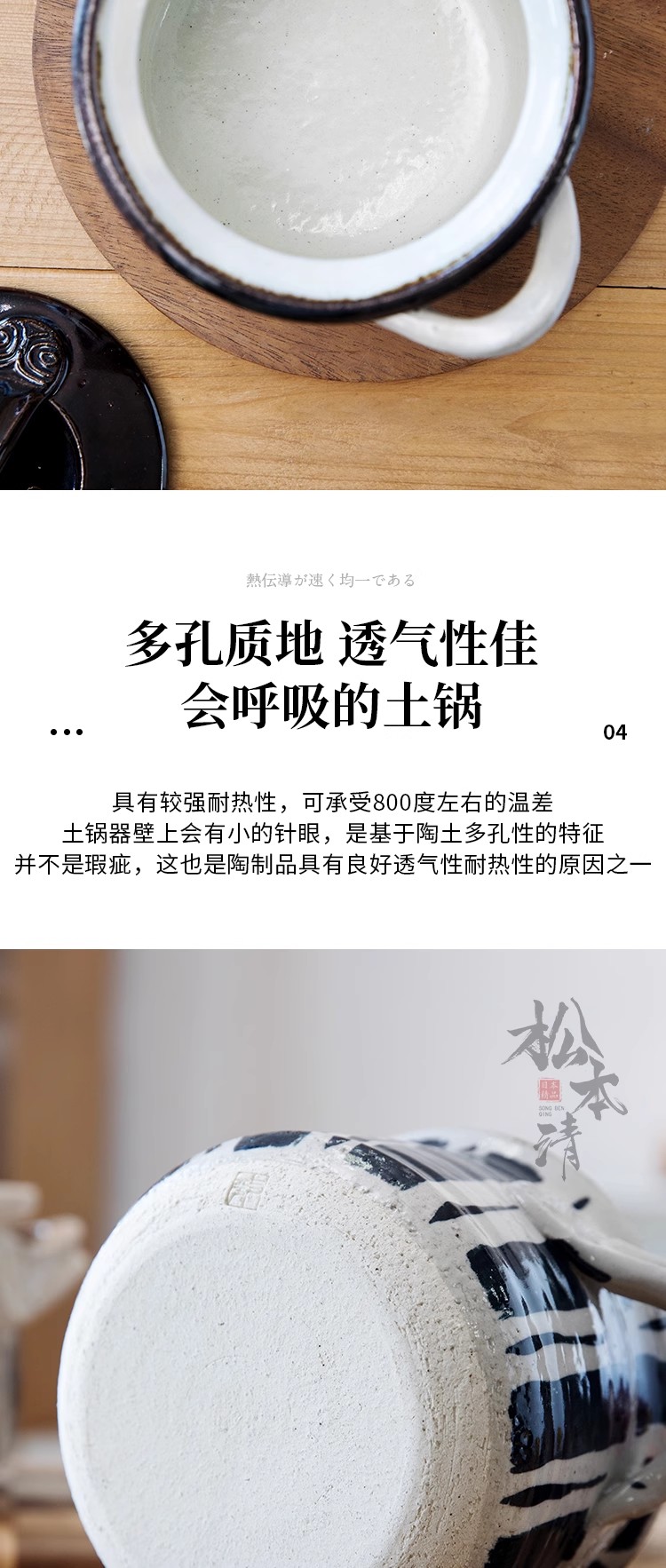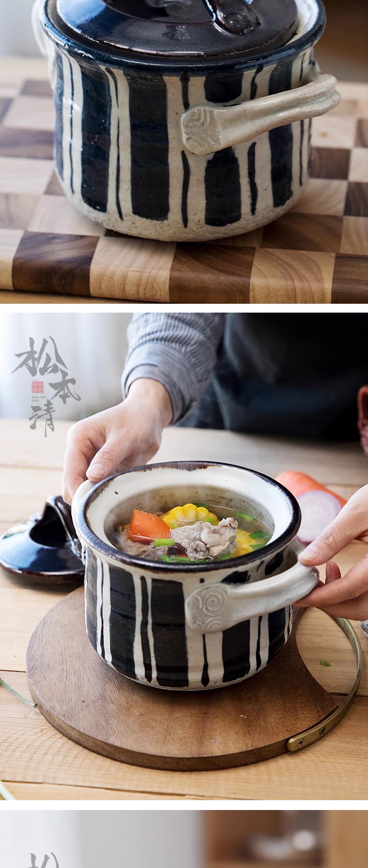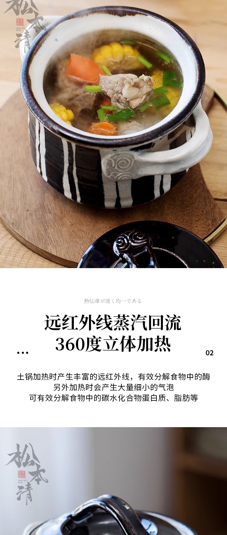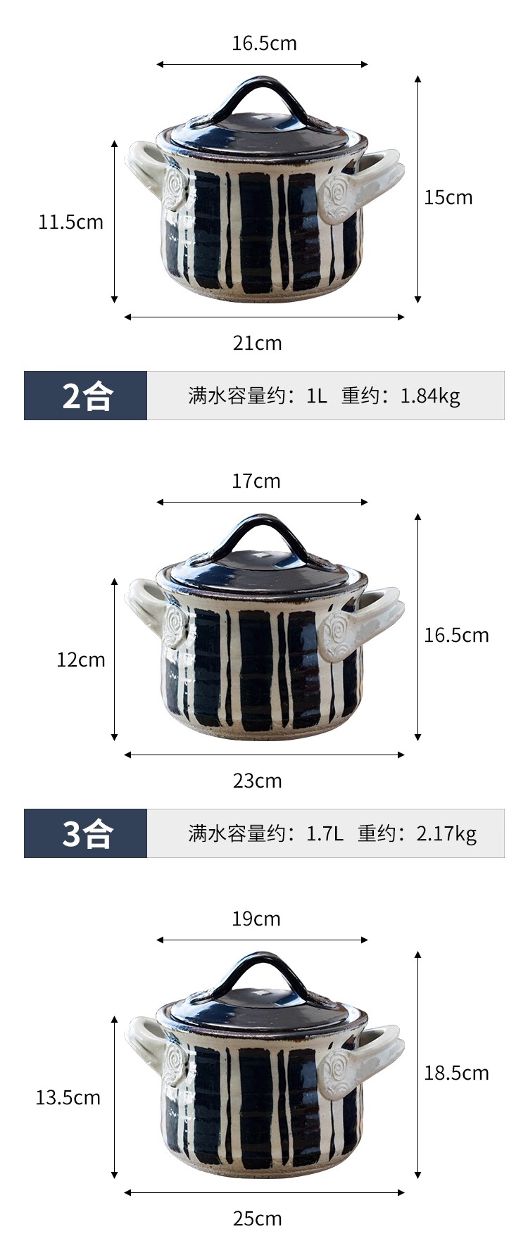 日本进口手作伊贺烧深型条纹粗陶土锅(3合)