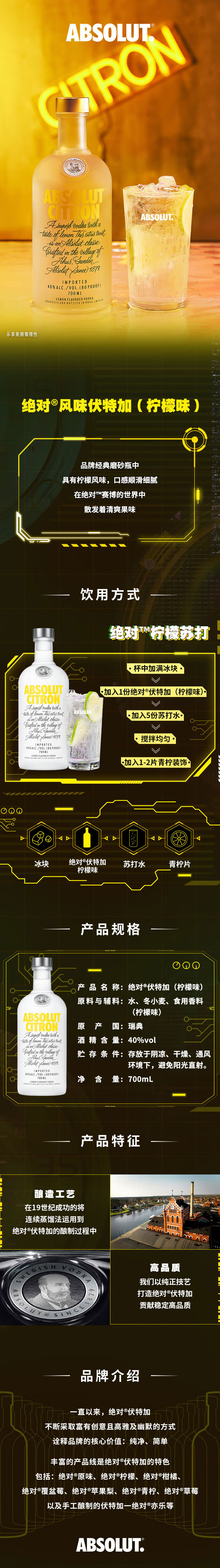 ABSOLUT绝对伏特加 40度 柠檬味