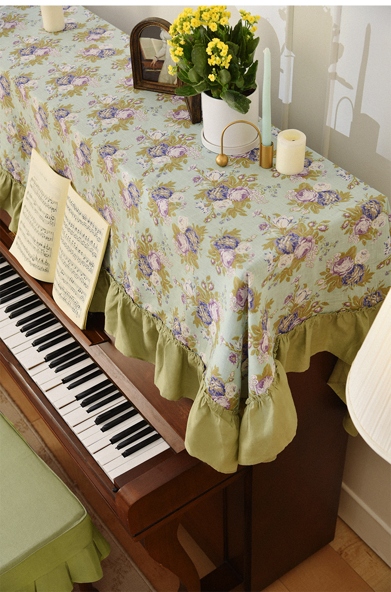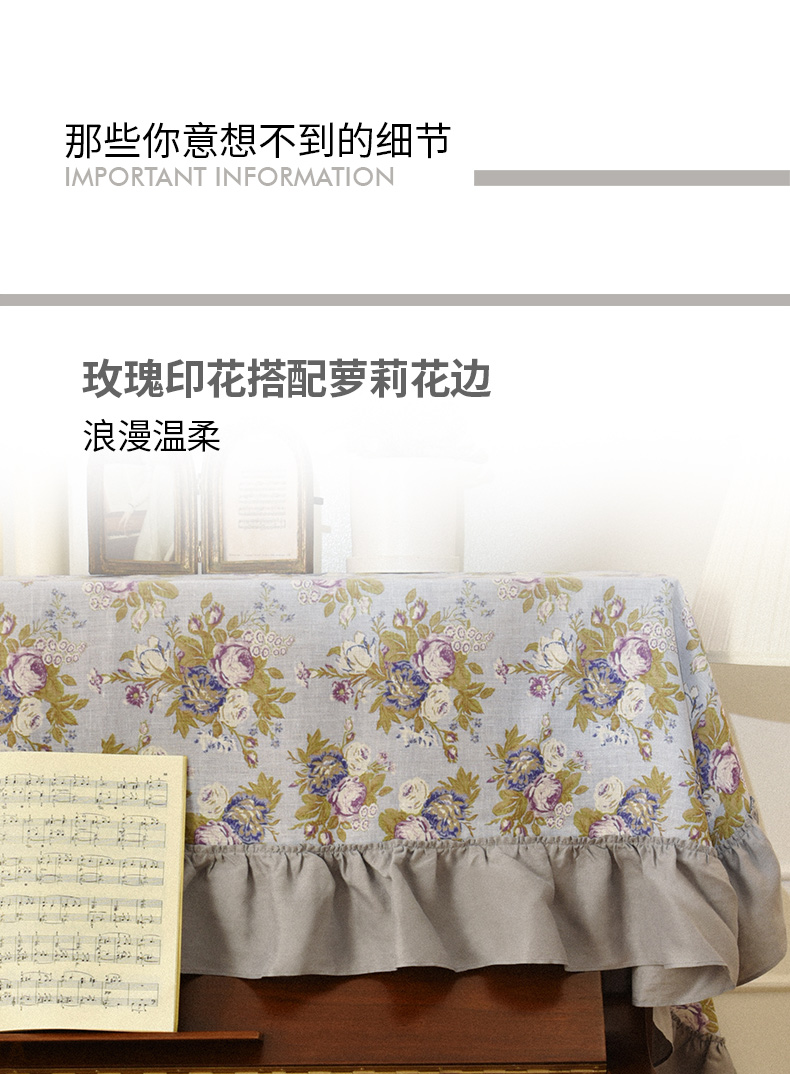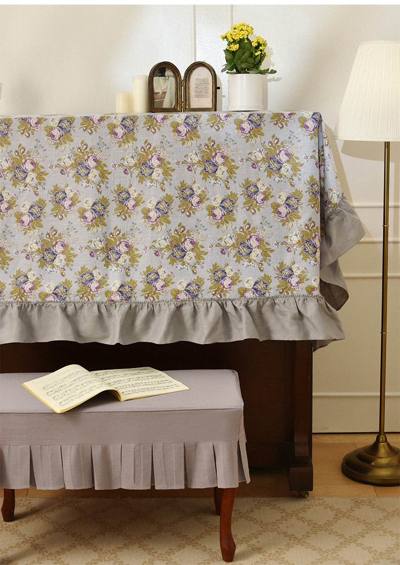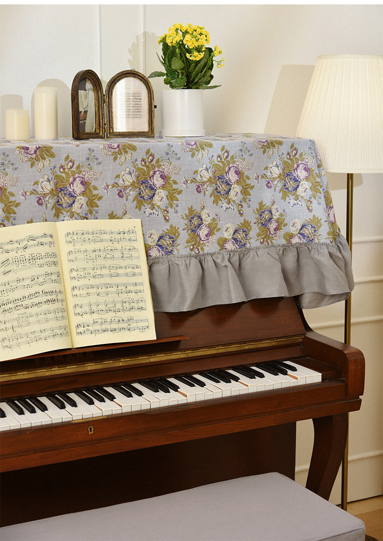 法式玫瑰亚麻钢琴巾钢琴凳罩北欧现代简约钢琴罩全罩新款钢琴巾