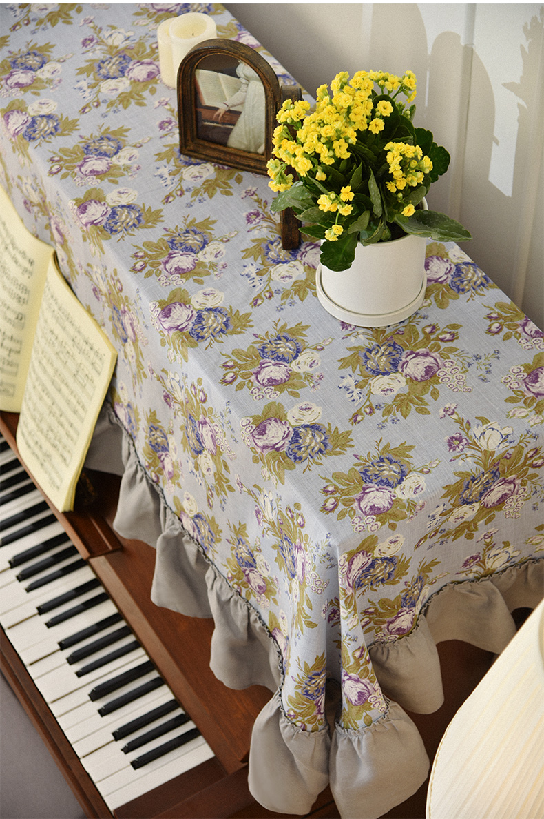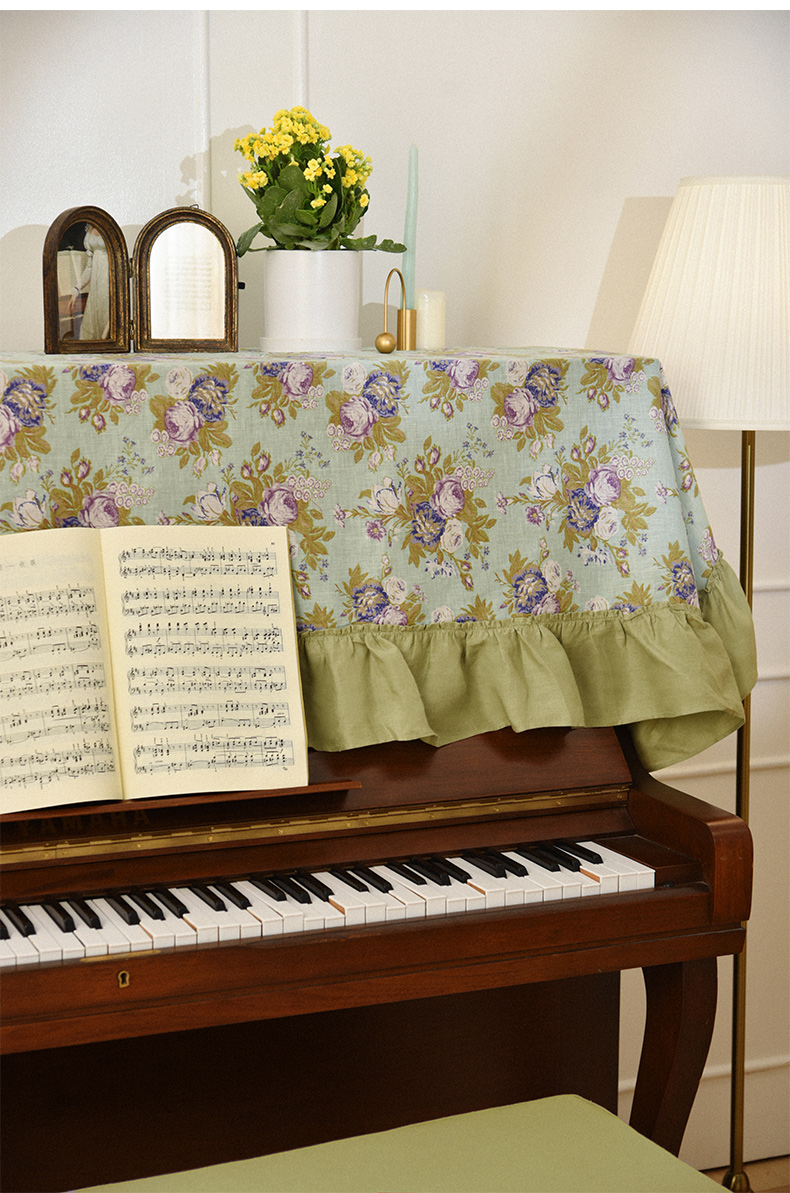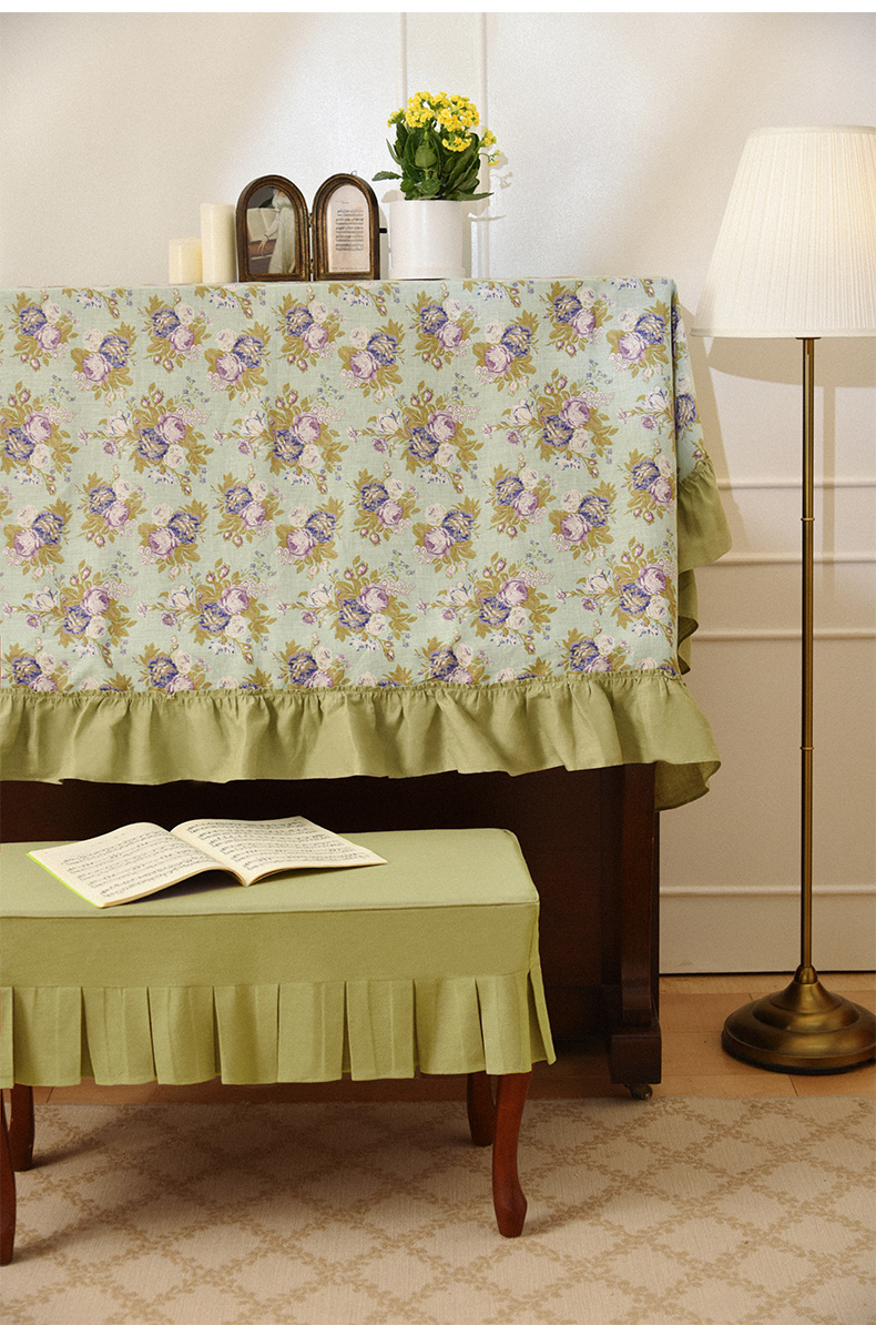 法式玫瑰亚麻钢琴巾钢琴凳罩北欧现代简约钢琴罩全罩新款钢琴巾