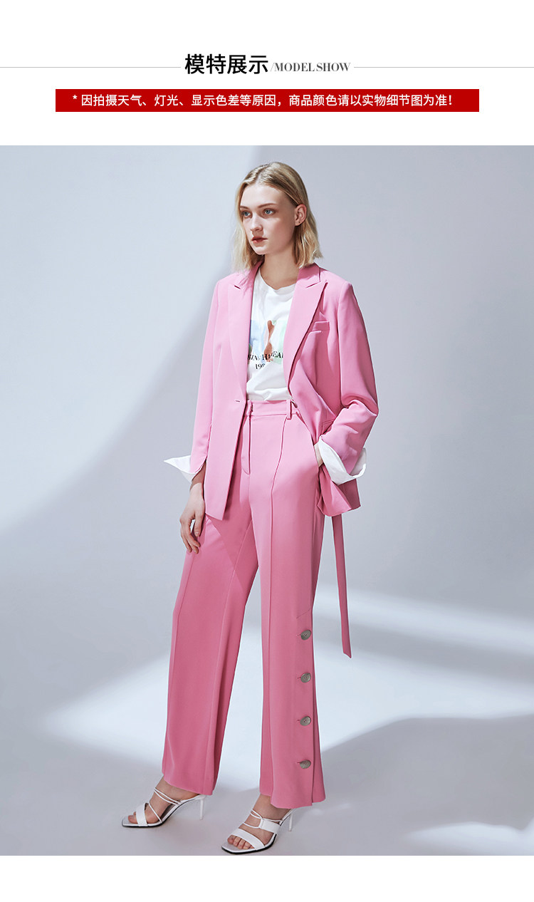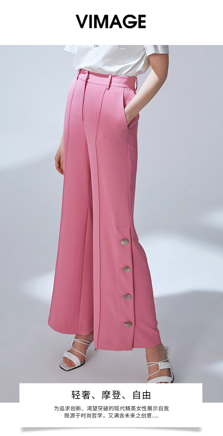 VIMAGE纬漫纪秋款时尚宽松百搭纽扣装饰西装微喇裤女显瘦V1405009