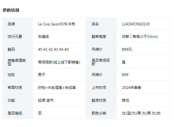 【大都会店】乐卡克 法国公鸡2024春季新品 男士轻便透气缓震休闲运动鞋训练鞋 L241MCNS0110