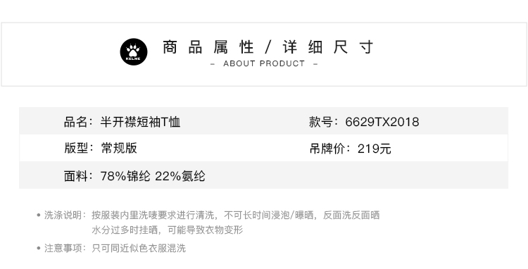 半开襟短袖T恤6629TX2018