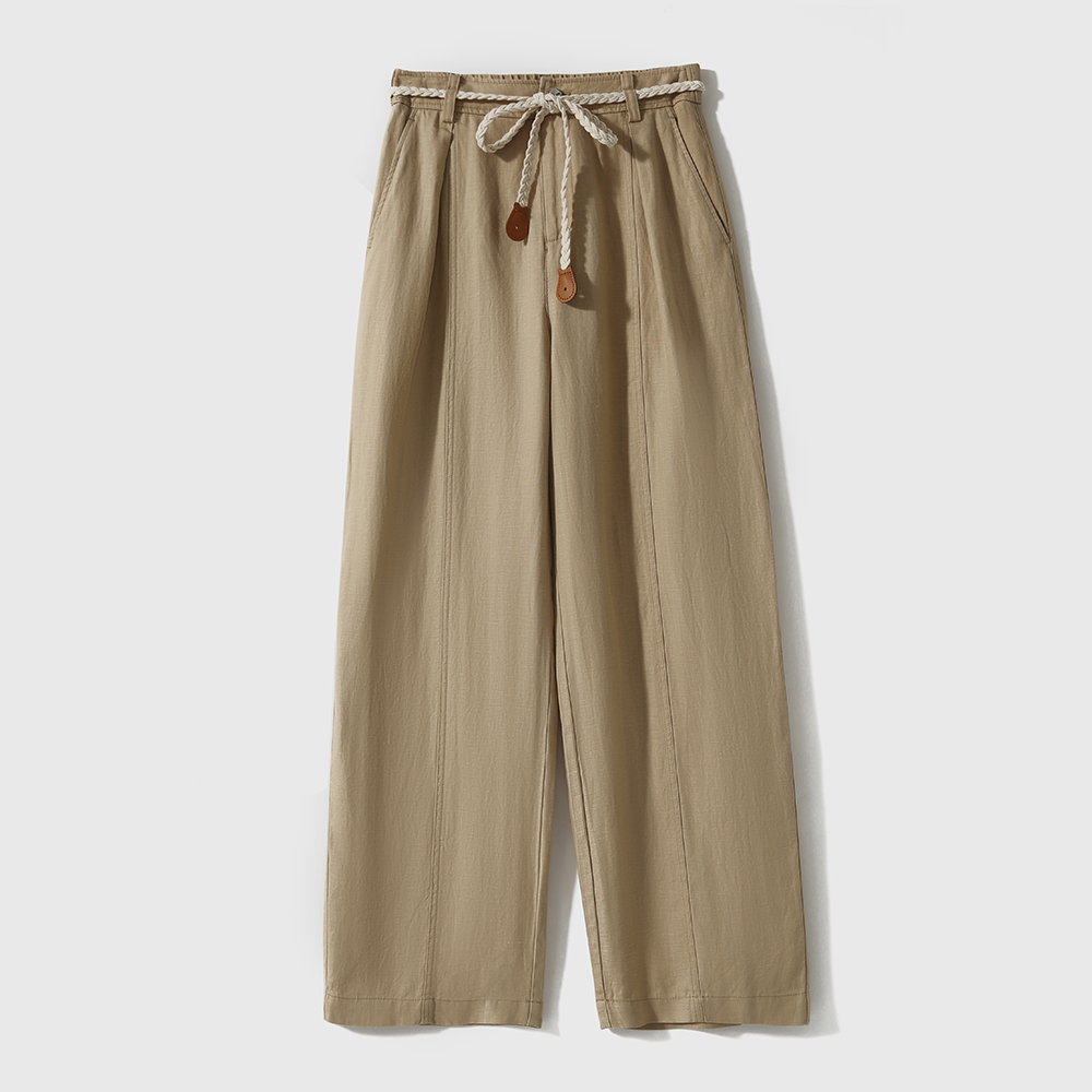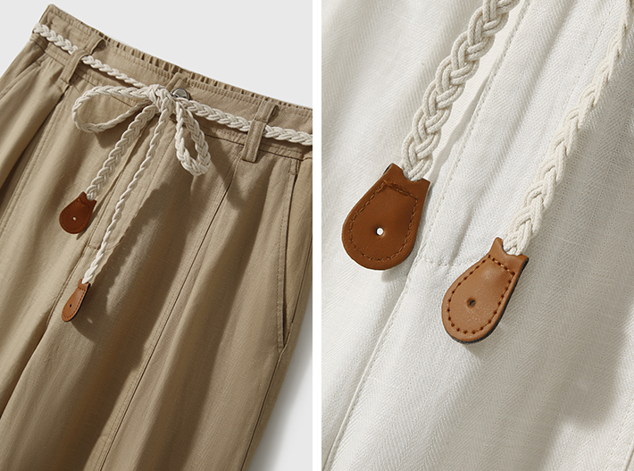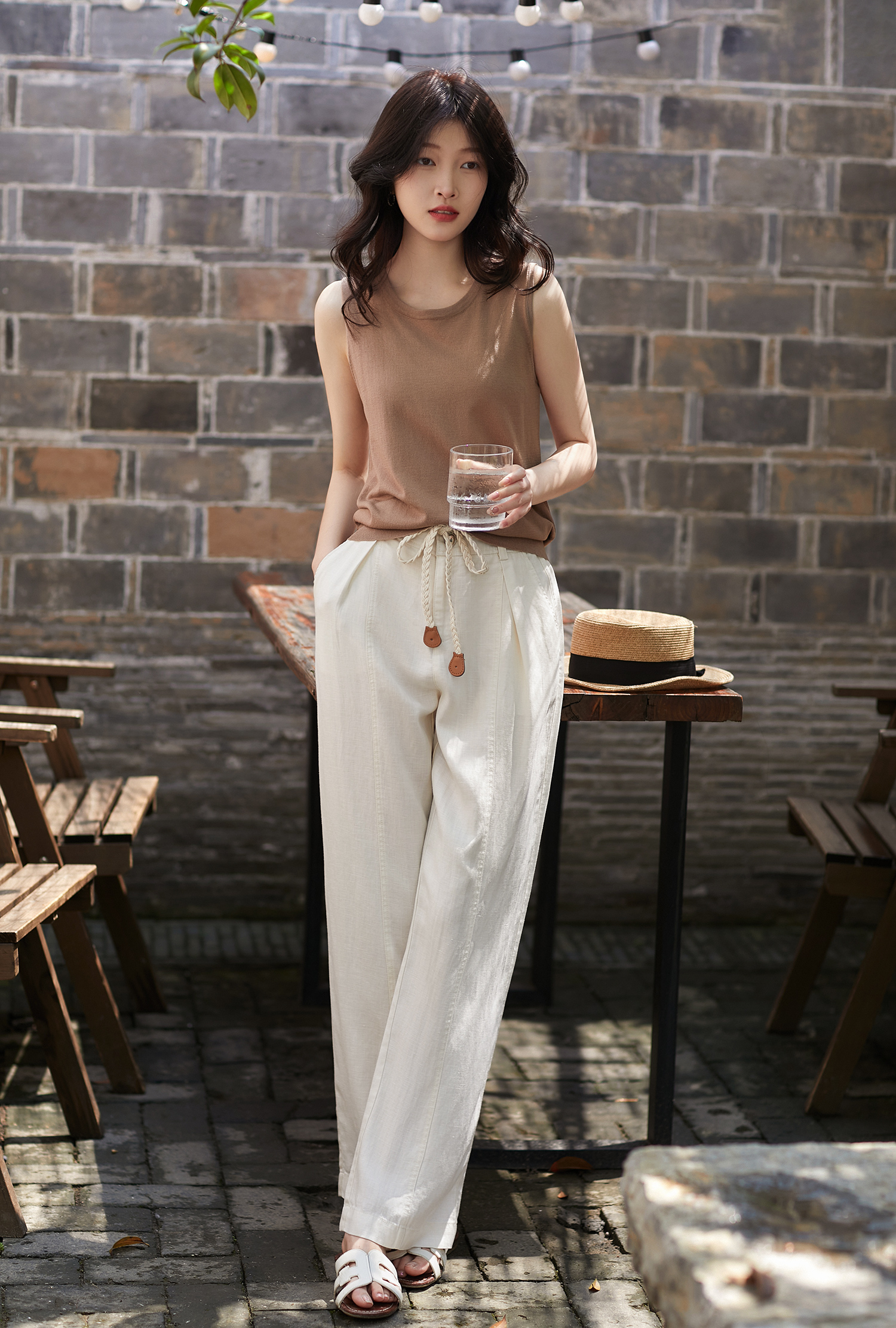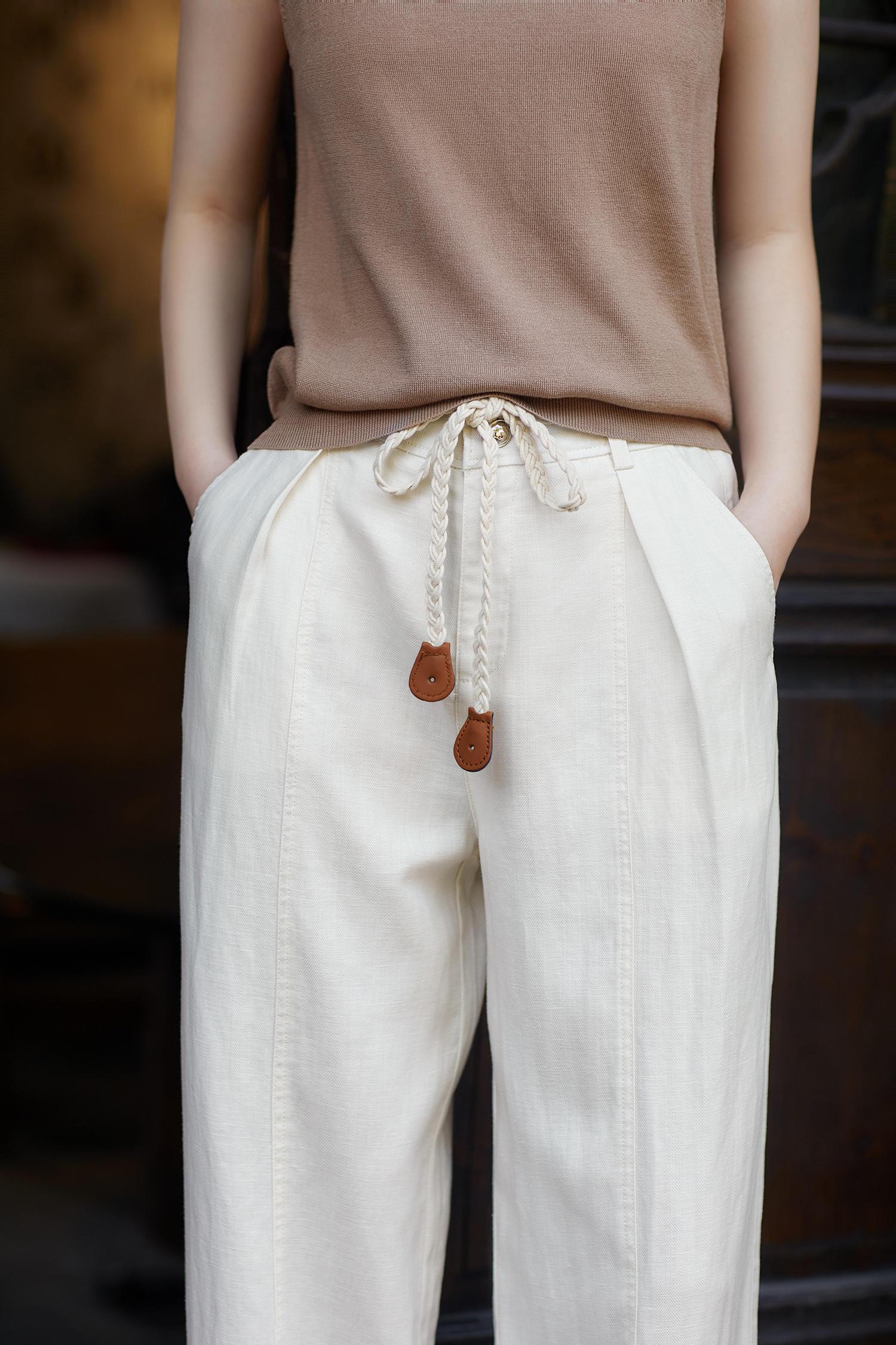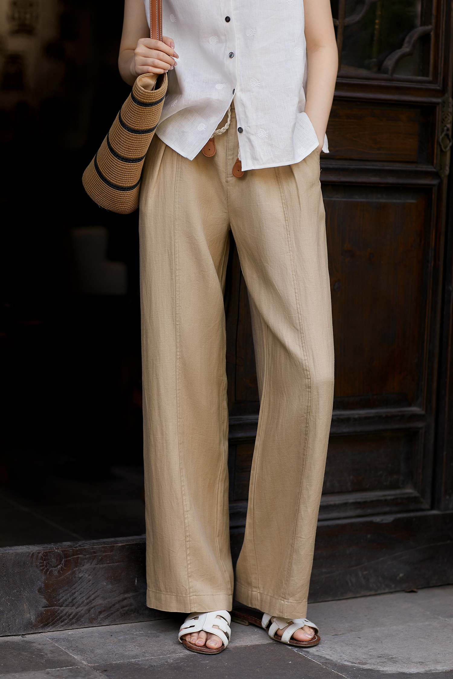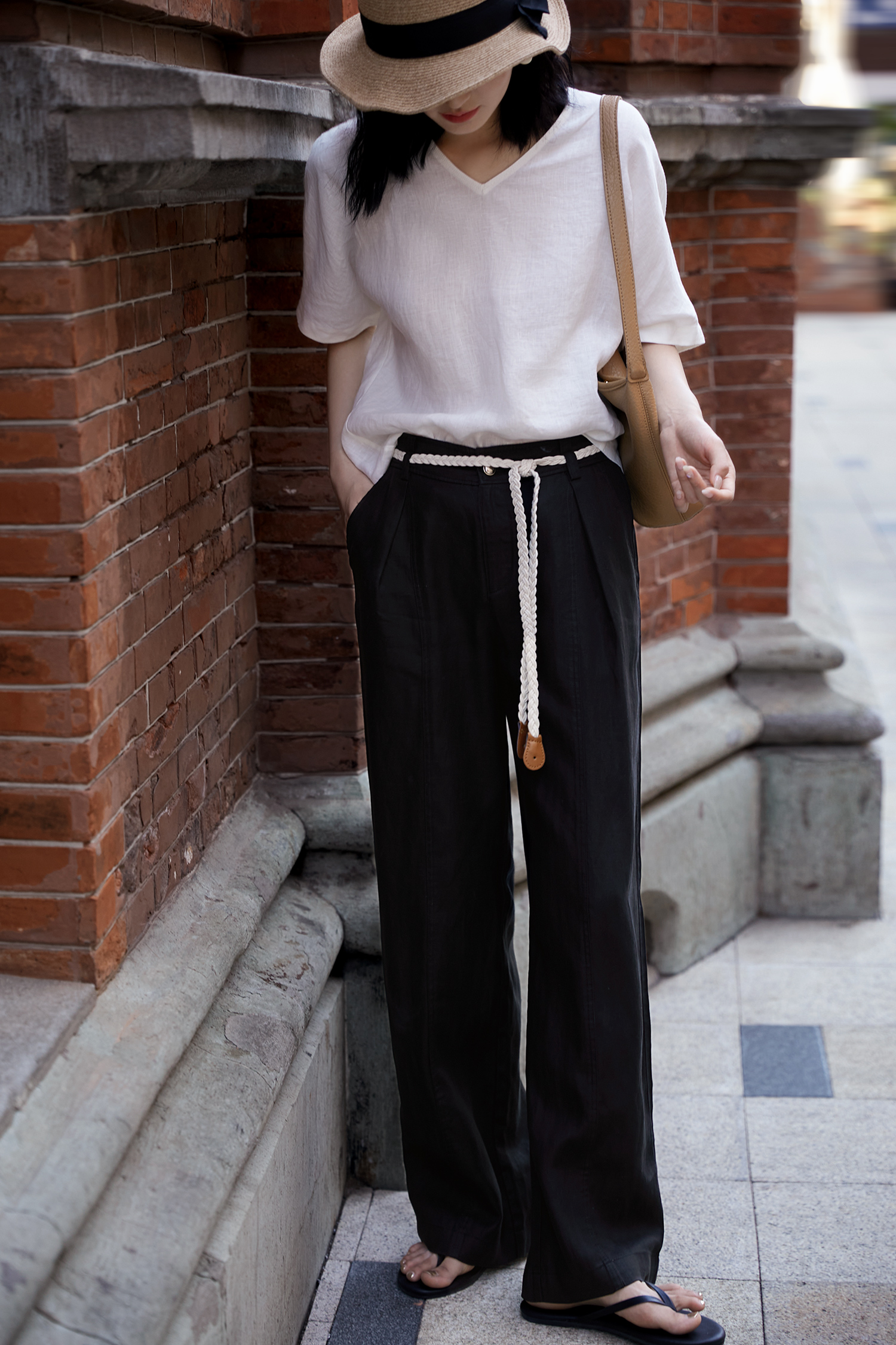 材质:上衣:10%亚麻45%人棉45%涤纶 裤子:75%莱塞尔纤维25%亚麻