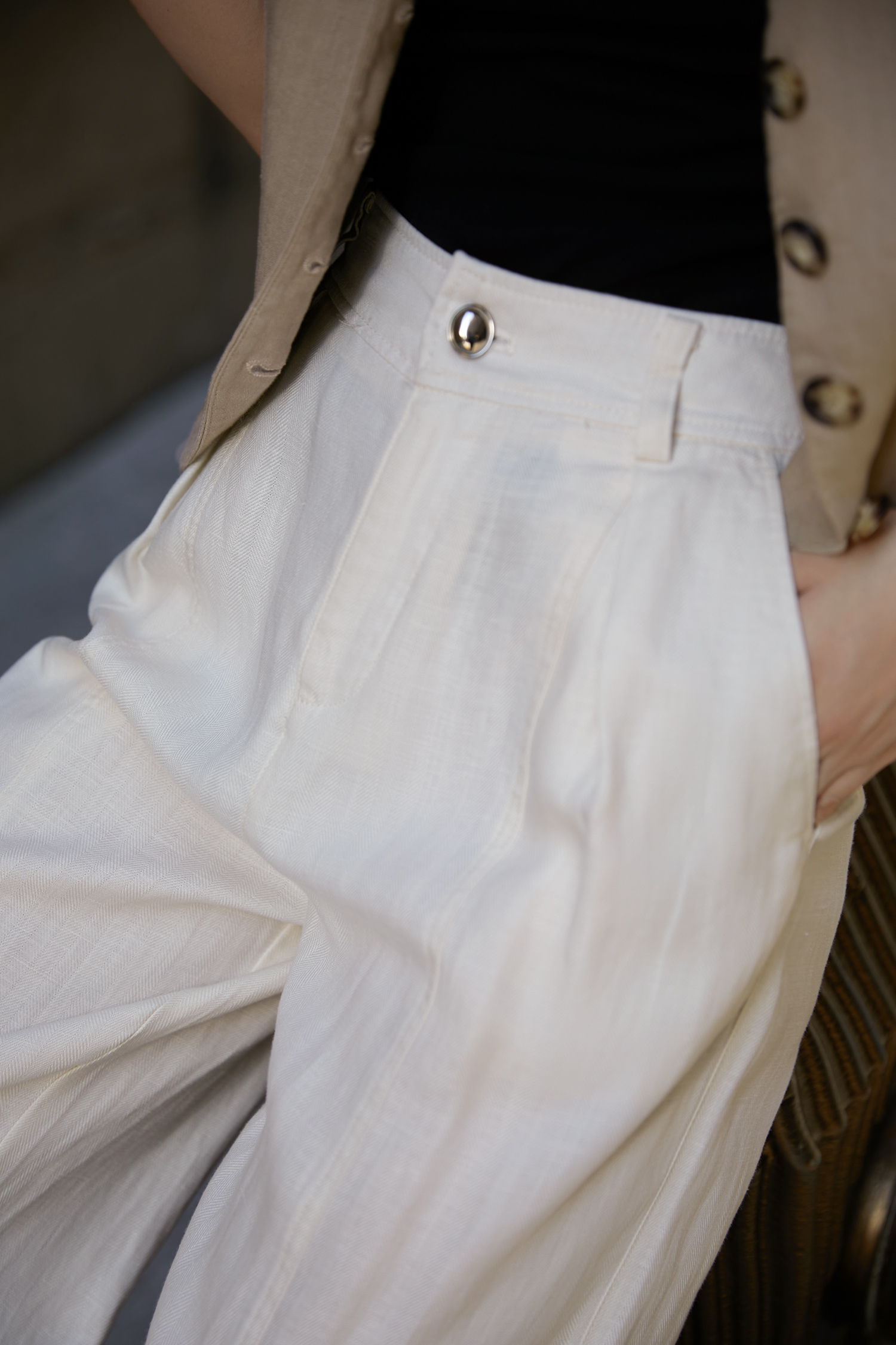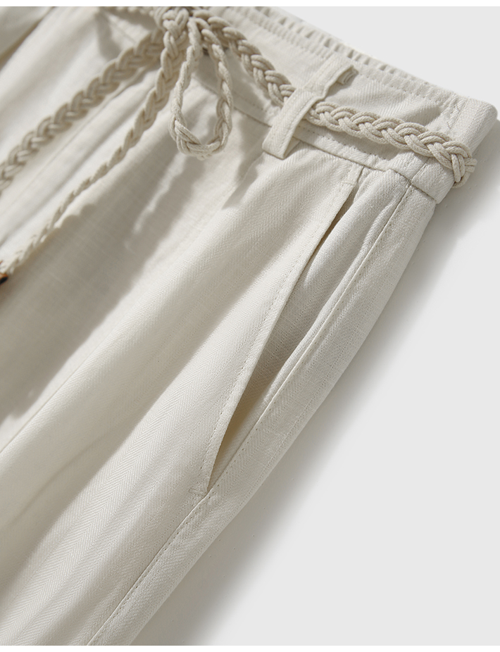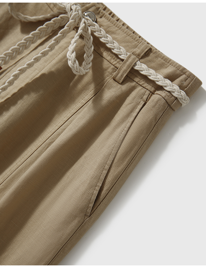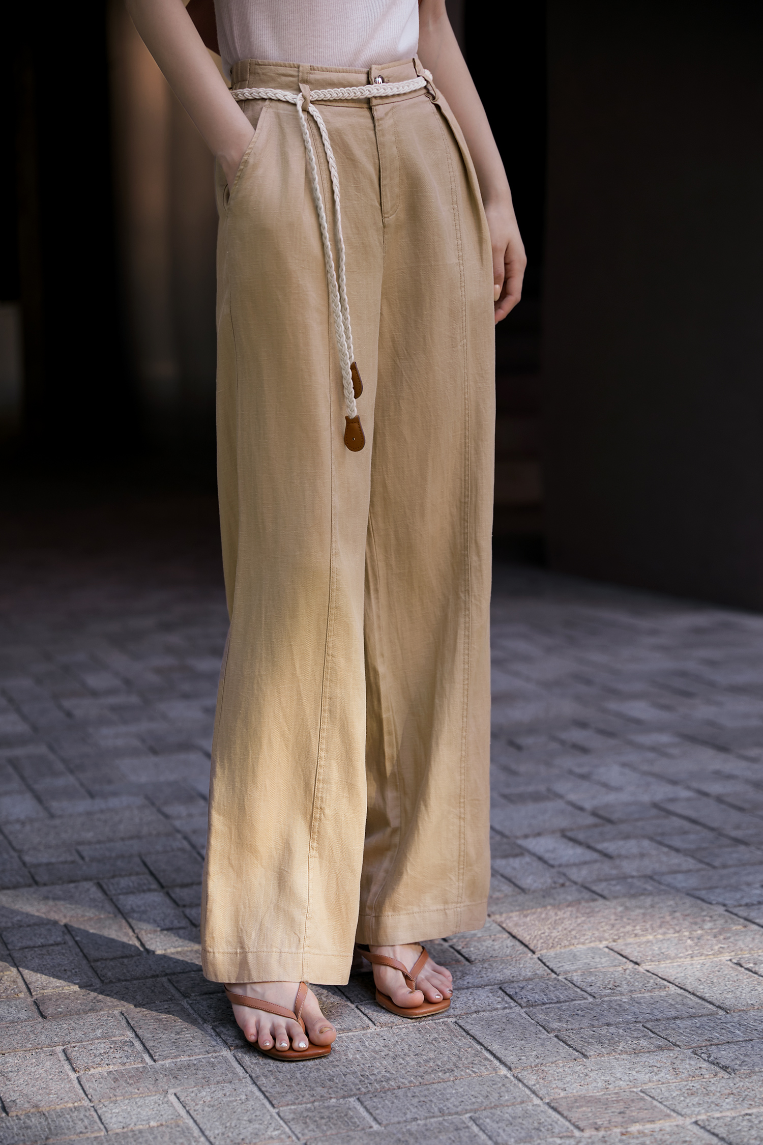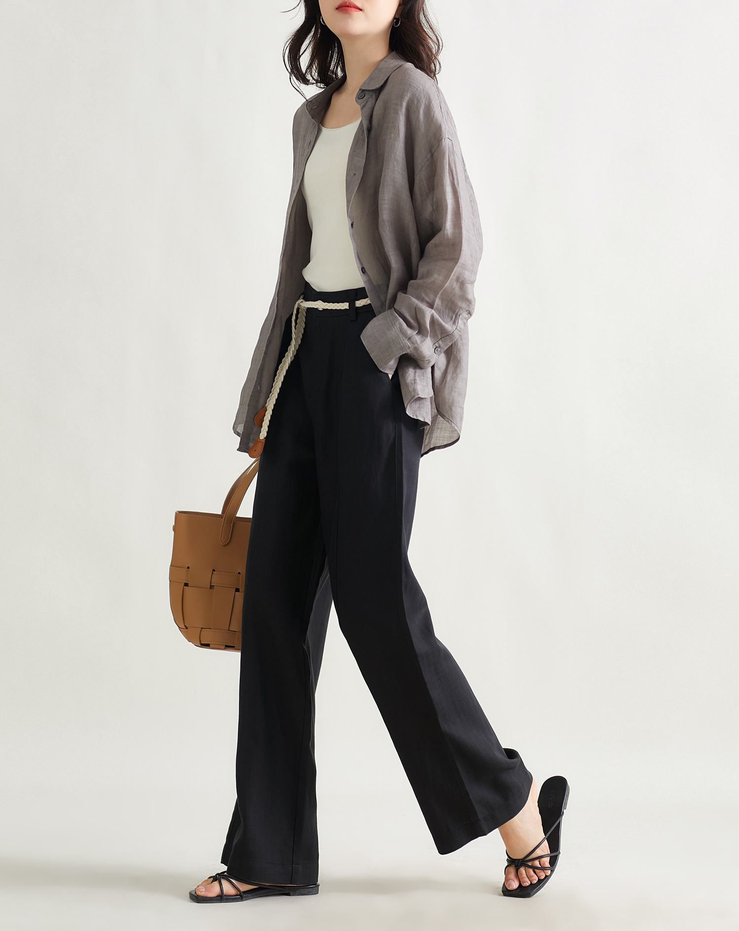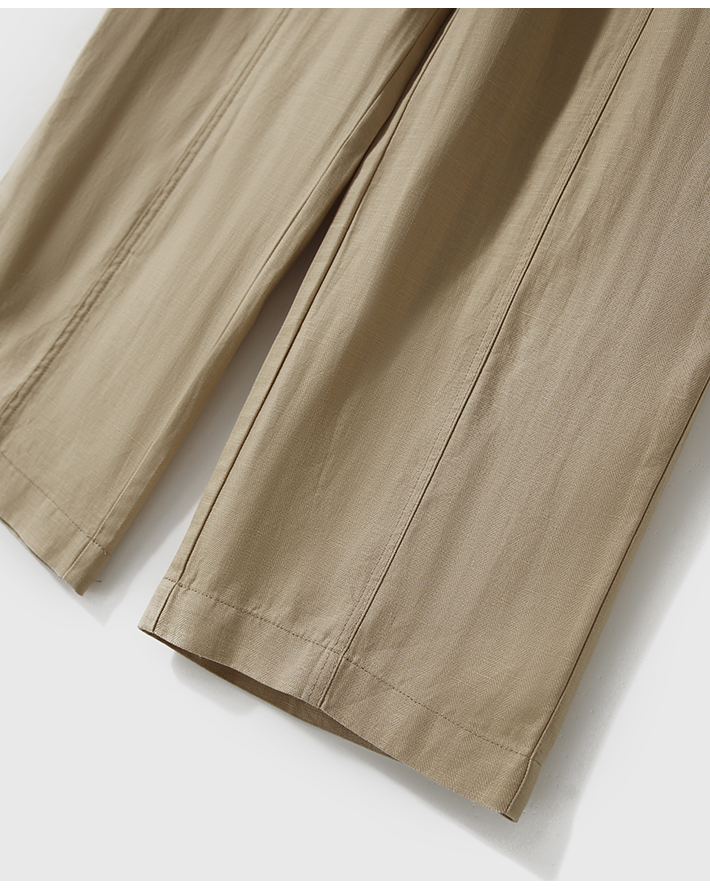 材质:上衣:10%亚麻45%人棉45%涤纶 裤子:75%莱塞尔纤维25%亚麻