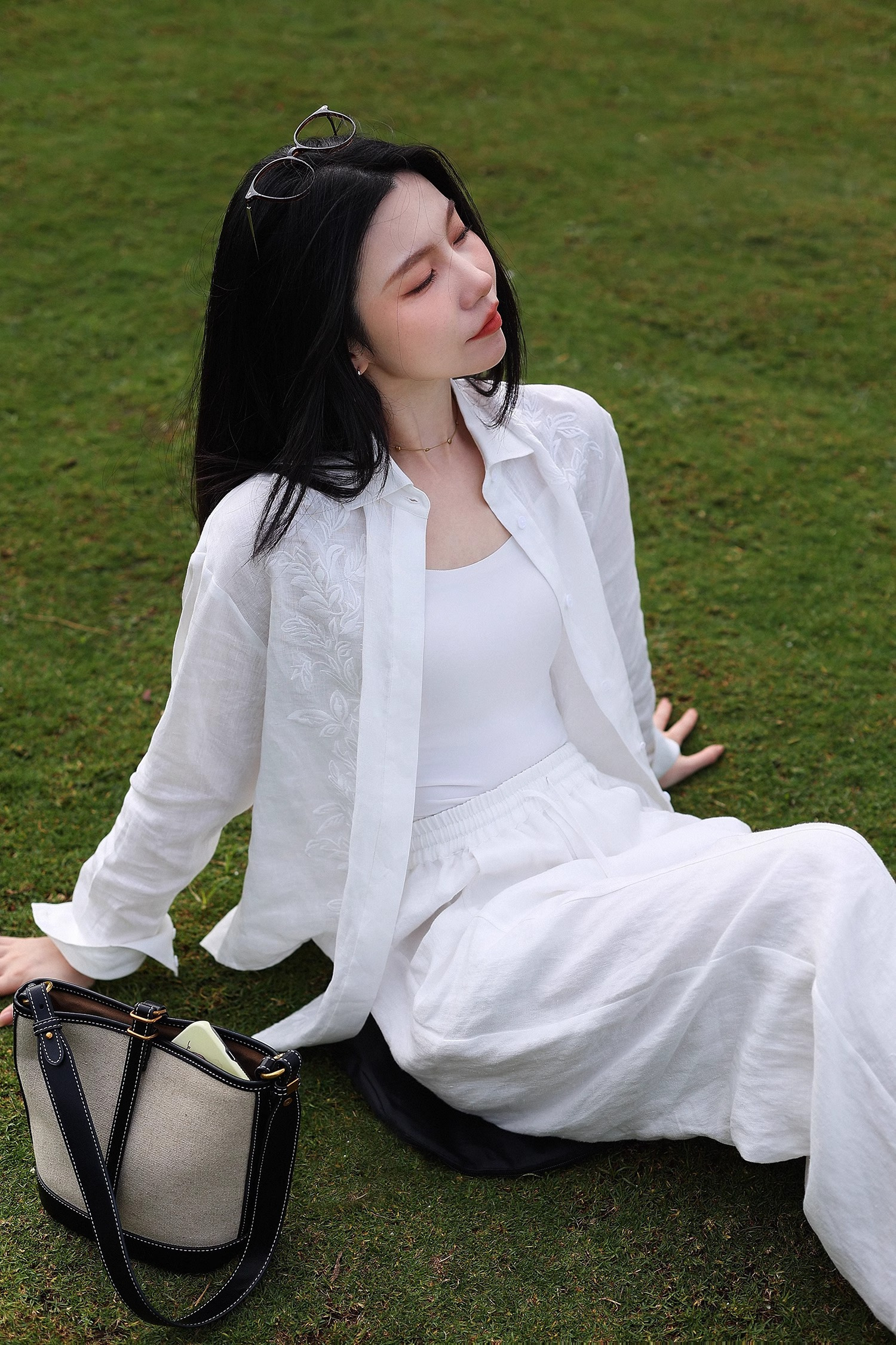 品牌直发【樱西玛ENXIMANE·亚麻重工刺绣衬衫+亚麻休闲裤】随性慵懒好显品味❗夏日必备!体感绝绝子!不挑人的好穿好搭配