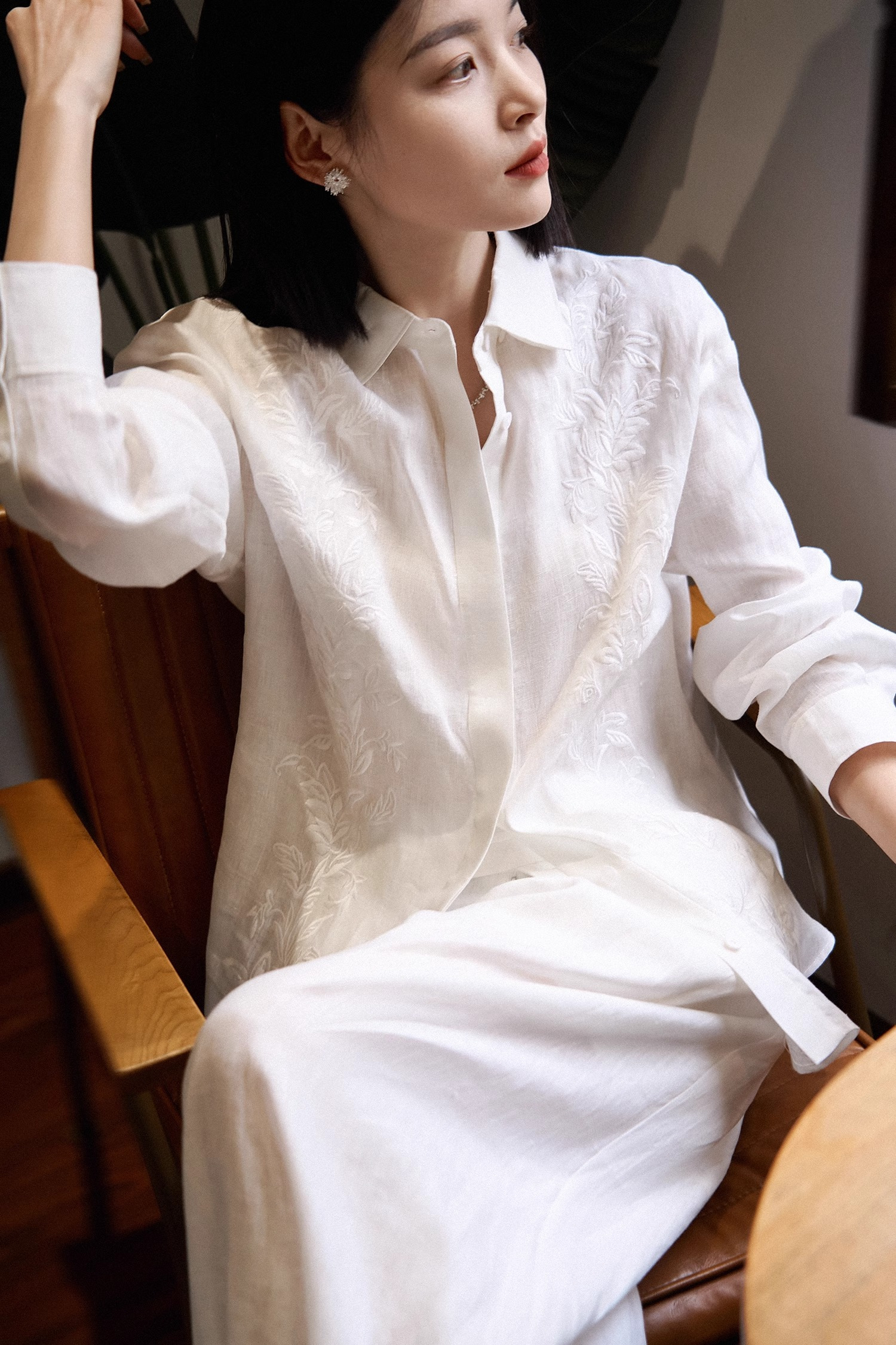 品名:意大利🇮🇹樱西玛ENXIMANE·亚麻重工刺绣衬衫+亚麻休闲裤