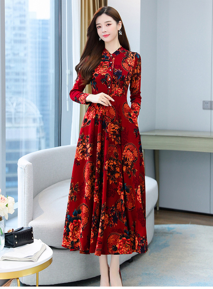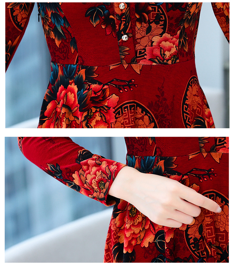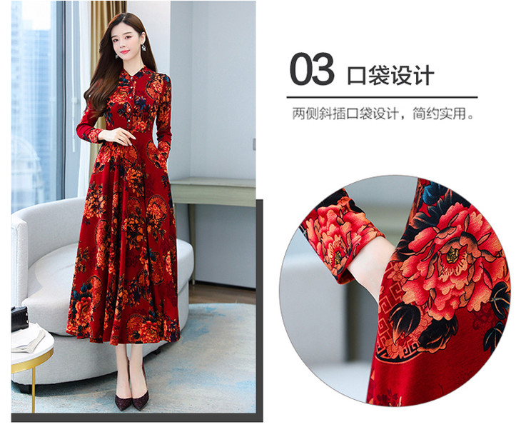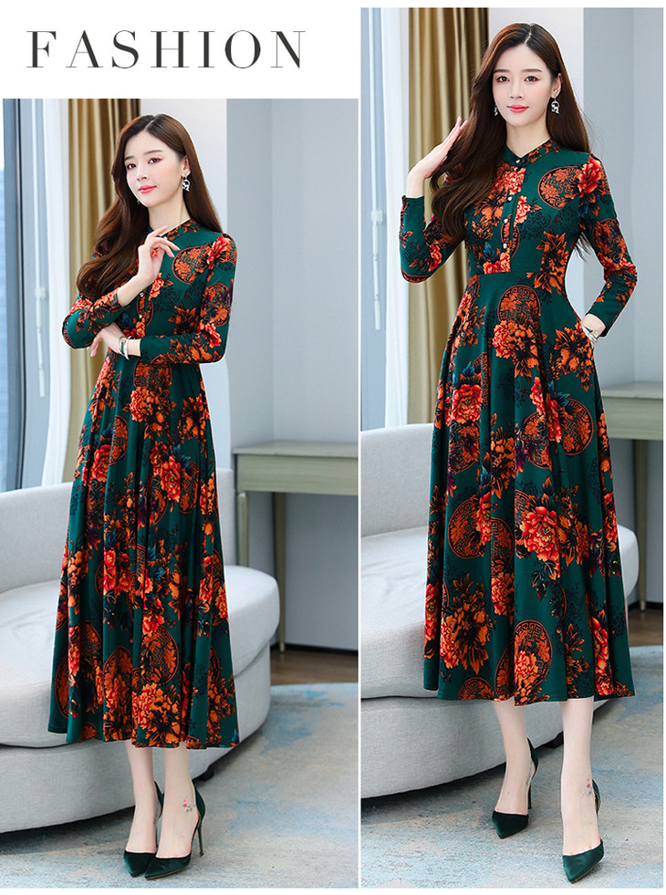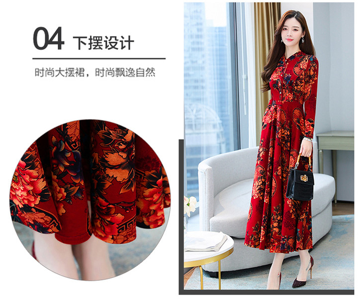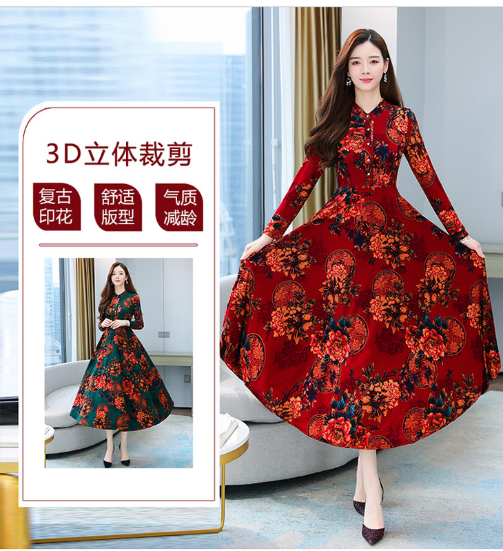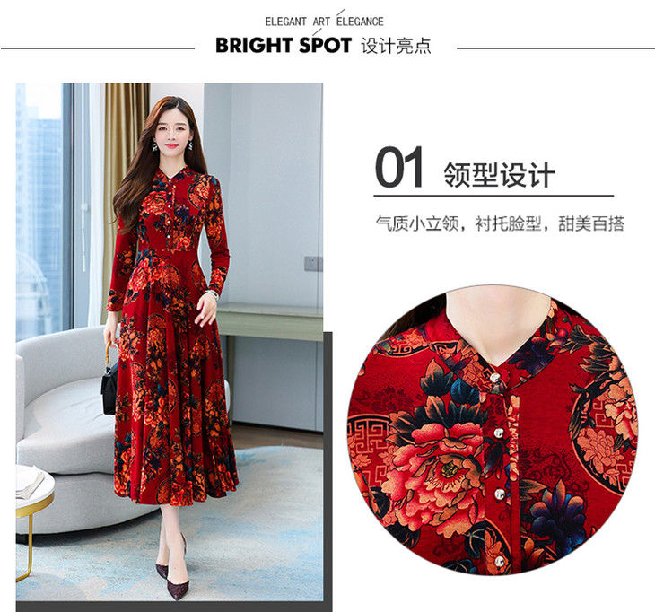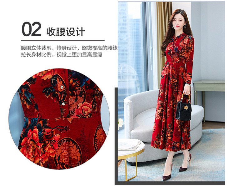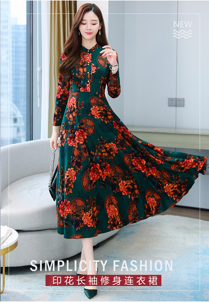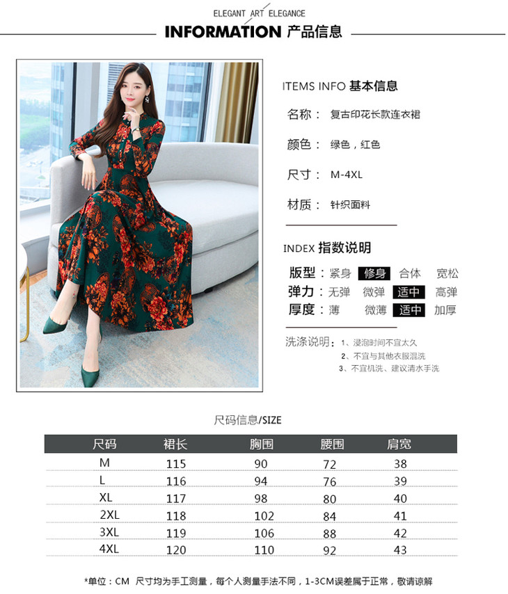 XYFS6209 秋装新款修身复古印花针织显瘦气质大码长袖连衣裙