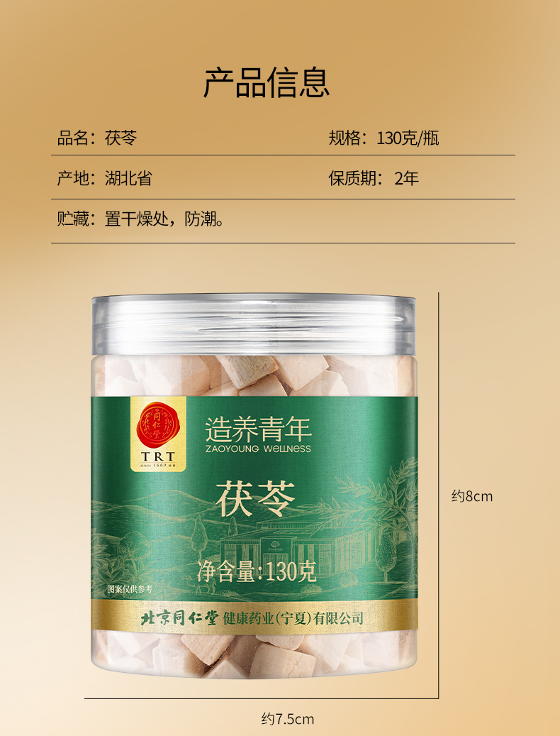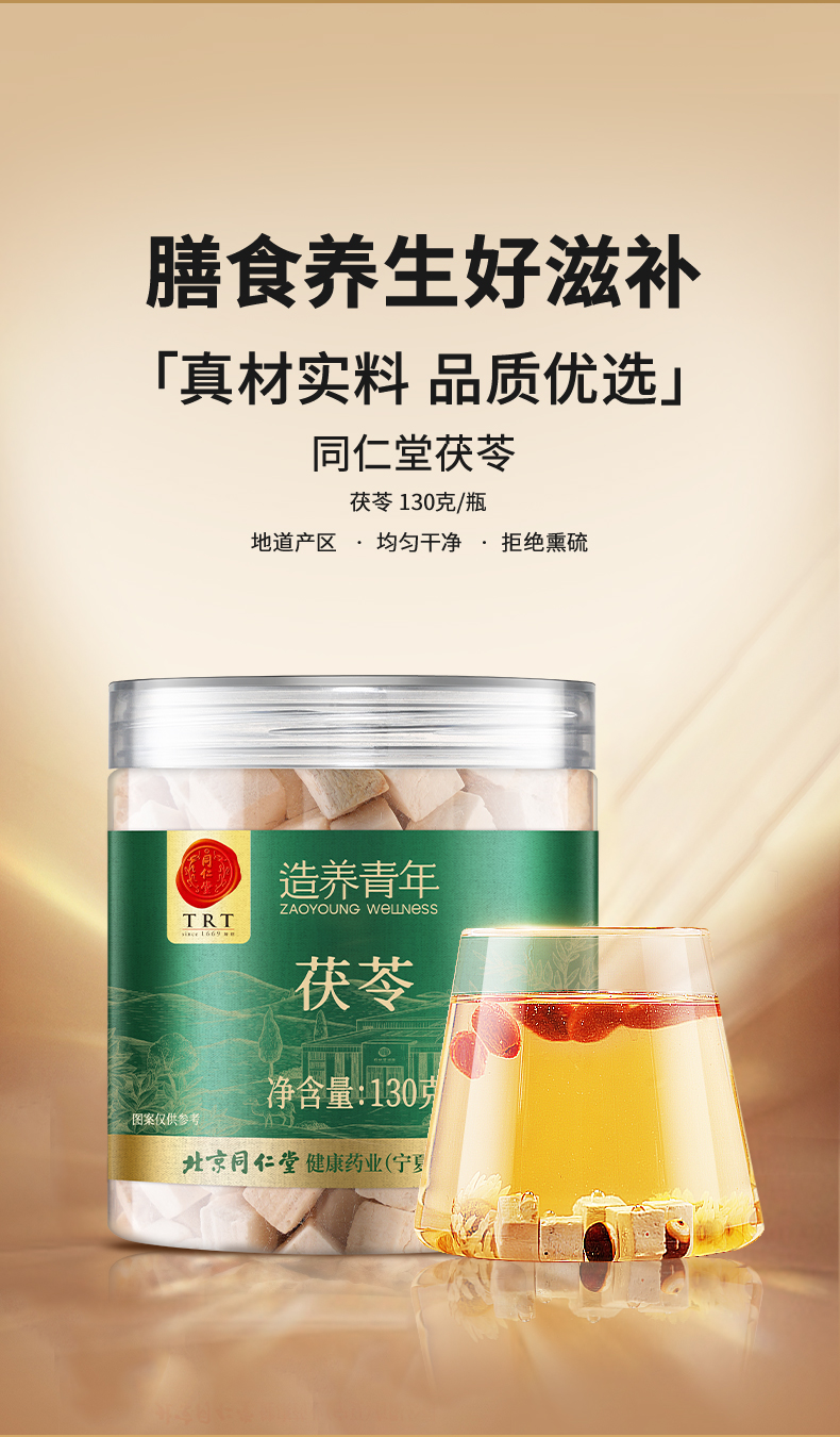 【99元任选3件】【正宗同仁堂品牌】北京同仁堂 茯苓 130克 低温晾晒 拒绝熏硫 块块饱满SY